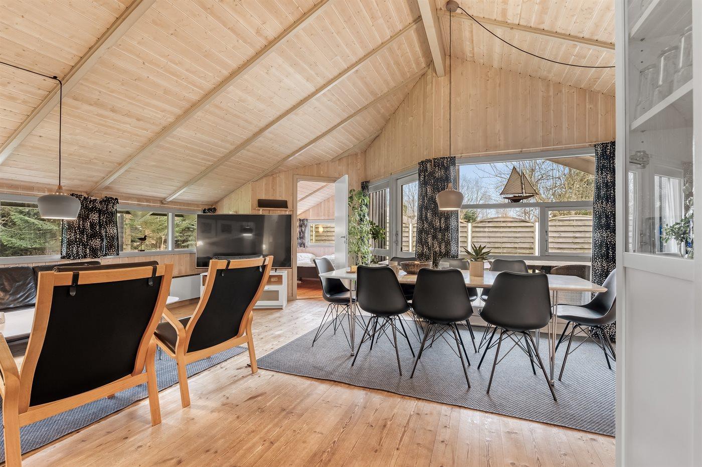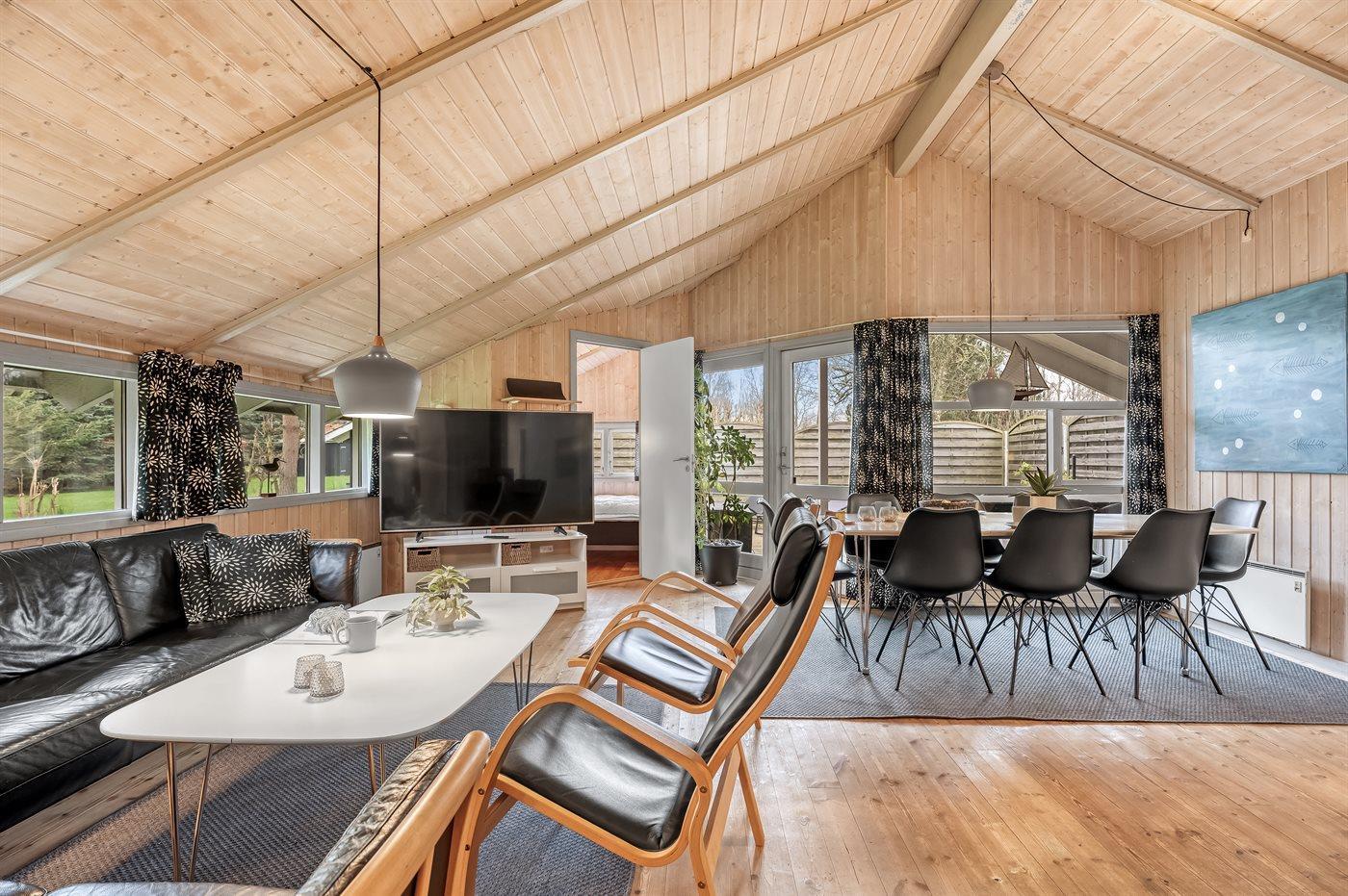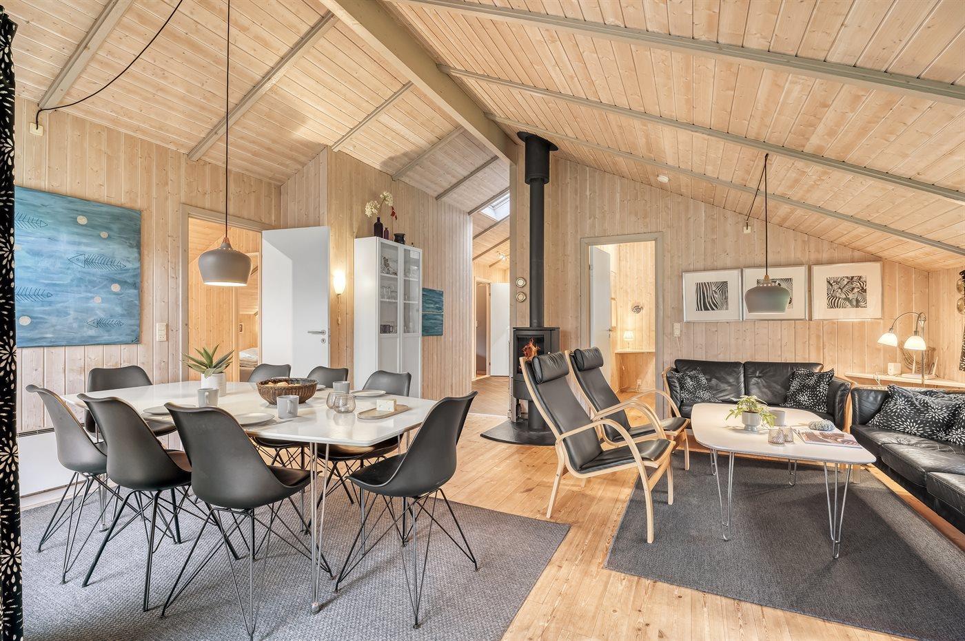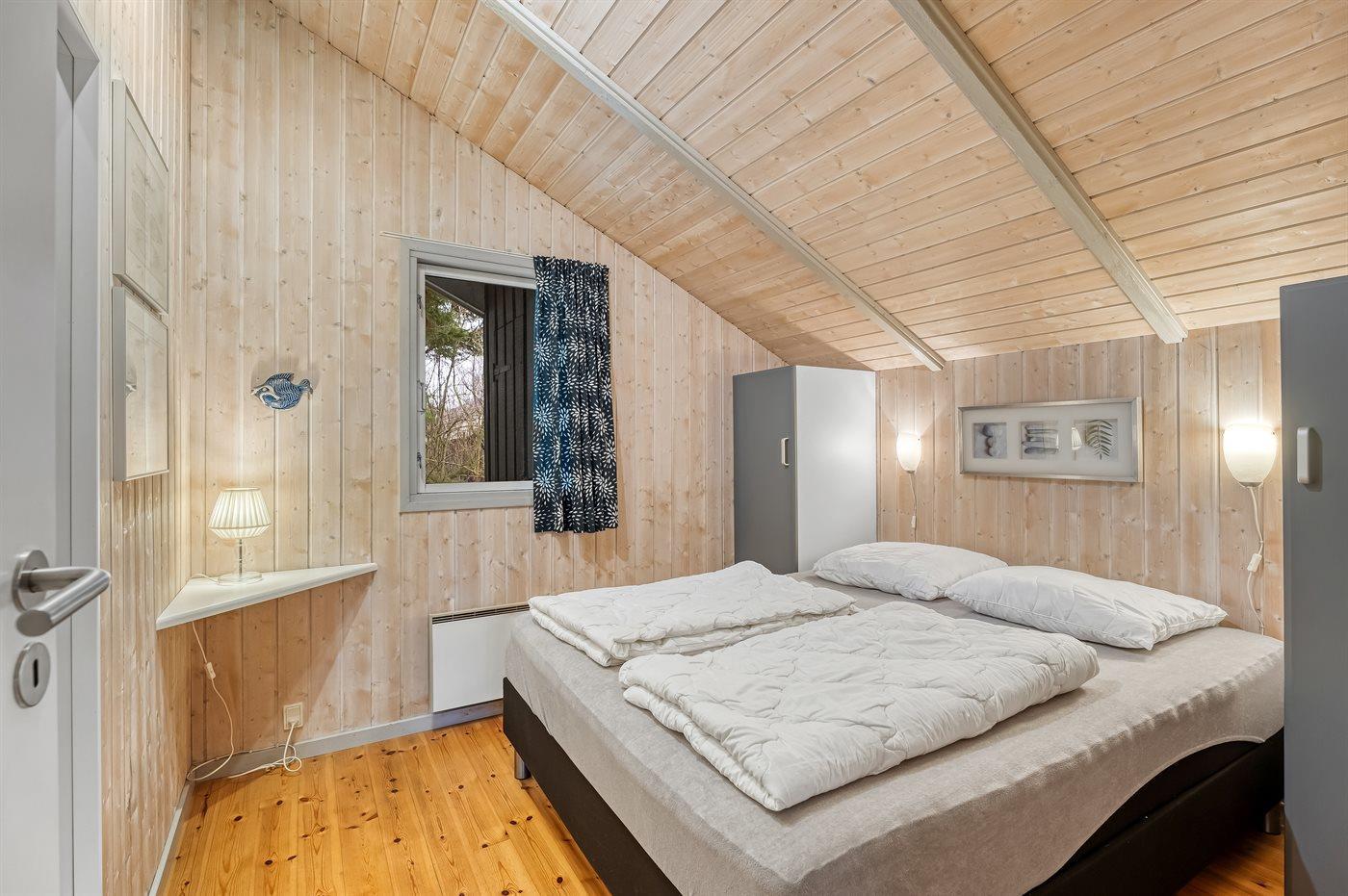 Huset ligger på en tilplantet naturgrund med ugenert solgård samt dejlig terrasse med havemøbler. Det store indbydende badeværelse med opvarmet marmorgulv er indrettet med 2-pers. spa, bruseniche, vaskemaskine og direkte adgang til husets sauna. Desuden gæstetoilet. Dejligt køkken med køle/ frys opvaskemaskine og mikrobølgeovn. Flot møbleret opholdsstue, brændeovn, 65 tommer smart TV, Sony Playstation, Bluetooth højtaler, trådløs fiber internetforbindelse (egen computer skal medbringes). 4 soverum; 2 med dobbelt kontinentalsenge, 1 med 2 enkeltsenge og 1 med dobbeltseng (bredde 140 cm). Der er barneseng, høj barnestol, gynge og sandkasse. Huset er udstyret med solvarmeanlæg.