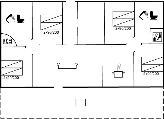 Der er i alt 4 soveværelser. Sovepladserne fordeler sig på: 8 sovepladser i enkeltsenge. Derudover er der 1 stk. barneseng.