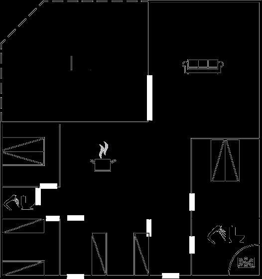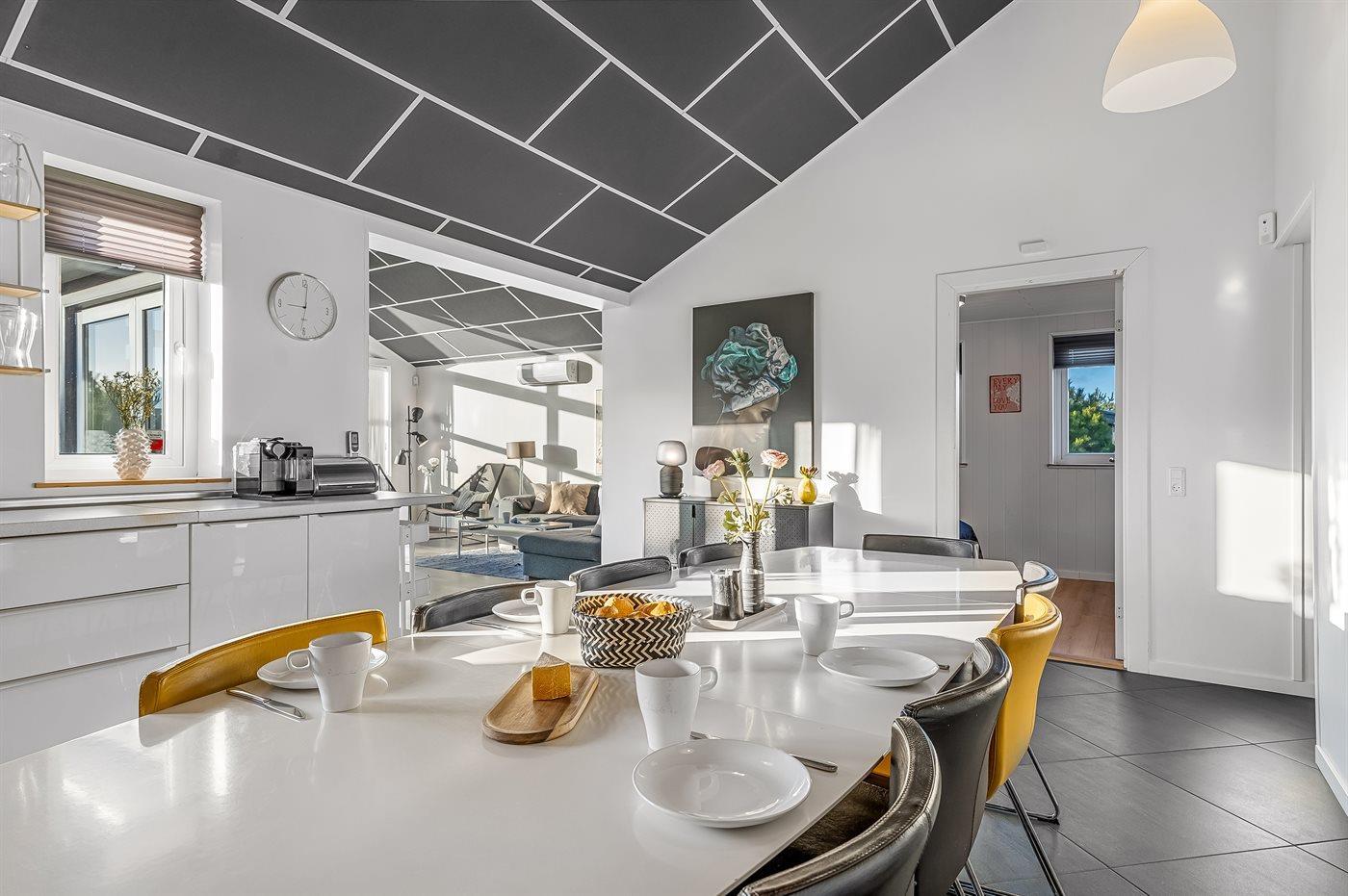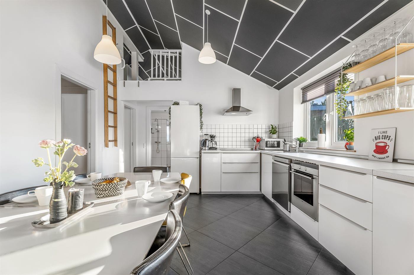 Køkkenet er udstyret med 1 køleskab. Der er 4 induktionskogeplader, varmluftovn, mikrobølgeovn samt opvaskemaskine.