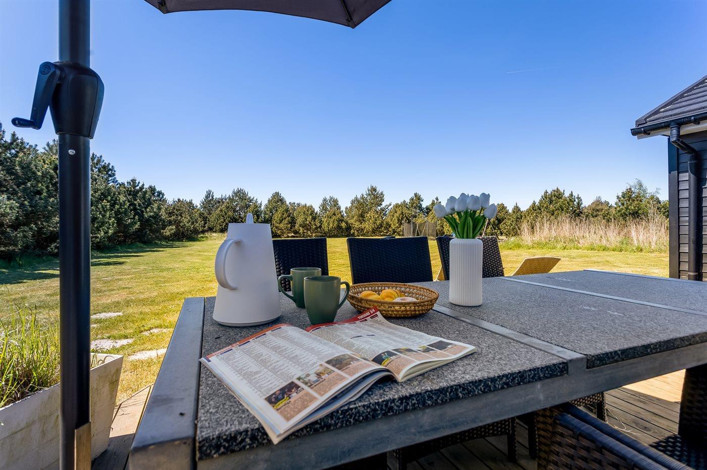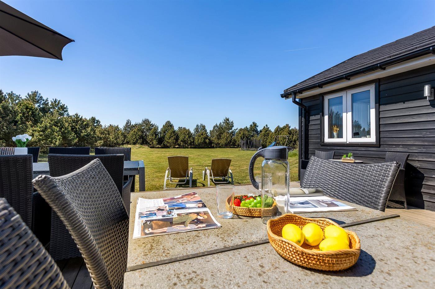 Ferieboligen er beliggende på en 1637 m² stor havegrund. Der er 1450 m til havet. Nærmeste forretning er beliggende i en afstand af 1200 m. Der er en golfbane i en afstand af 500 m. Til ferieboligen hører åbent terrasseareal. Gynge. Sandkasse. Legehus. Trampolin. Rutchebane. Grill til rådighed. Parkering ved ferieboligen.