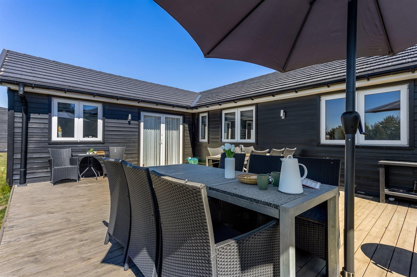 Et lyst og hyggeligt indrettet sommerhus med bl.a. spa. Der er udgang til en terrasse, hvor du kan nyde timer i det fri – her kan du nyde solen og tilberede et måltid på grillen. På den store grund, hvor der er god plads til boldspil og leg, findes der forskellige legeredskaber til børnene.