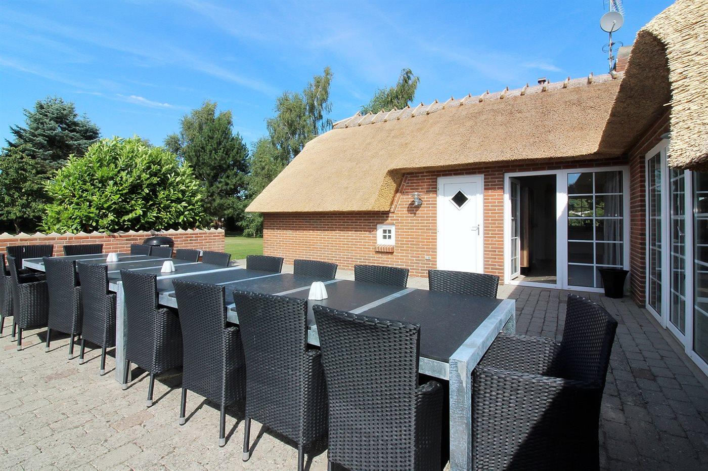 Sommerhuset egner sig til 13 personer samt 1 barn op til 3 år. 3 af sovepladserne er kun egnet til større børn (4-11 år). Ferieboligen er på 200 m² og er bygget i 1993. I 2016 gennemgik ferieboligen en renovering. Ferieboligen er udstyret med energibesparende varmepumpe. Ferieboligen har vaskemaskine. Tørretumbler. Frysekapacitet på 30 liter. Der er desuden brændeovn. Til de små er der 1 stk. barnestol.