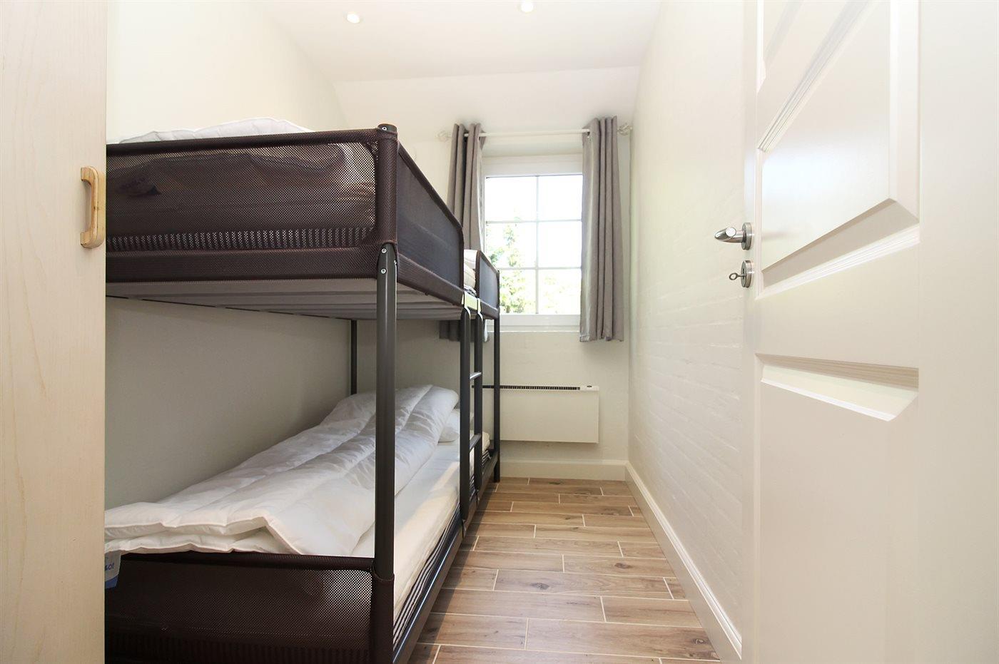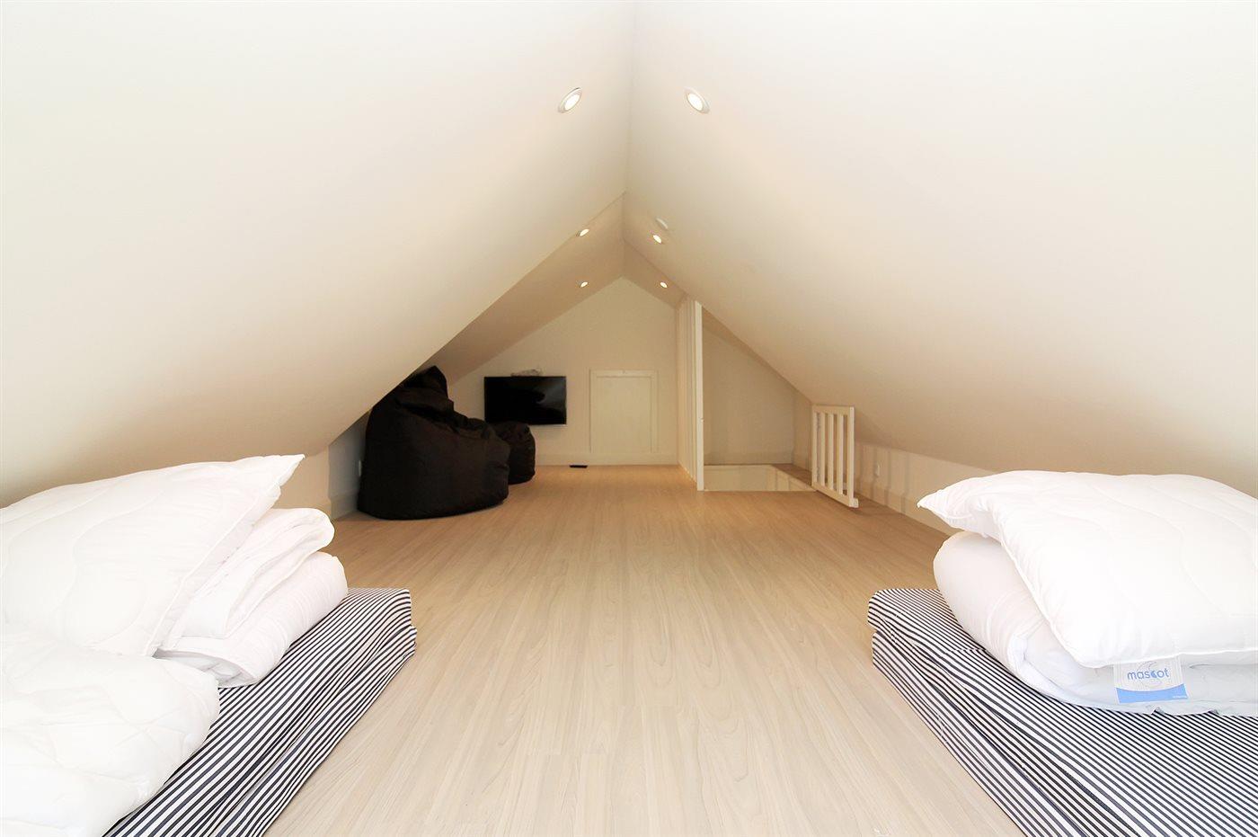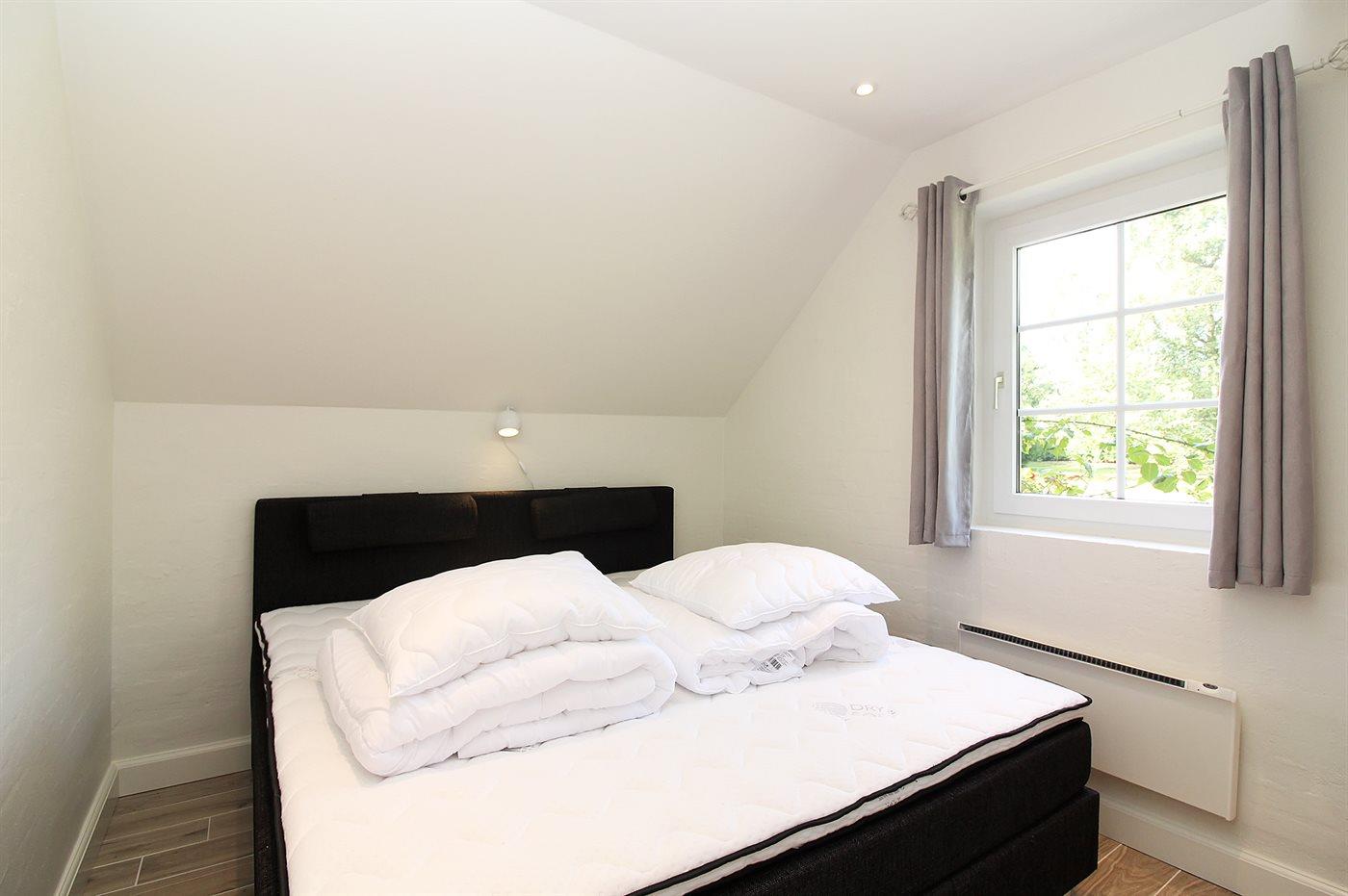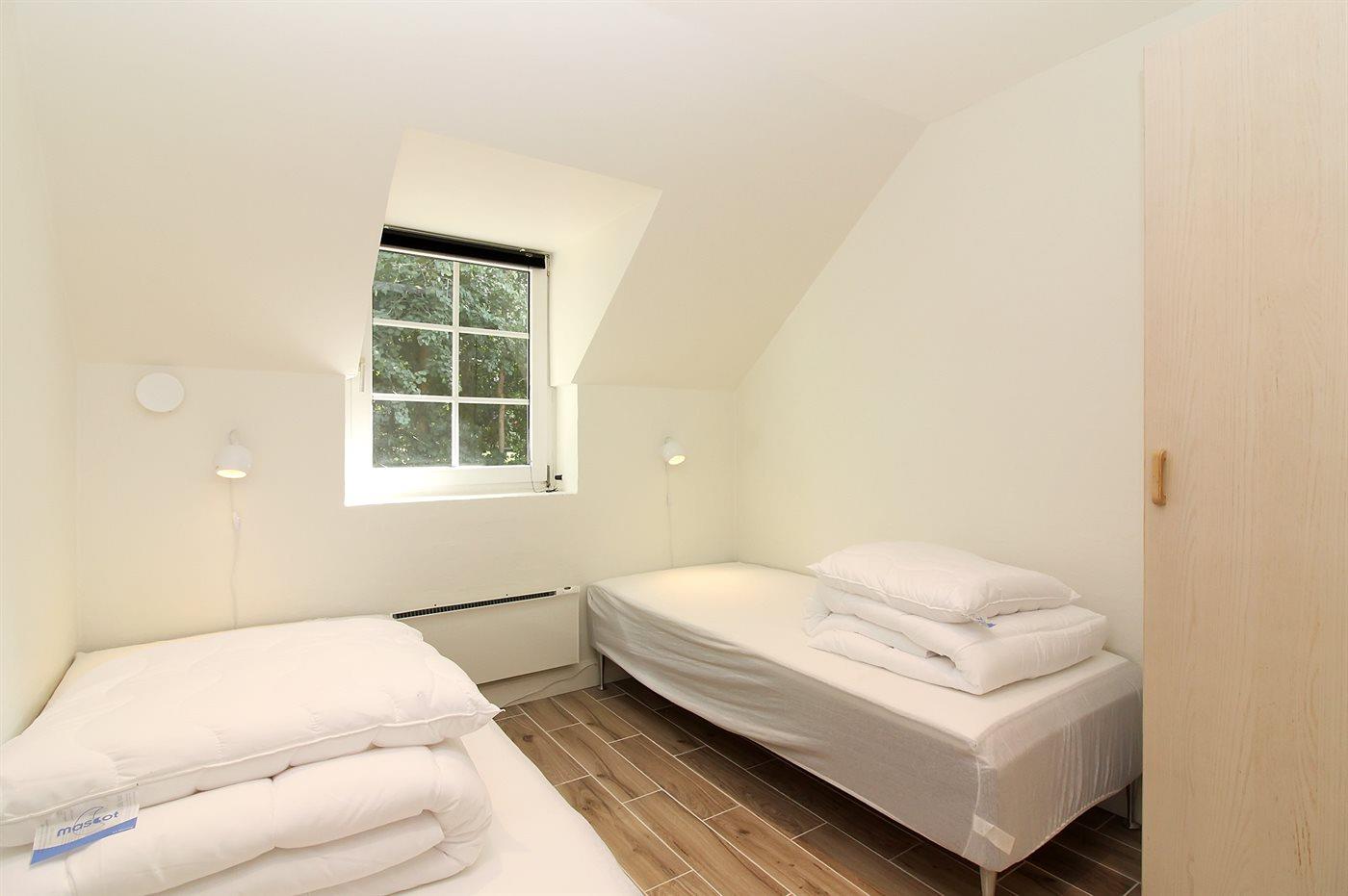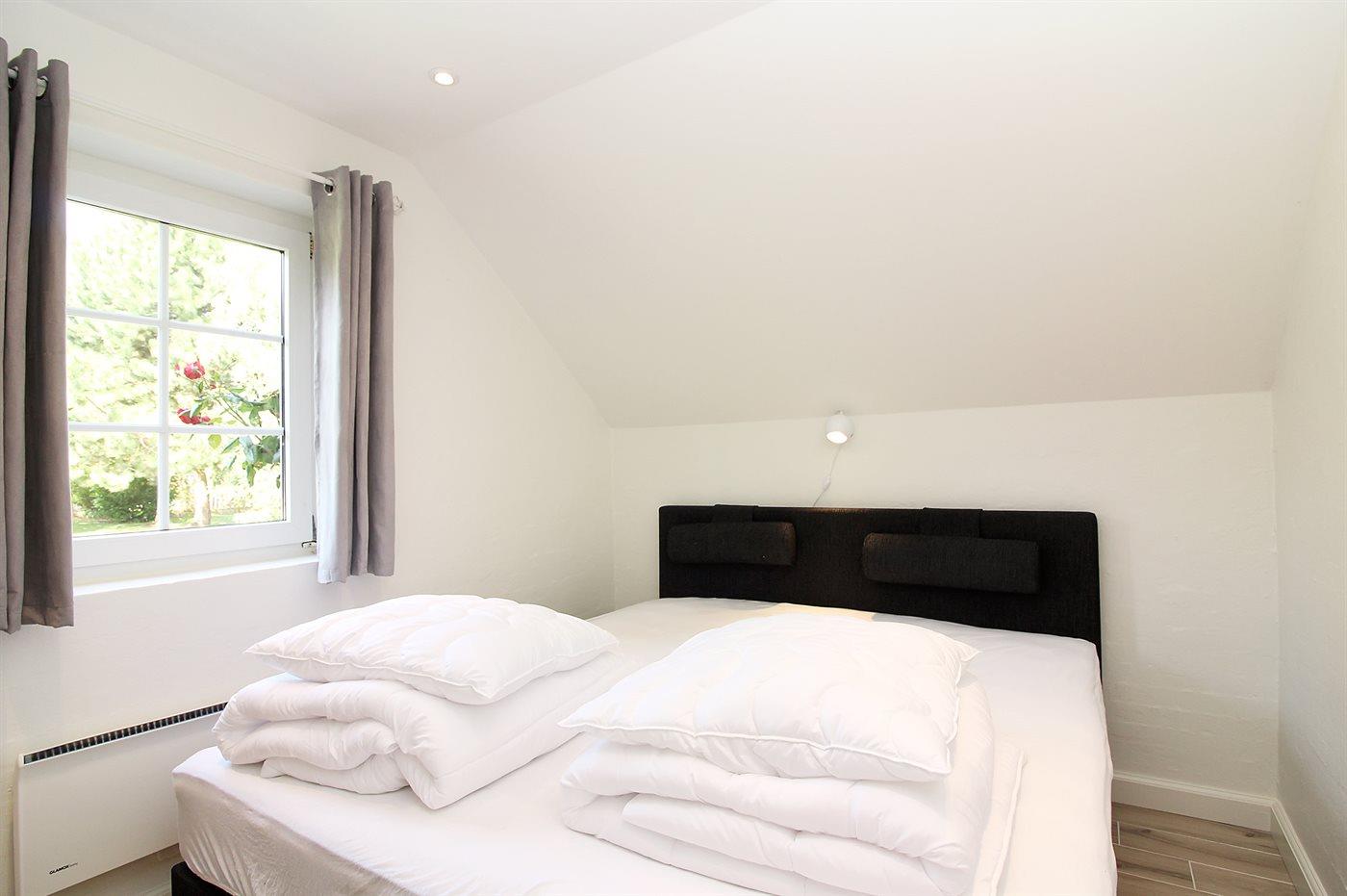 Der er i alt 5 soveværelser. Sovepladserne fordeler sig på: 6 sovepladser i dobbeltsenge. 2 sovepladser i enkeltsenge. 2 sovepladser i køjeseng. 3 sovepladser på madrasser. 3 af disse sovepladser befinder sig på husets hems. Derudover er der 1 stk. barneseng.