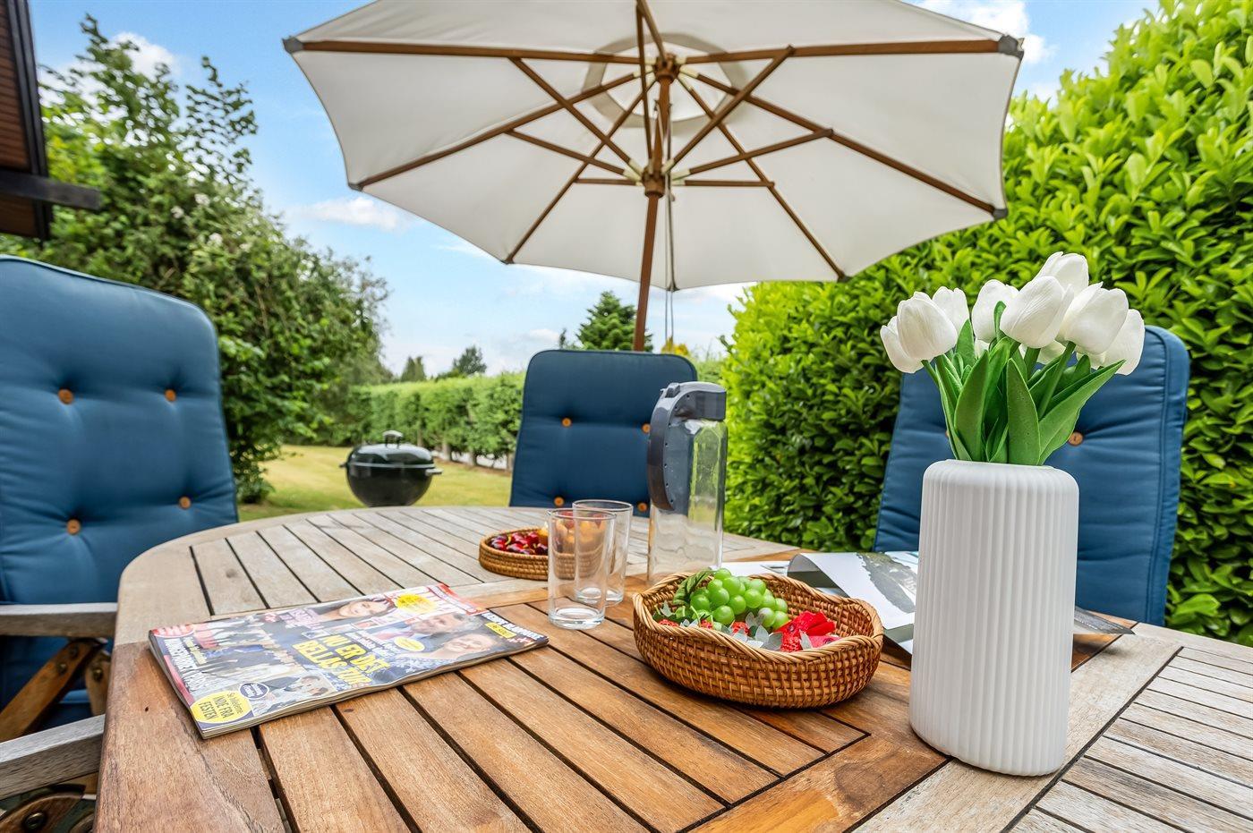 Nyd timer i det fri på husets terrasse, hvor du kan slappe af med en god bog eller nyde et måltid under åben himmel.