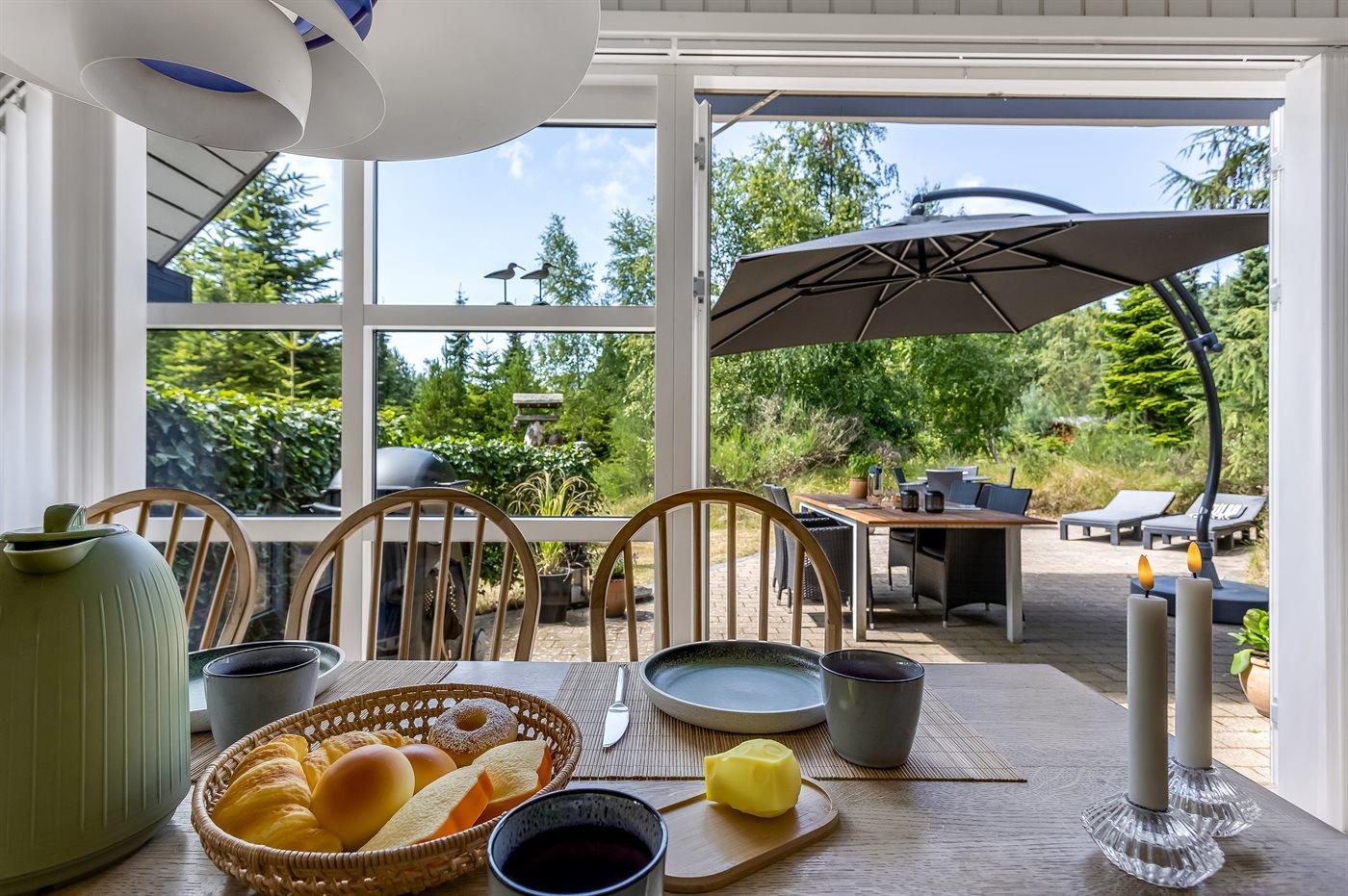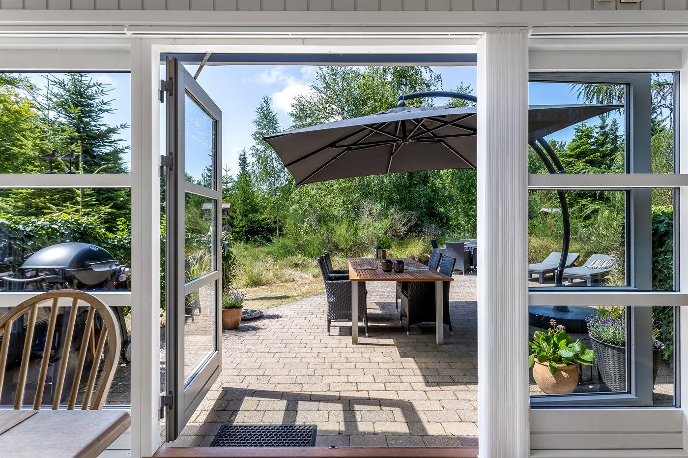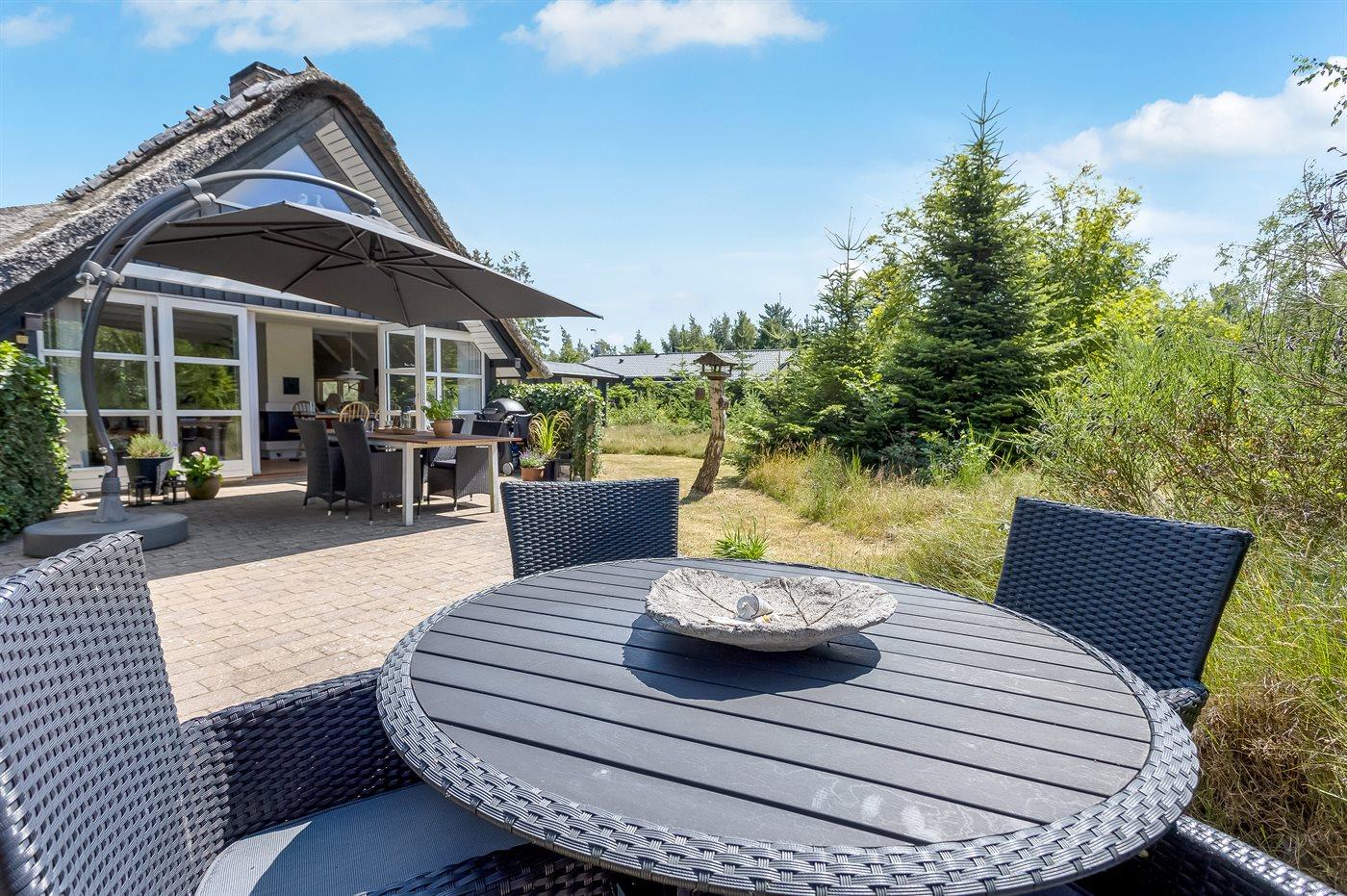 Fra stuen kan I gå ud på den store terrasse med solvogne, havemøbler og gasgrill. Der er flere forskellige steder på grunden med bord og stole, hvor I kan nyde morgenkaffen, men også mulighed for at trække i skyggen.