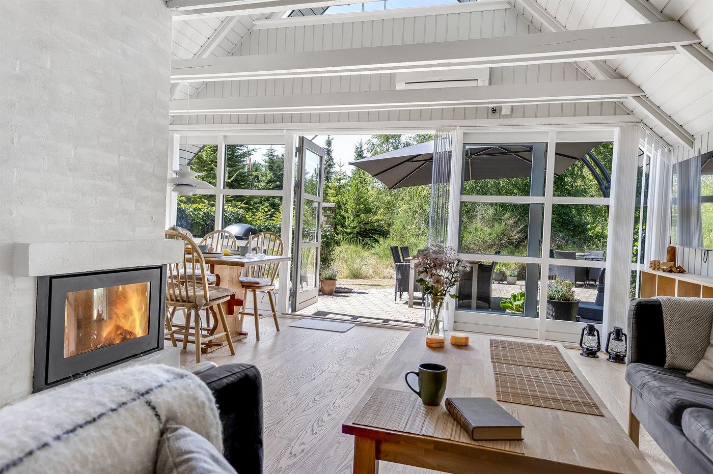 Stuen er indrettet med en stor brændeovn. Huset er også udstyret med gratis, trådløst internet, Smart-TV, hvor I selv skal medbringe telefon, Ipad eller computer til at streame kanaler.