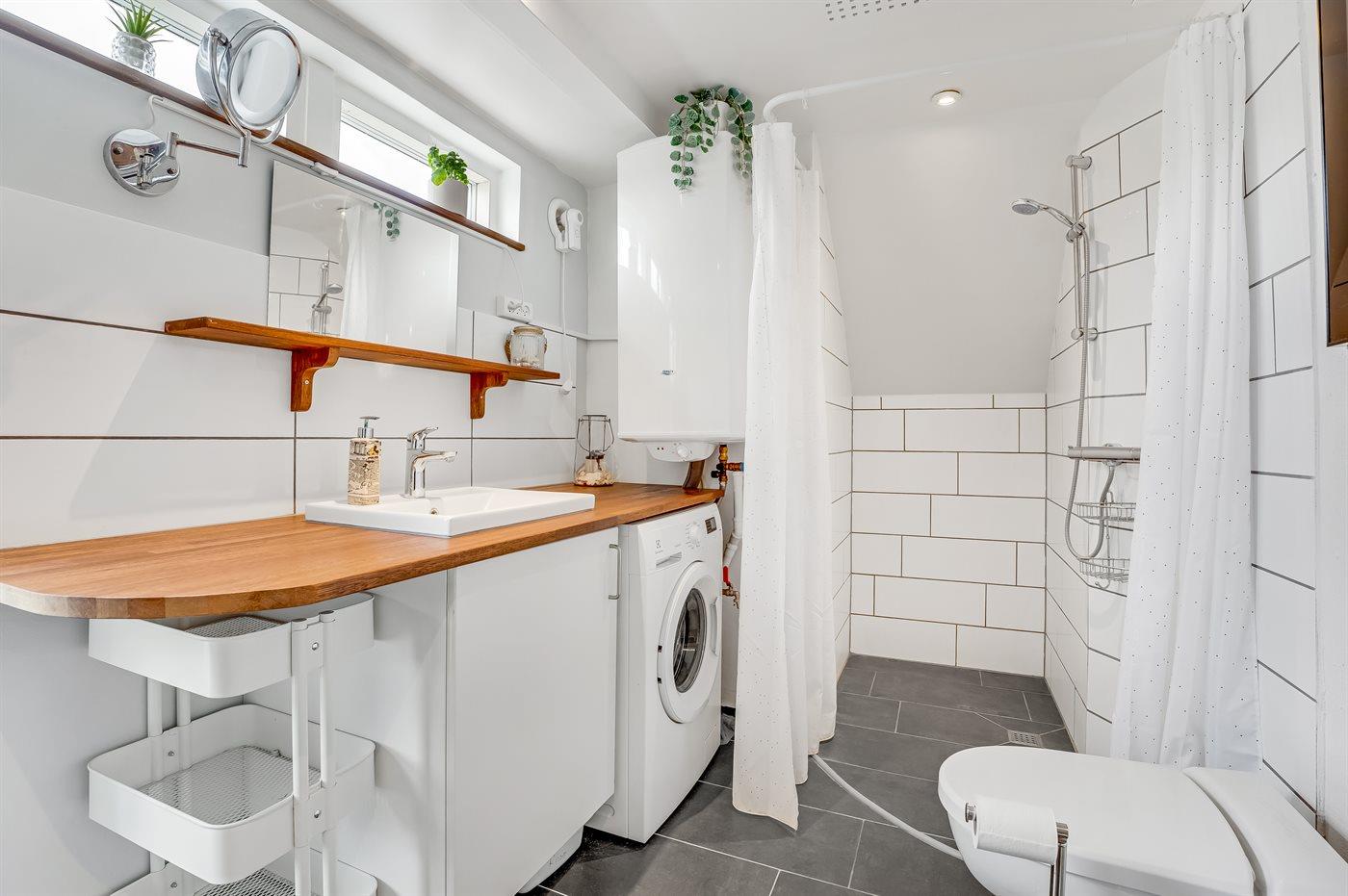 Der er 1 badeværelse med bruseniche og 1 toilet.. Der er gulvvarme på 1 badeværelse.