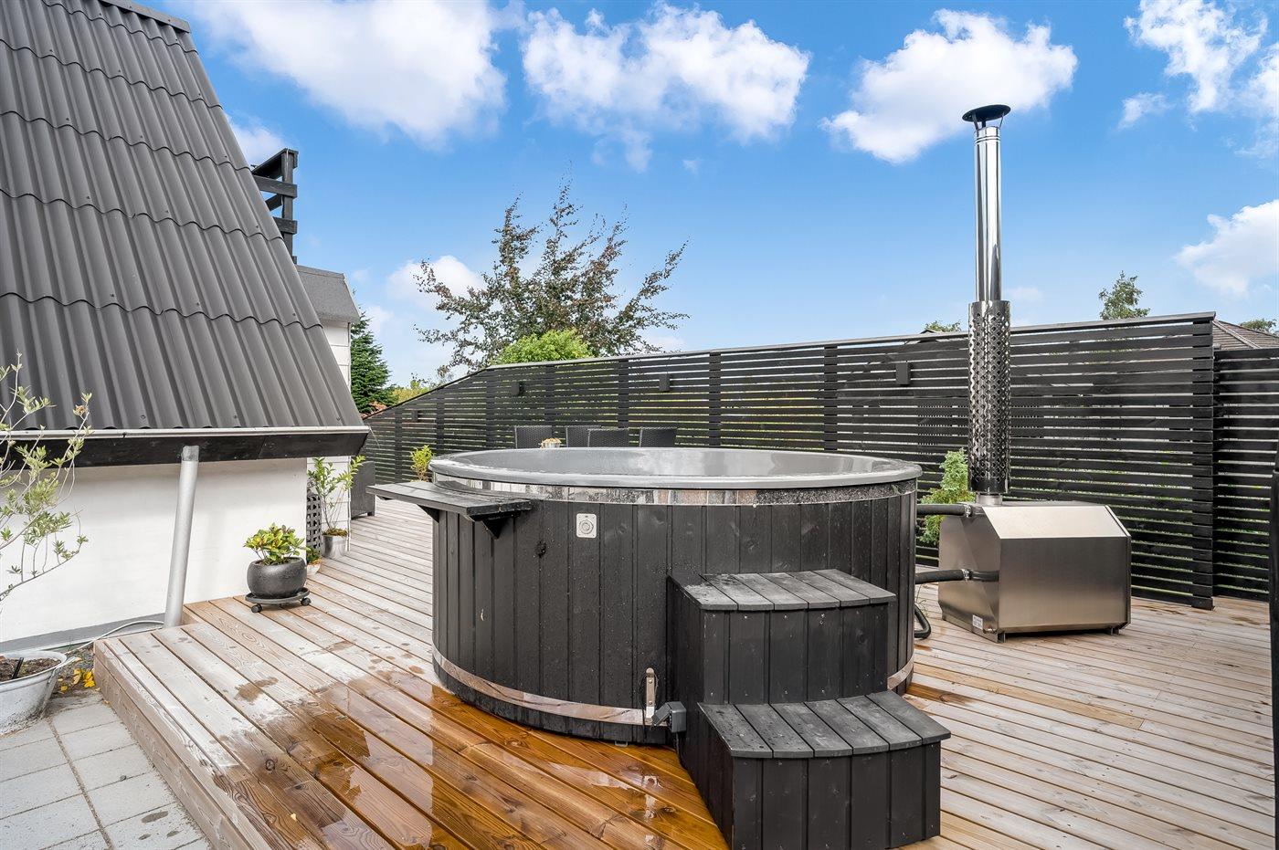 Der er mulighed for afslapning i det udendørs vildmarkskar til 6 personer.