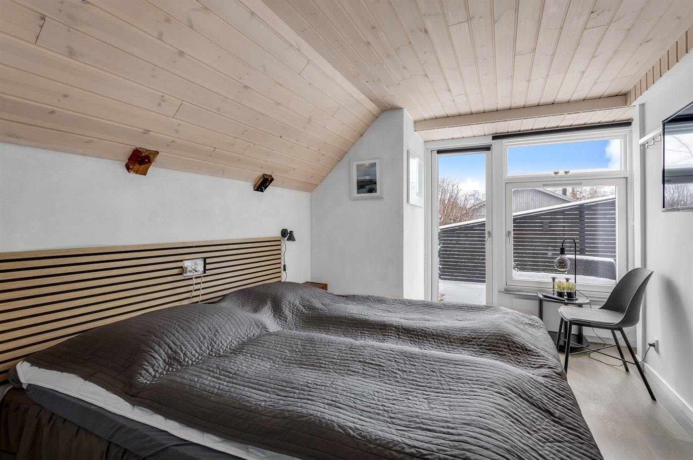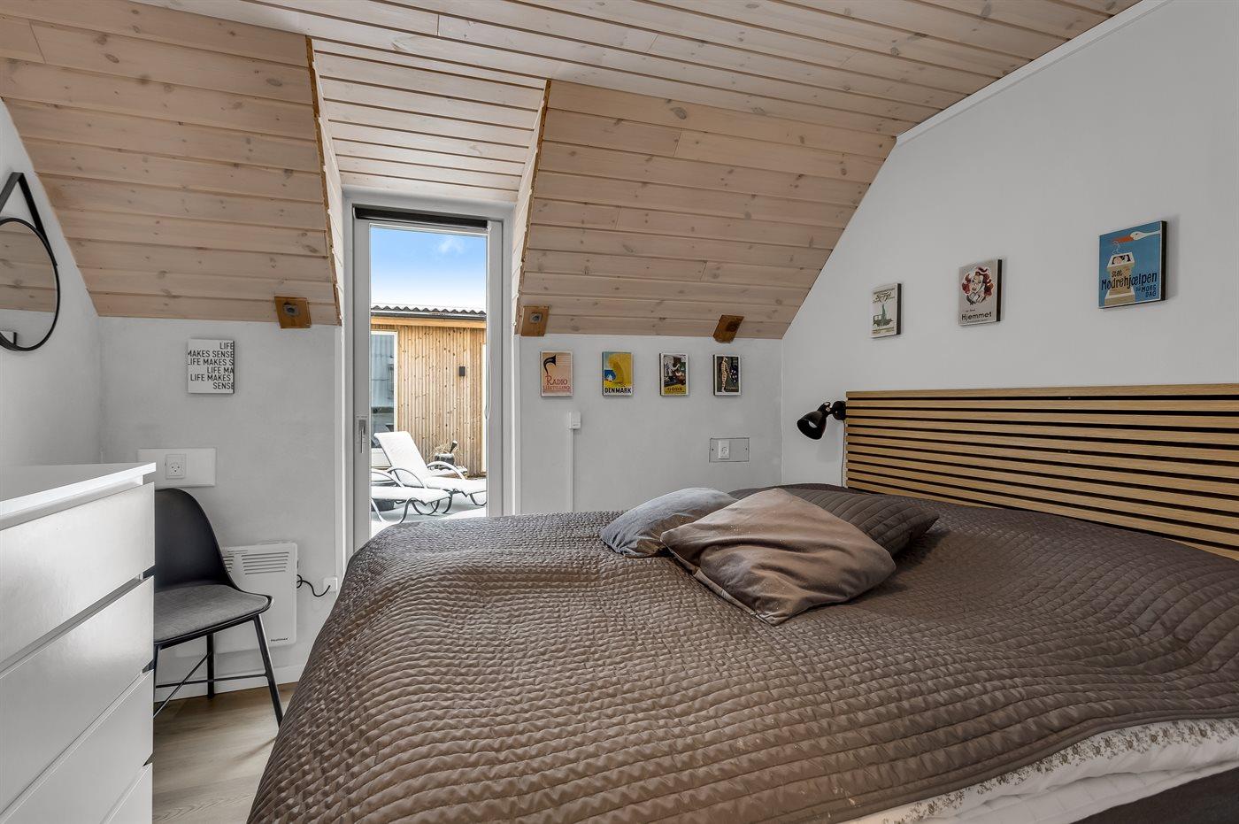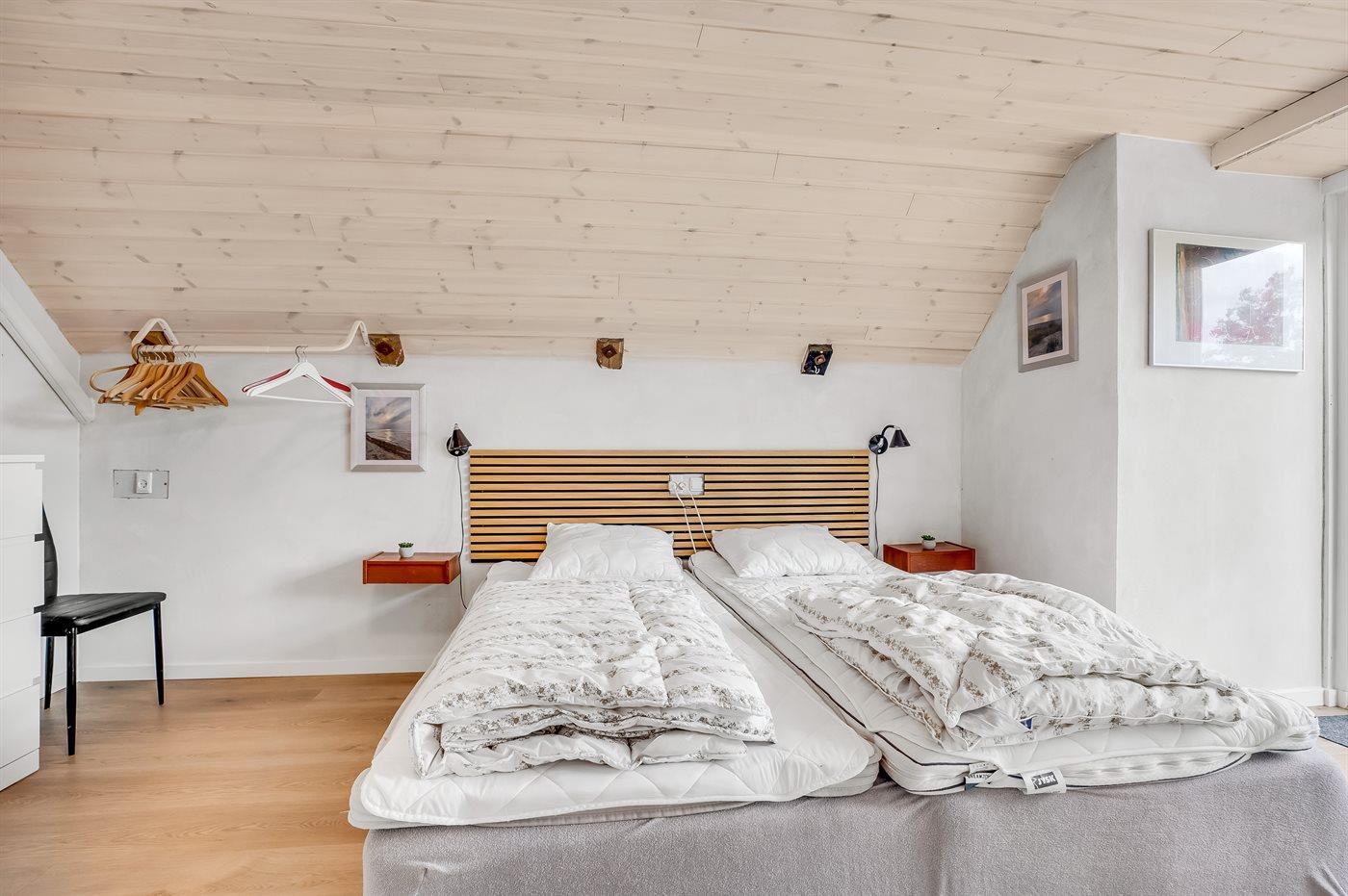 Der er i alt 3 soveværelser. Sovepladserne fordeler sig på: 6 sovepladser i dobbeltsenge. 2 af disse sovepladser befinder sig på husets hems.