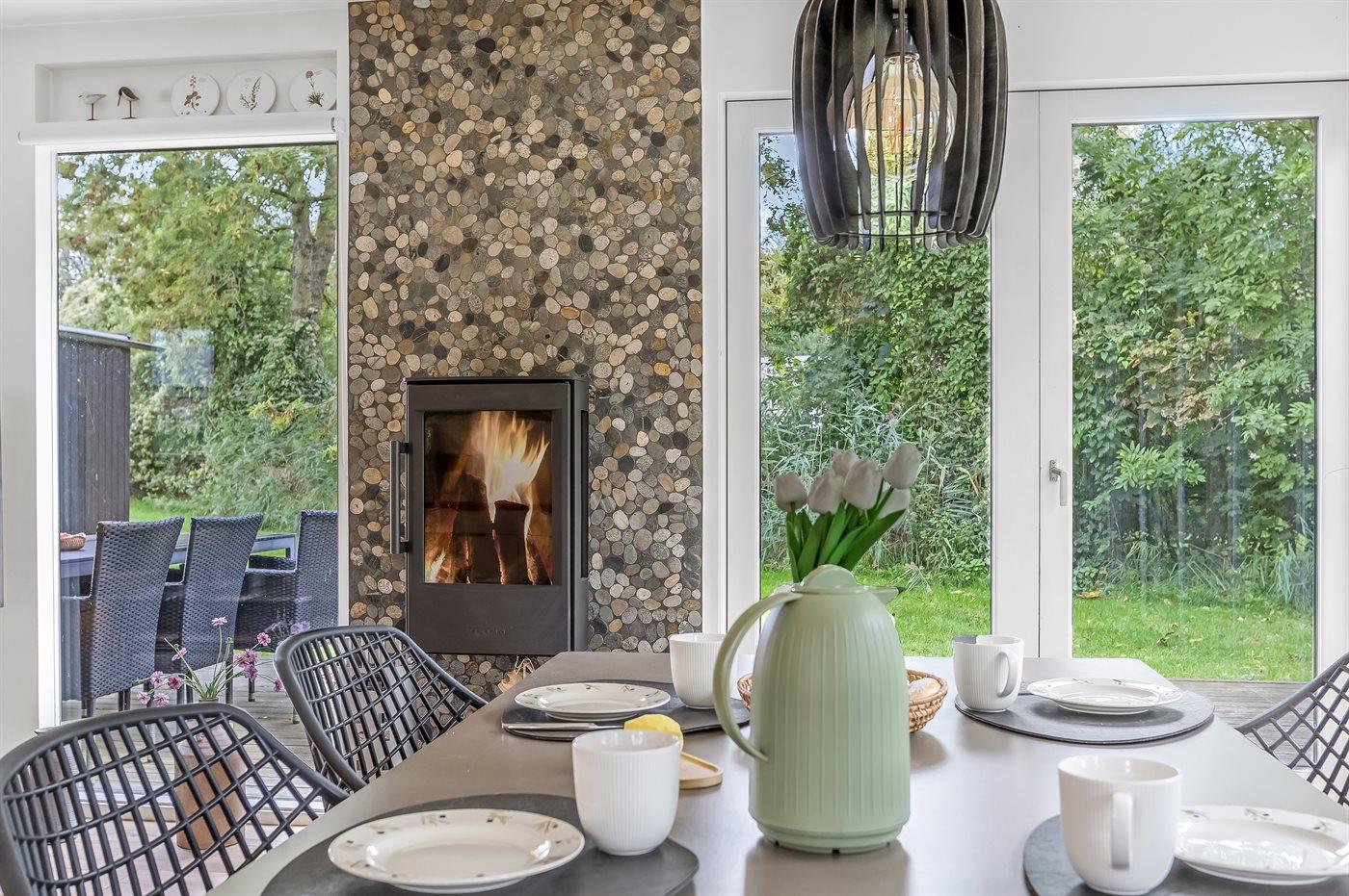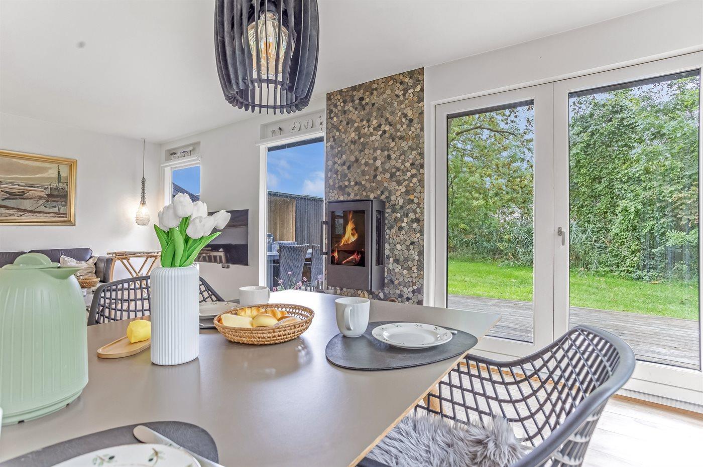 Der er træterrasse hele vejen rundt om huset. Specielt skal fremhæves de to store terrasser på begge sider, hvor I kan sidde og nyde de dejlige sommeraftener og grille. Det er også oplagt at tage en smuttur til vandet samt at gå ture langs diget.