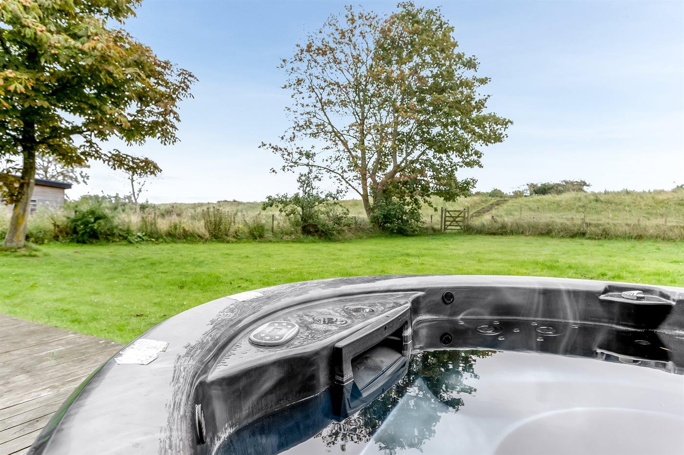 Ved dette feriehus kan I nyde den udendørs standvandsspa til 6 personer med udsigt til diget, og her er desuden udendørs bruser, som kan benyttes i sommerperioden. Saunaen finder I udenfor i et lille hus ved siden af spabadet, hvor der også er vaskemaskine og tørretumbler.