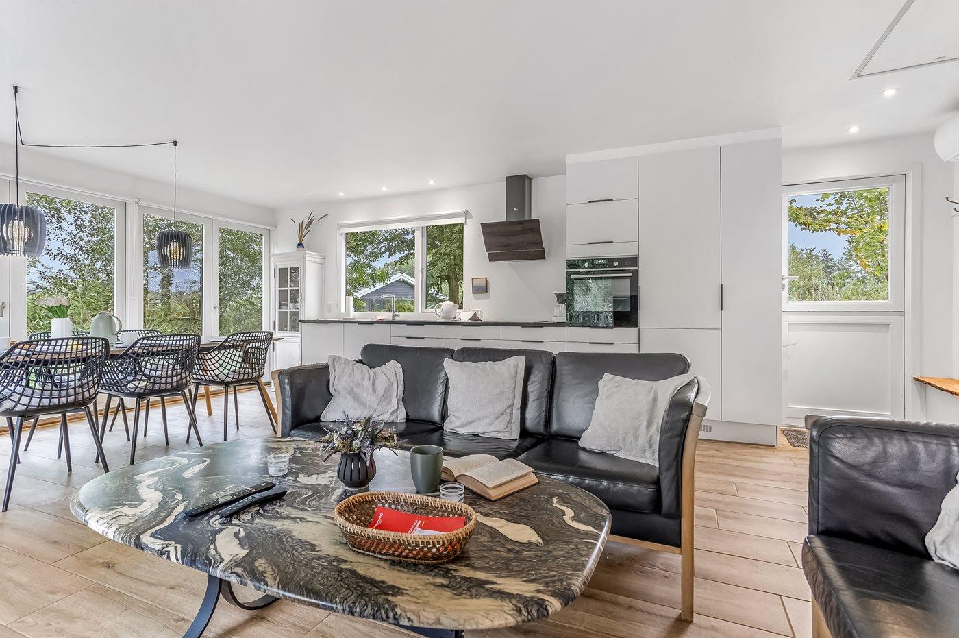 Sommerhuset er totalrenoveret i 2020. Der er et veludstyret køkkenet, og herfra er der åbent til stuen. De tre soveværelser fordeler sig på et værelse med dobbeltsenge og to værelser med sovesofaer, som kan foldes ud til to personer.