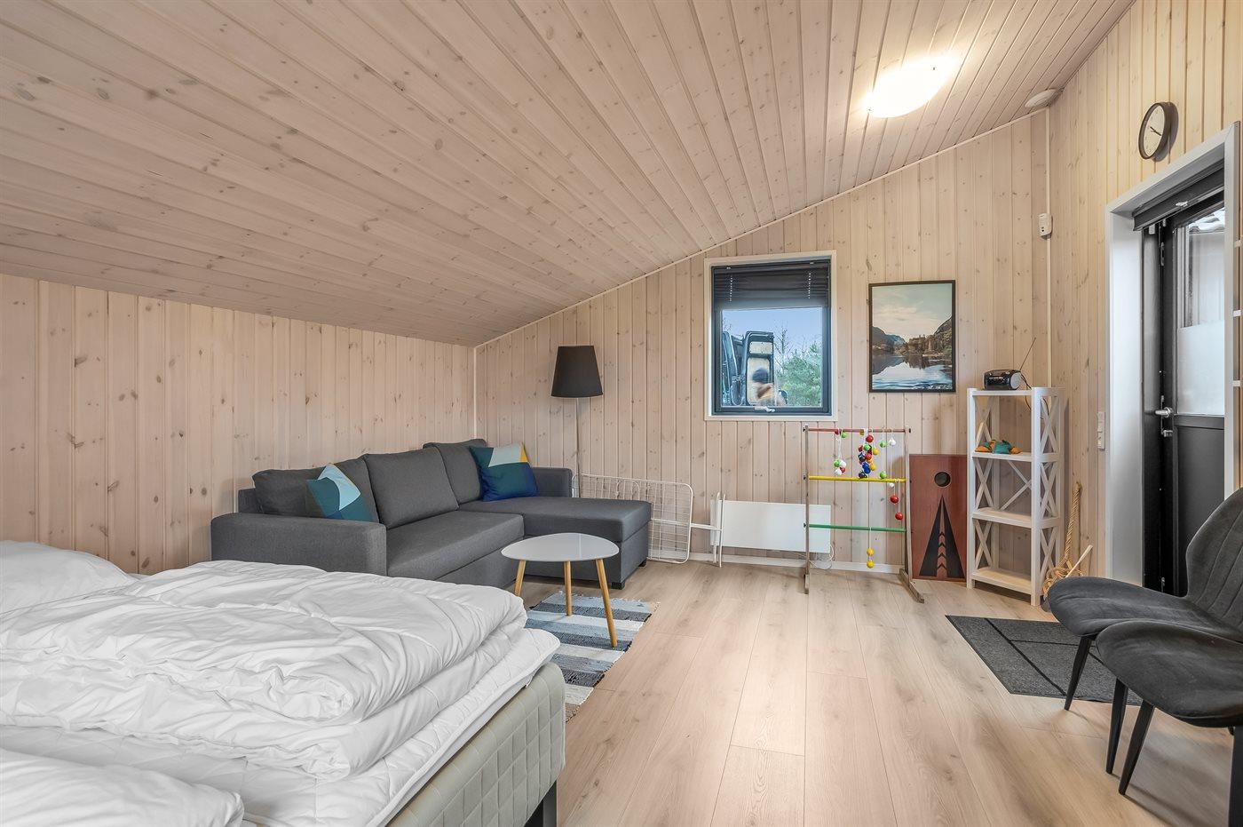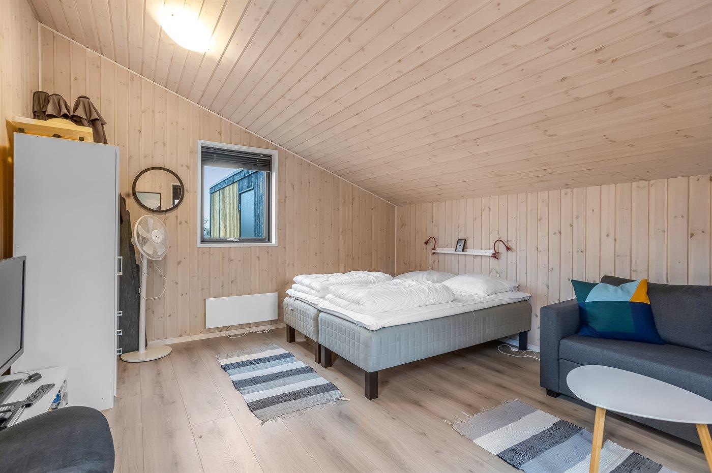 Der er i alt 5 soveværelser. Sovepladserne fordeler sig på: 8 sovepladser i dobbeltsenge. 2 sovepladser i enkeltsenge. 2 af disse sovepladser befinder sig i anneks.
