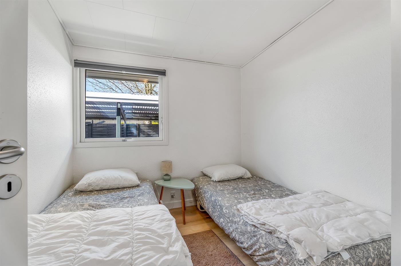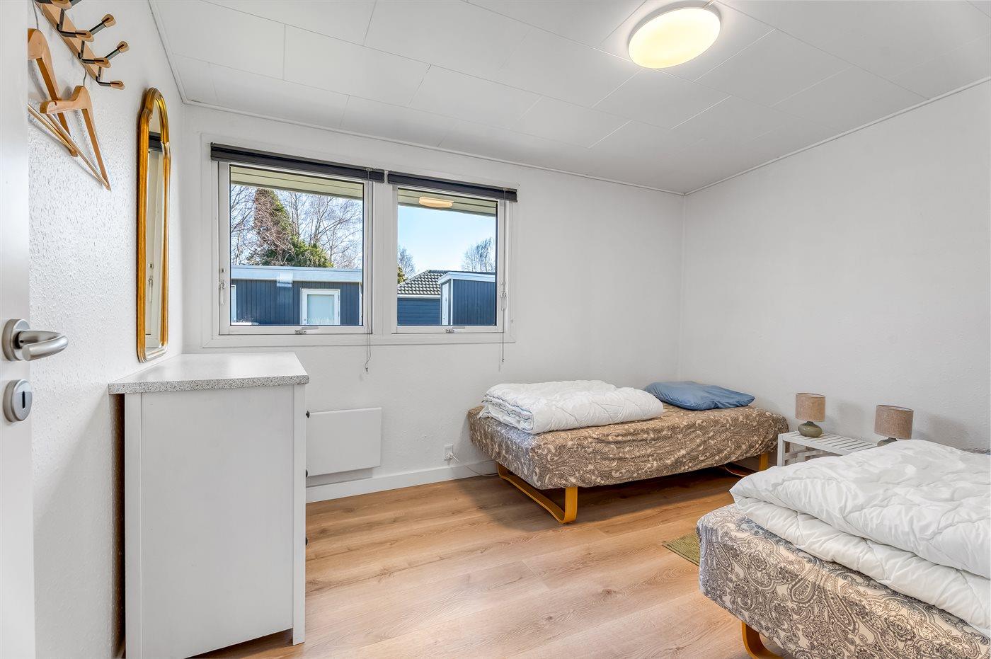 Der er i alt 3 soveværelser. Sovepladserne fordeler sig på: 2 sovepladser i dobbeltseng. 4 sovepladser i enkeltsenge. 2 sovepladser i sovesofa (dobbelt). 2 af disse sovepladser befinder sig i stuen.