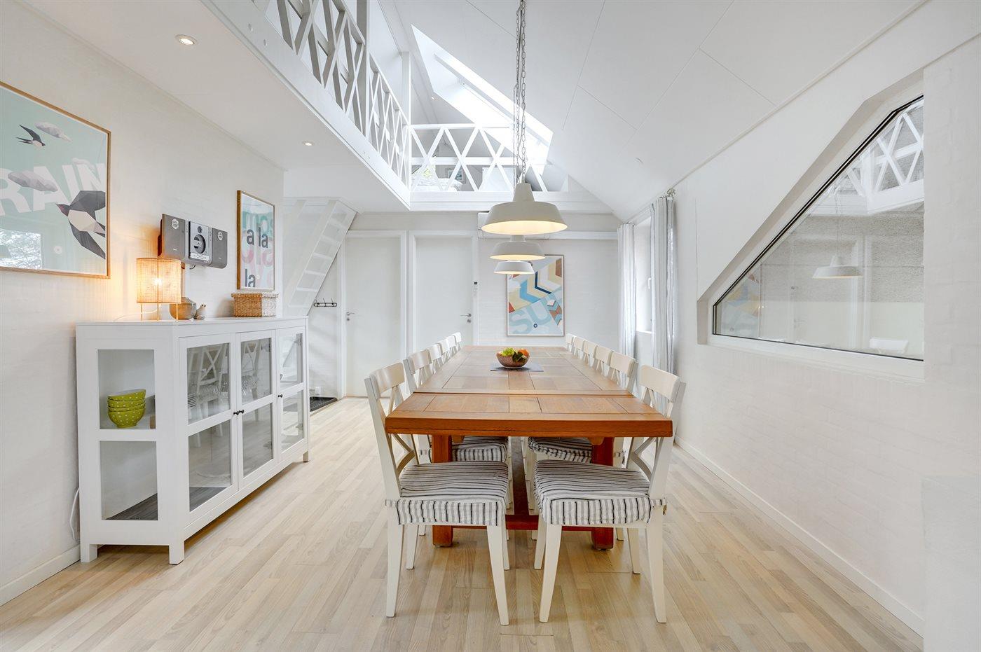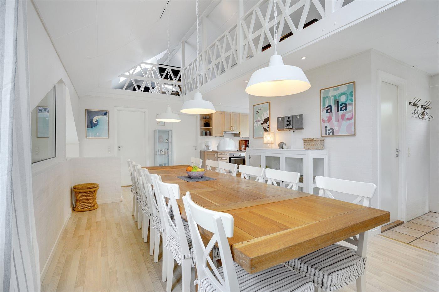 Køkkenet er udstyret med 1 køleskab. Der er 4 keramiske kogeplader, varmluftovn, mikrobølgeovn samt opvaskemaskine.