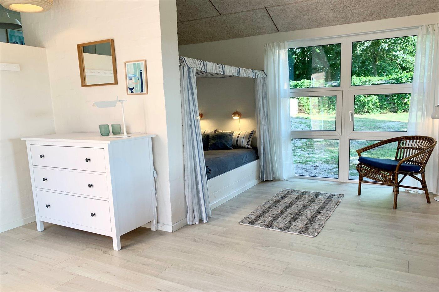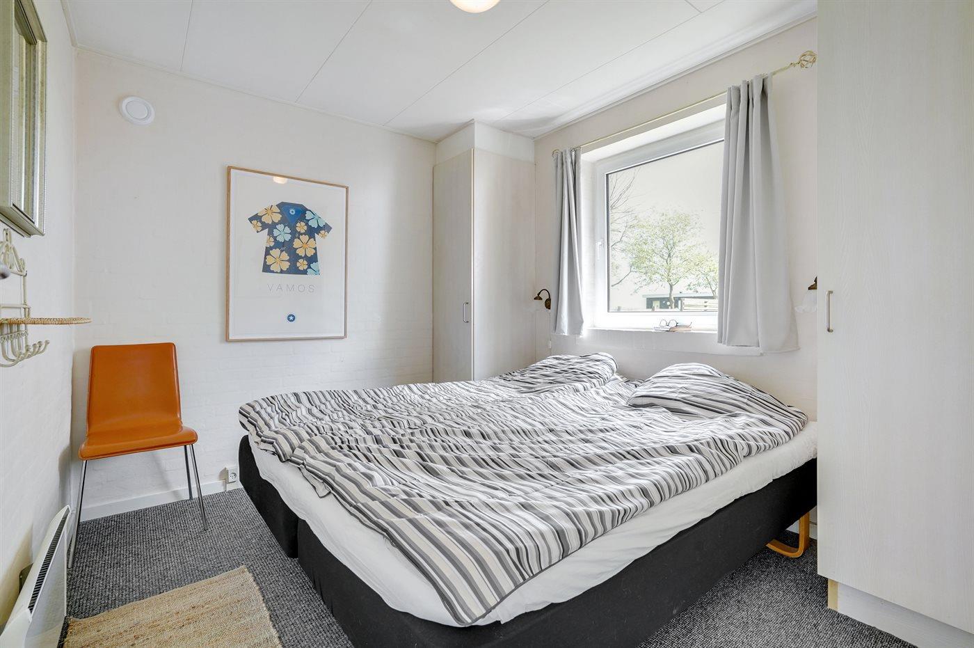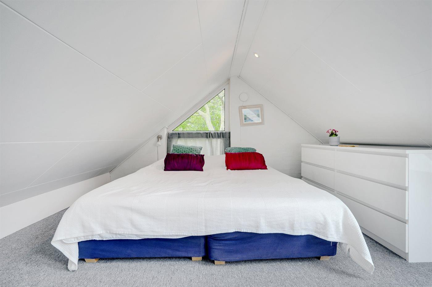 Der er i alt 3 soveværelser. Sovepladserne fordeler sig på: 8 sovepladser i dobbeltsenge. 2 sovepladser i sovesofa (dobbelt). 2 sovepladser i alkove. 2 af disse sovepladser befinder sig i opholdsstuen og 2 af dem befinder sig på hemsen. Derudover er der 2 stk. barnesenge.