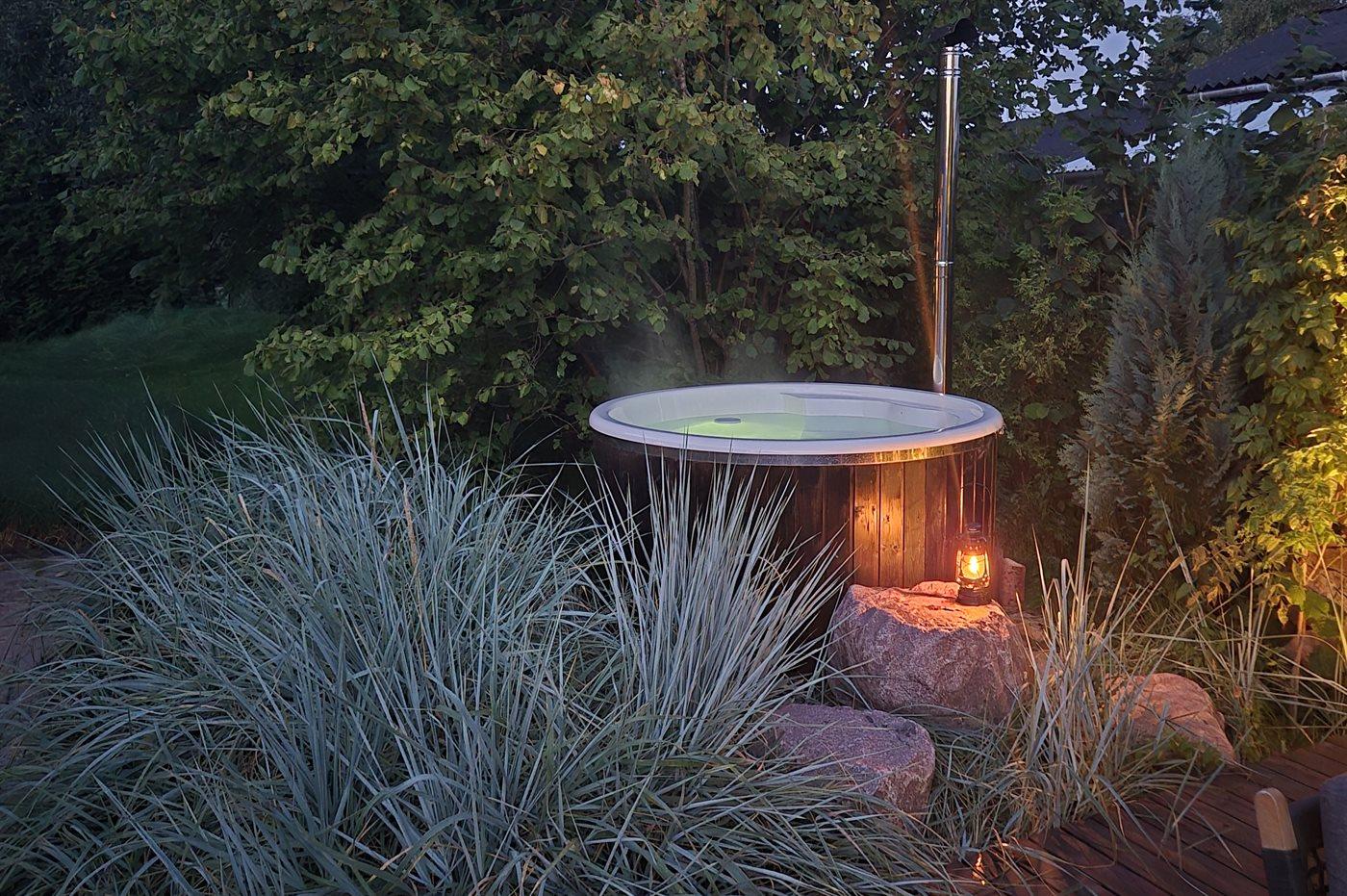 Der er mulighed for afslapning i det udendørs vildmarkskar til 4 personer.
