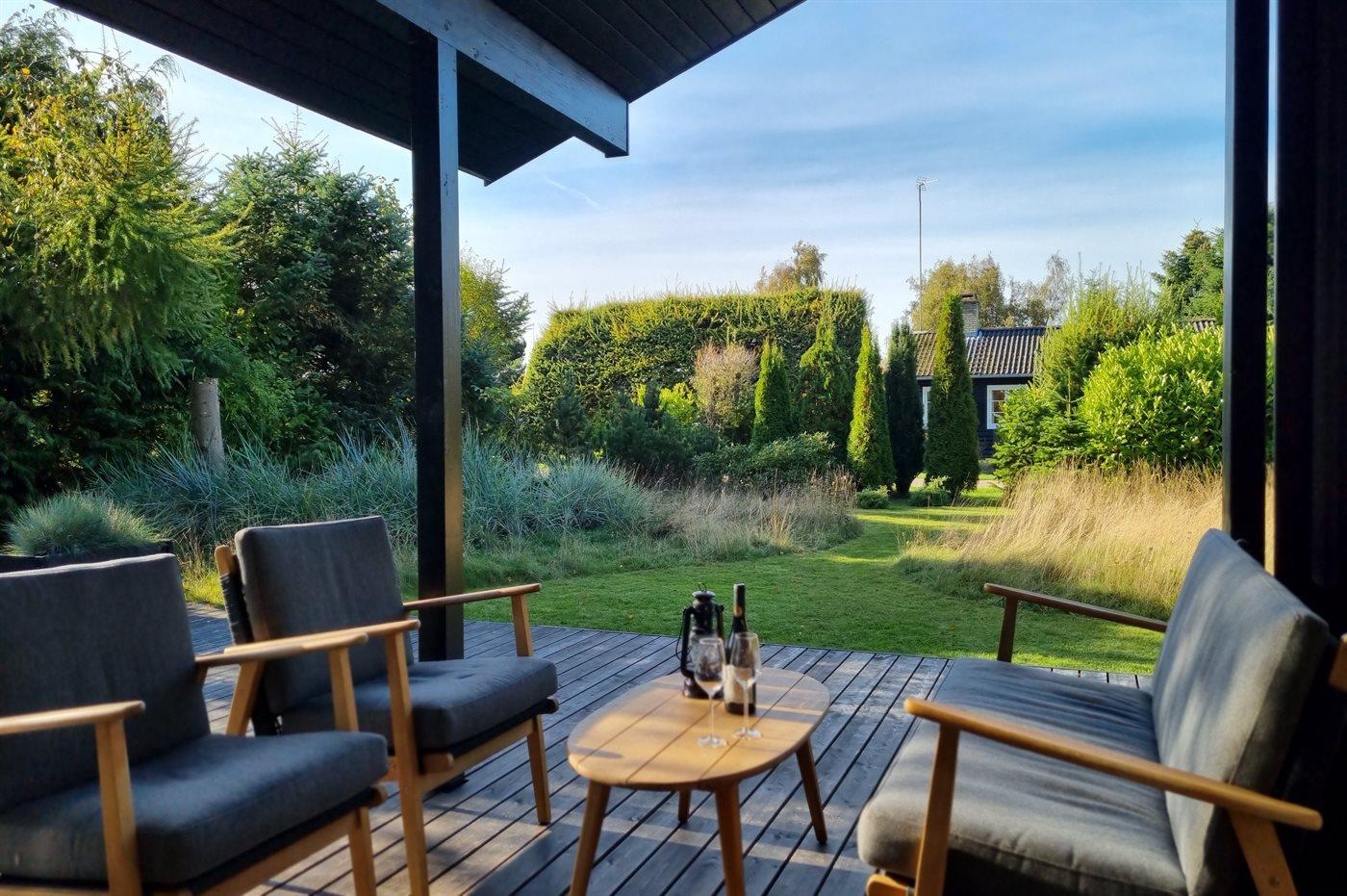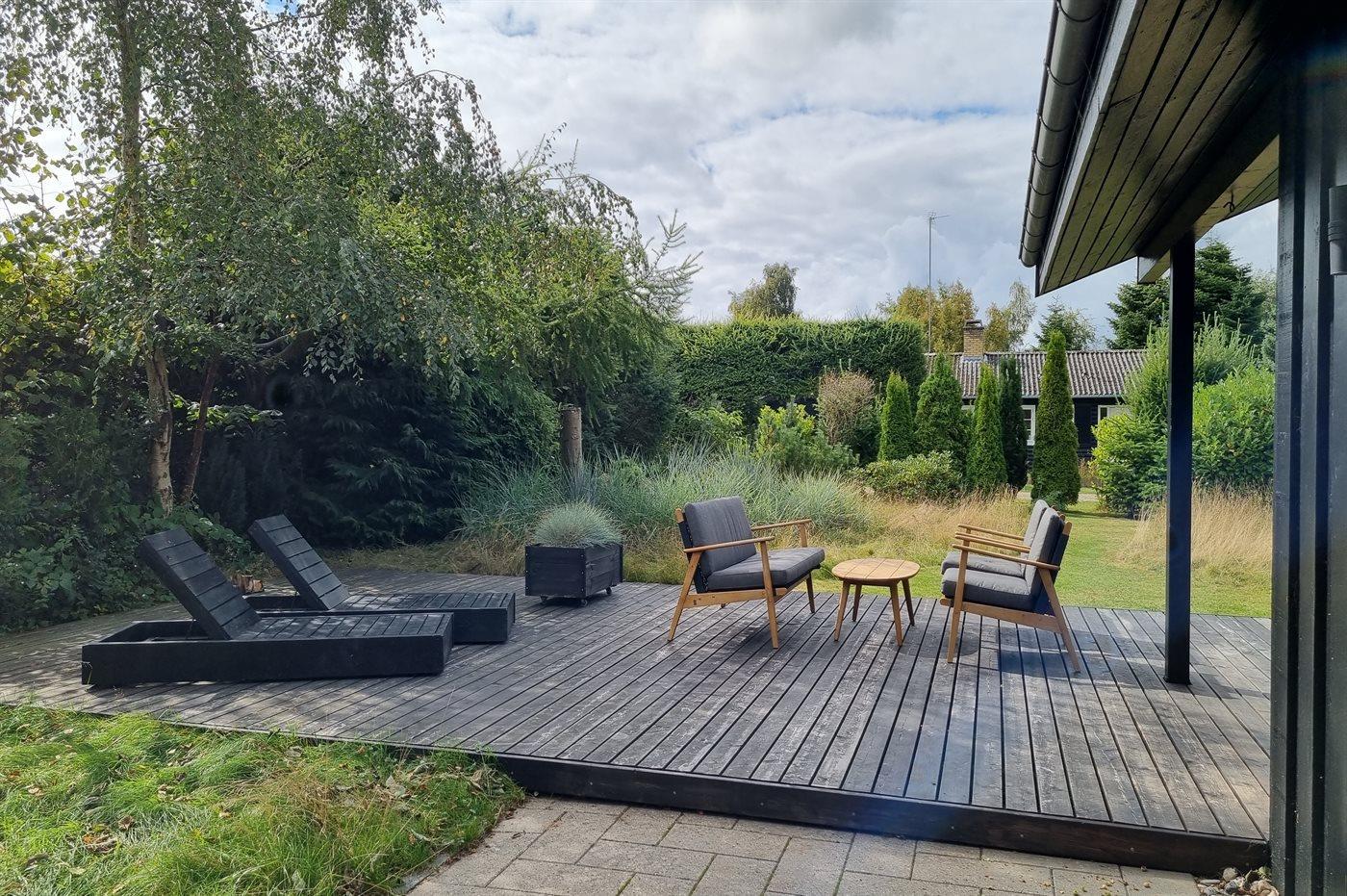 Ferieboligen er beliggende på en 1000 m² stor naturgrund. Der er 700 m til havet. Nærmeste forretning er beliggende i en afstand af 500 m. Til ferieboligen hører 100 m² terrasseareal. Desuden er der 20 m² overdækket terrasse. Der findes trampolin (inground 330x220 cm). Bålsted. Der er carport til rådighed. Der er installeret stik til opladning af elbil. Med 11 kW ladeeffekt. Parkering ved ferieboligen.