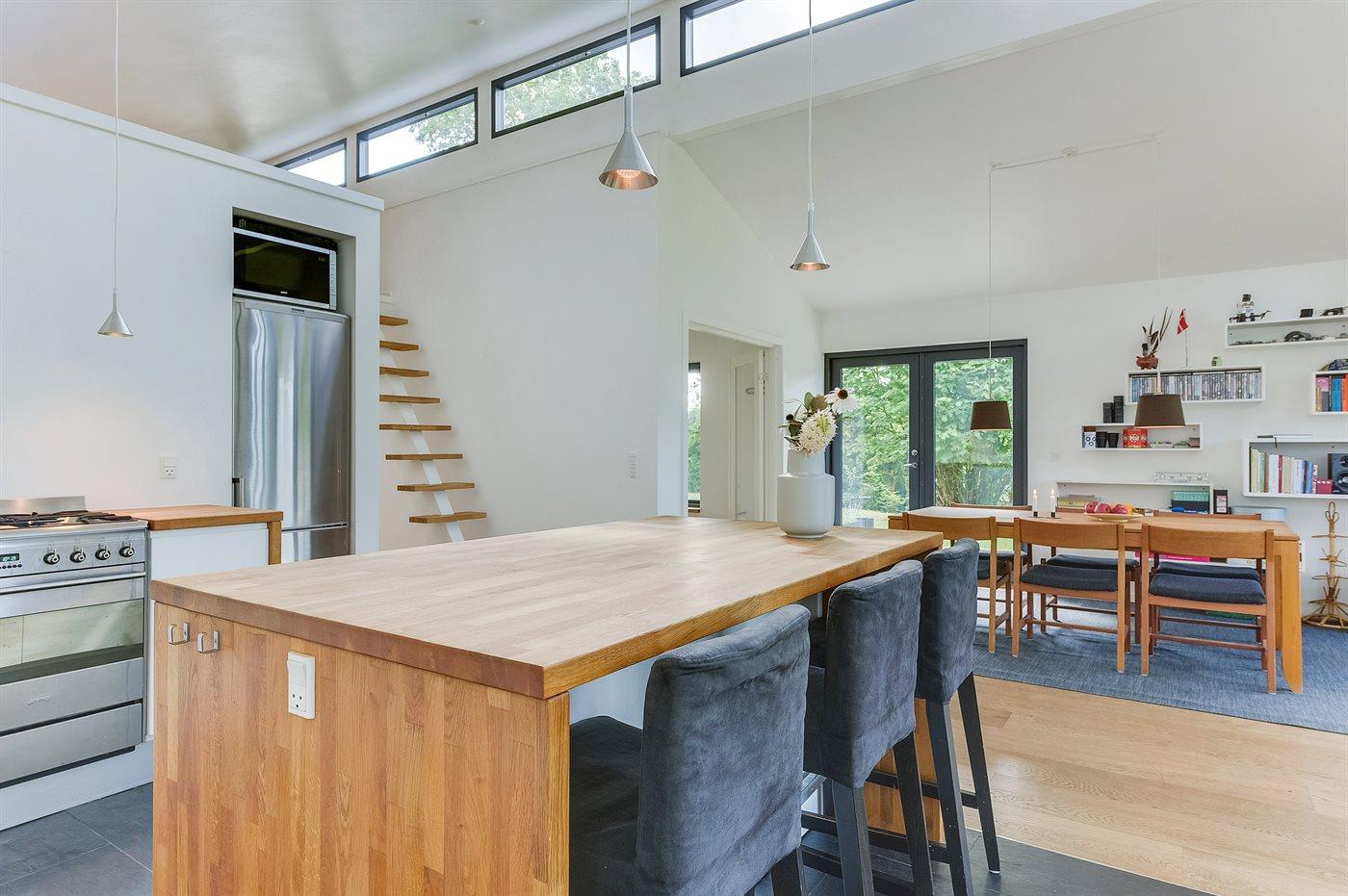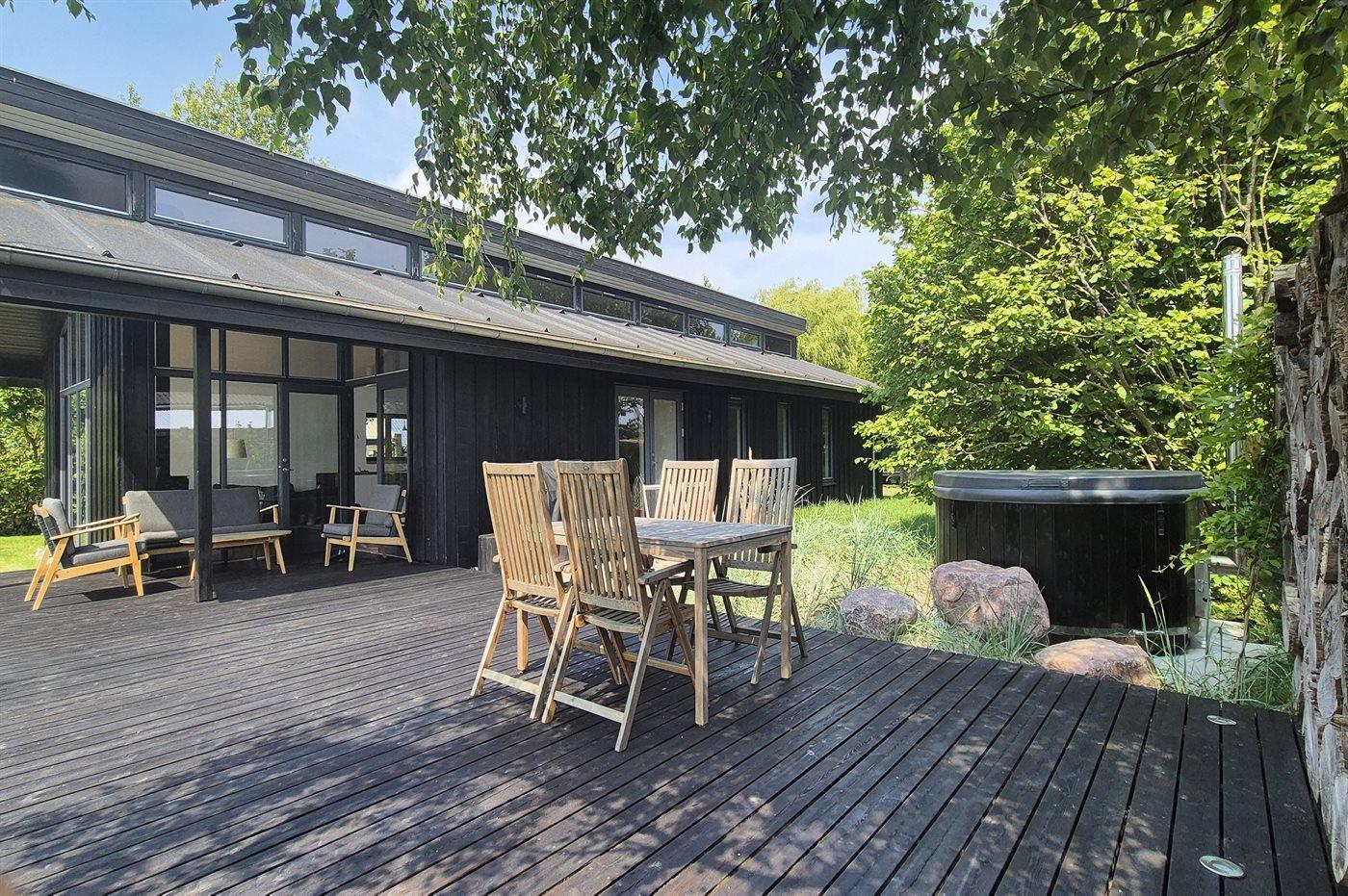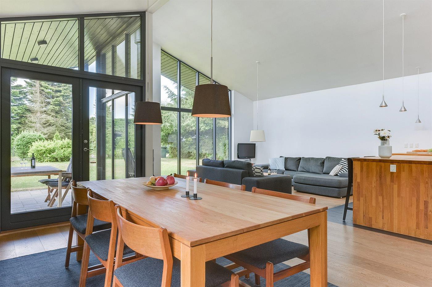 Dette herlige og meget moderne sommerhus ligger på en skøn grund i nærheden af én af Danmarks bedste badestrande. Indvendigt fremtræder huset særdeles lyst og venligt med store panoramavinduer i opholdsstuen, der er åben til kip.