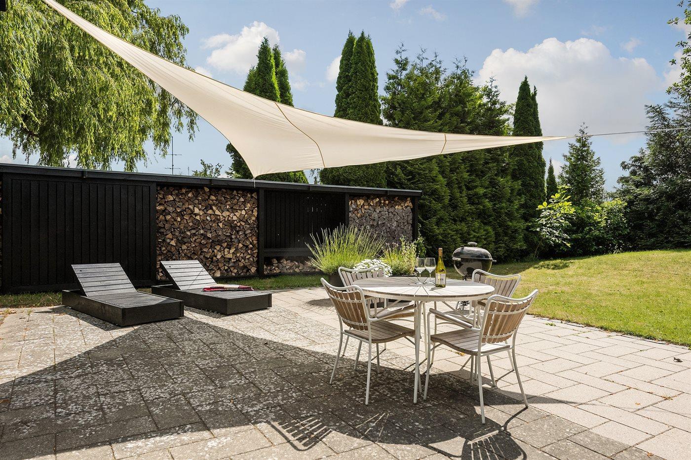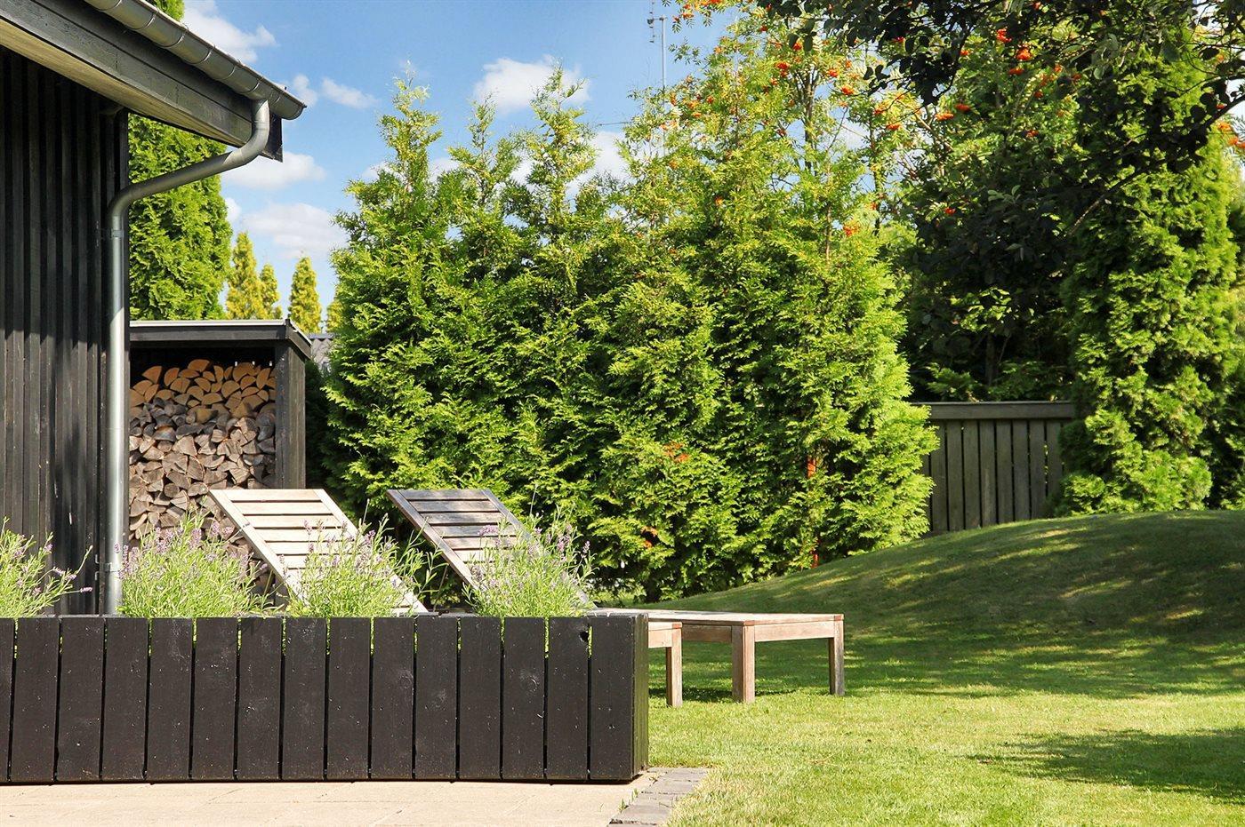 Med hensyn til grunden så tænkes der her på biodiversiteten og dermed vil noget af grunden få lov at gro frit – der vil dog fortsat bliver slået stier og mindre områder for ophold og leg. Der findes også en nedgravet trampolin (330x220 cm).