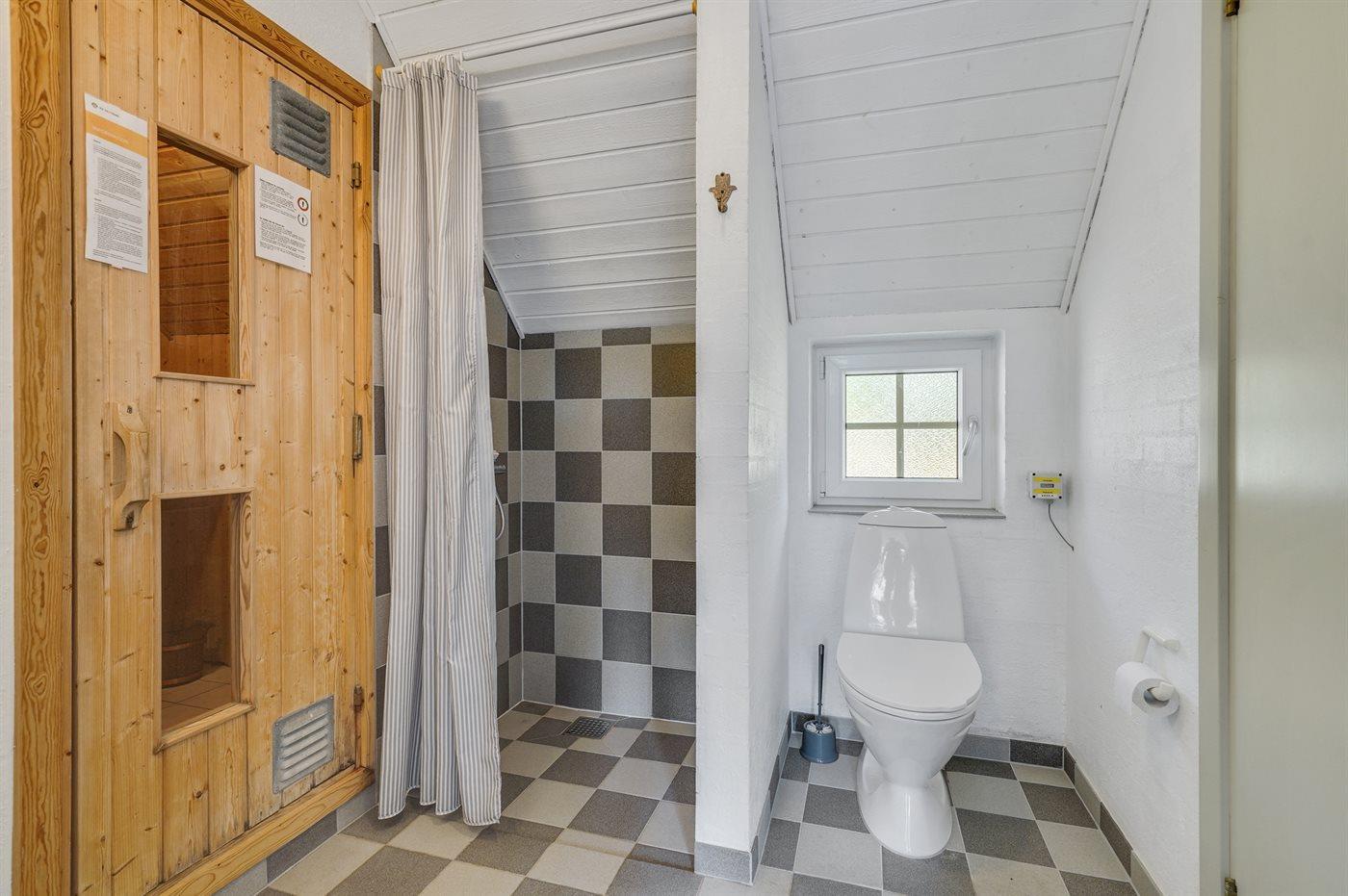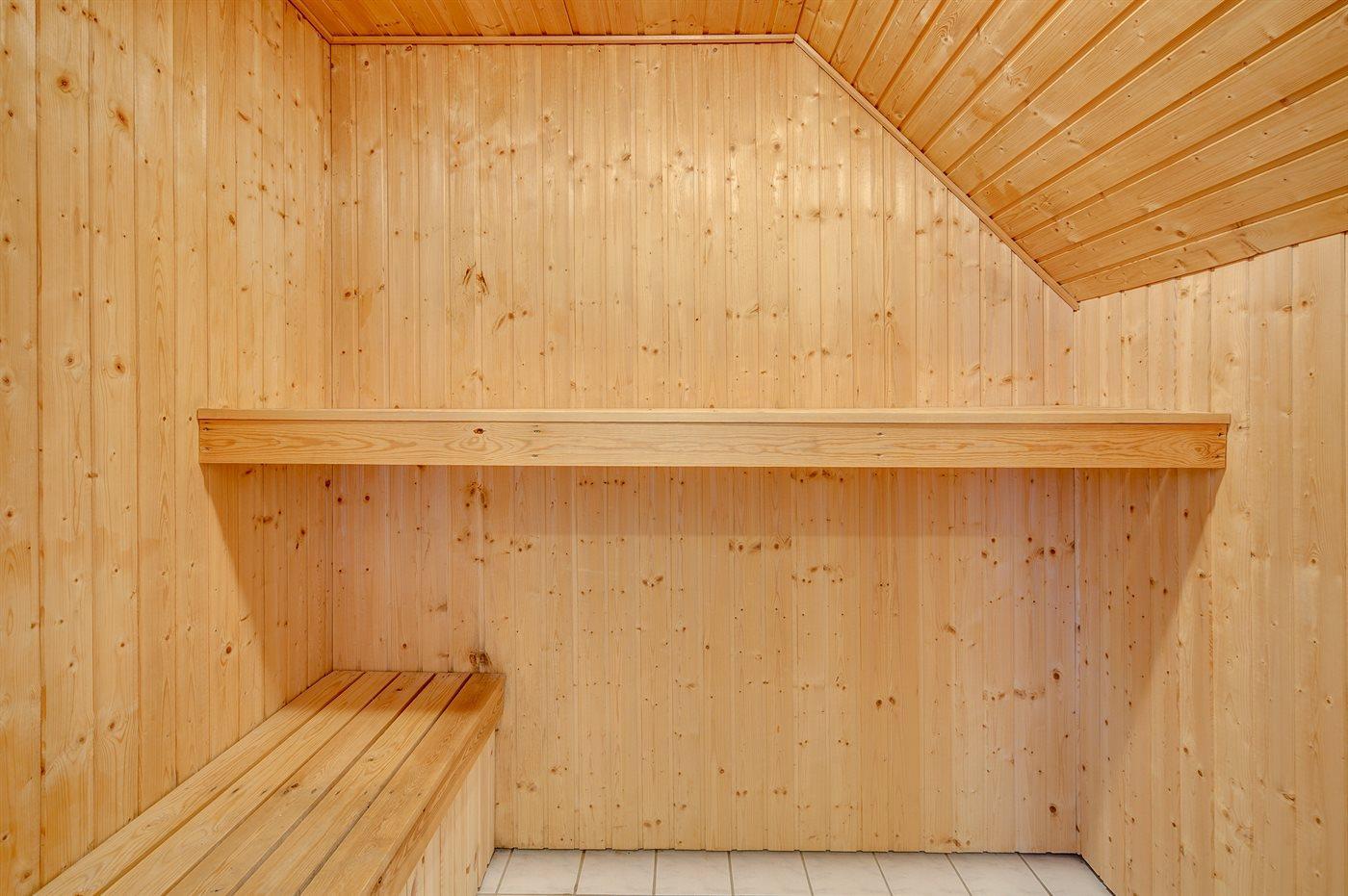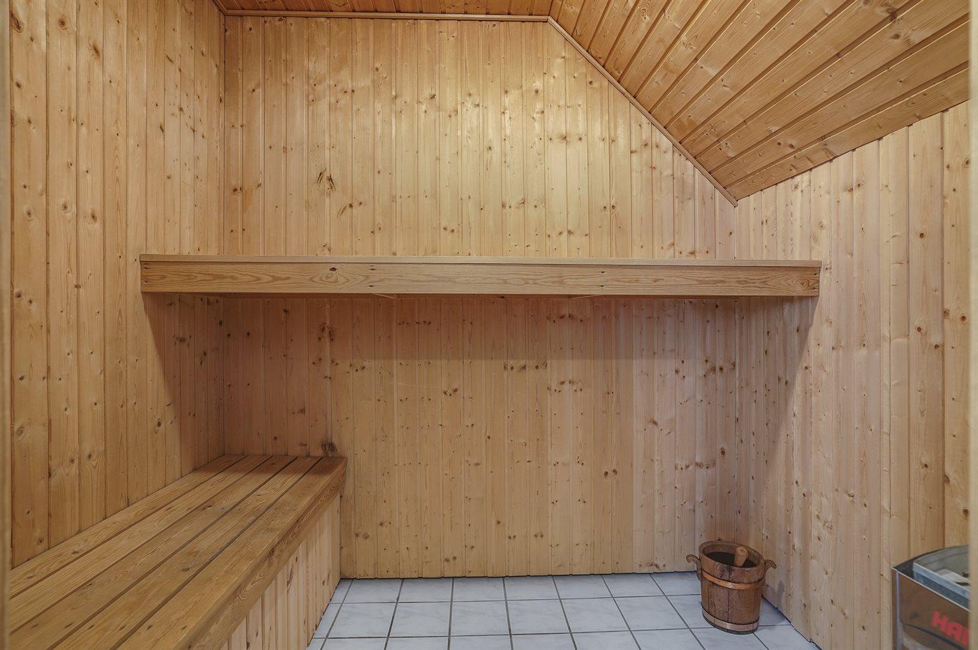 Der er 3 badeværelser med bruseniche og 3 toiletter. Der er gulvvarme på de 3 badeværelser. Der er mulighed for afslapning i indendørs spa til 2 personer eller i saunaen.
