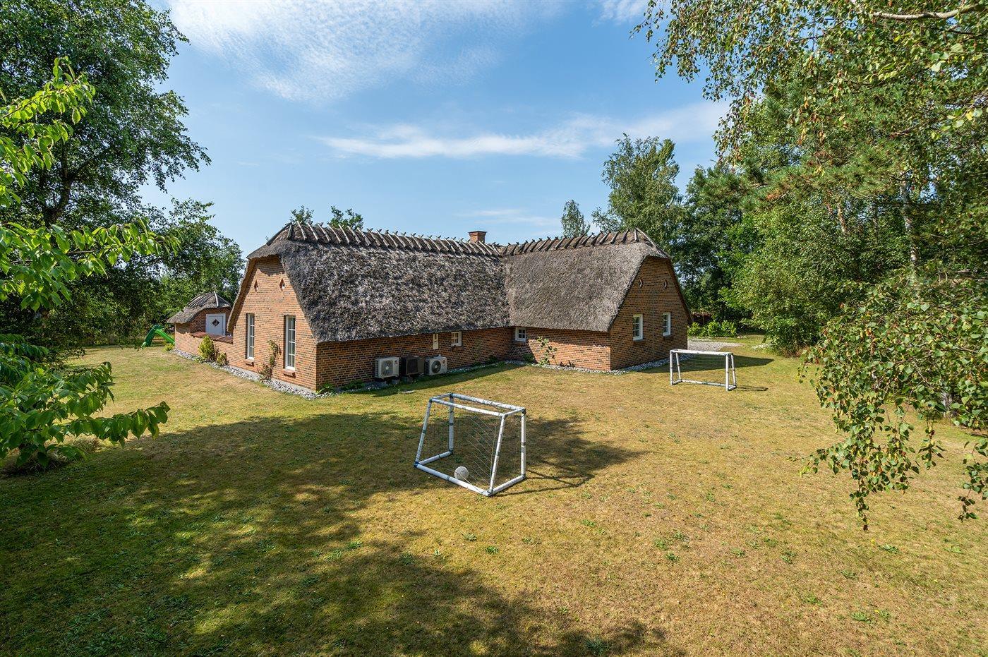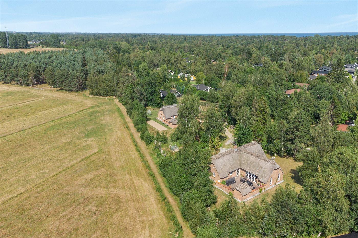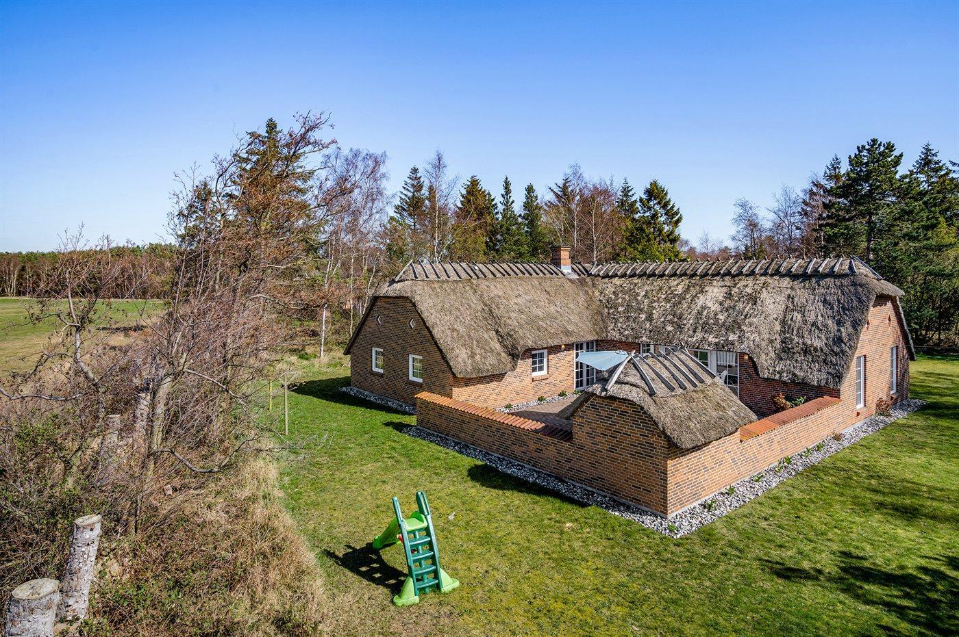 Ferieboligen er beliggende på en 2247 m² stor naturgrund. Der er 1300 m til havet. Nærmeste forretning er beliggende i en afstand af 1000 m. Der er en golfbane i en afstand af 4800 m. Til ferieboligen hører 65 m² lukket terrasse. Der er redskabsrum. Nedgravet trampolin (diameter 3,96) med sikkerhedsnet. Gynge. Fodboldmål. Parkering ved ferieboligen. Der er opsat ladestander med 11 kW ladeeffekt til opladning af elbil.