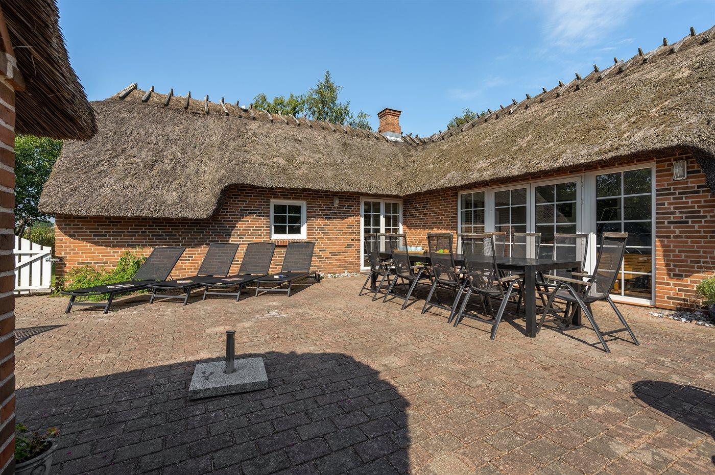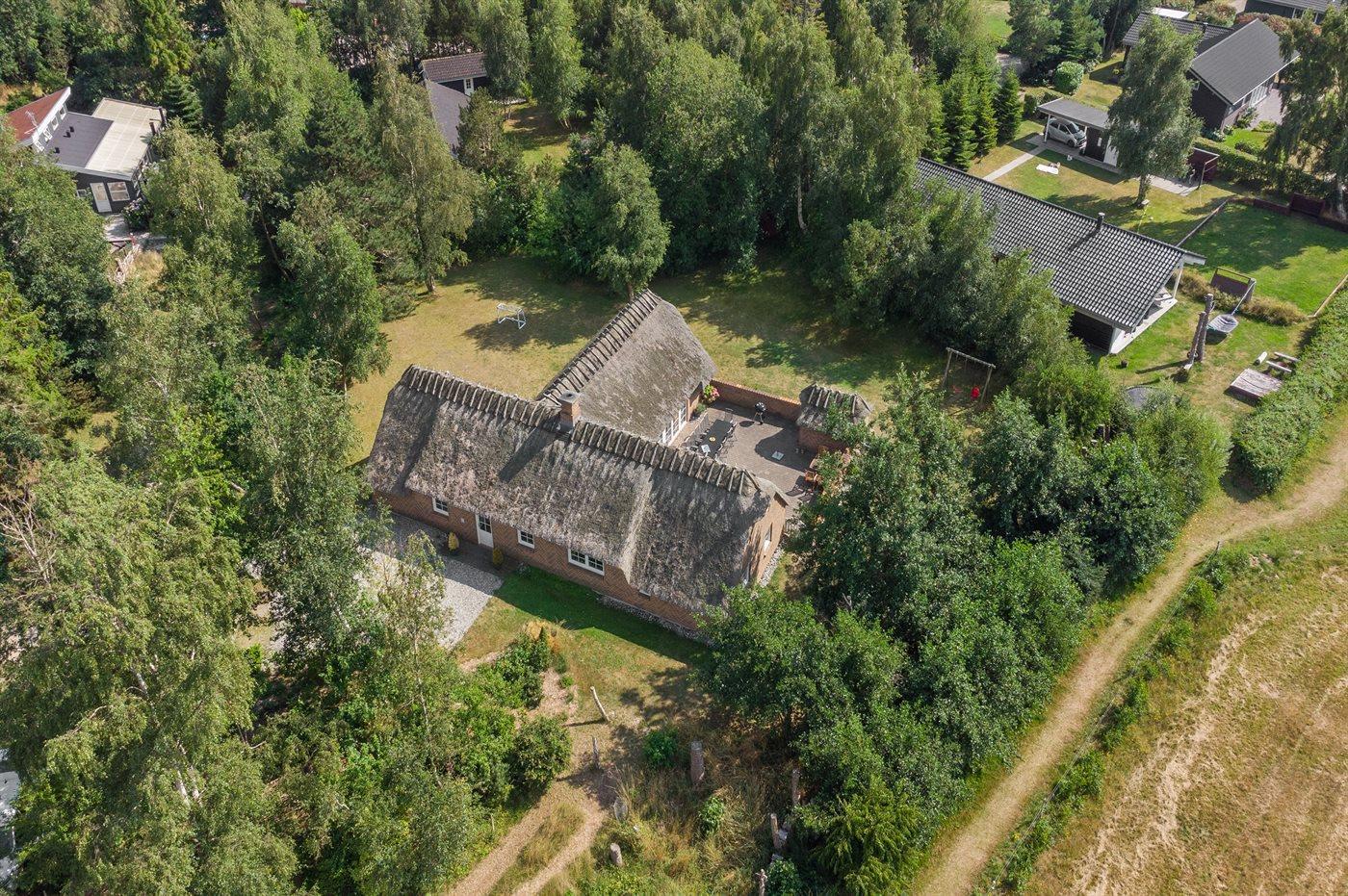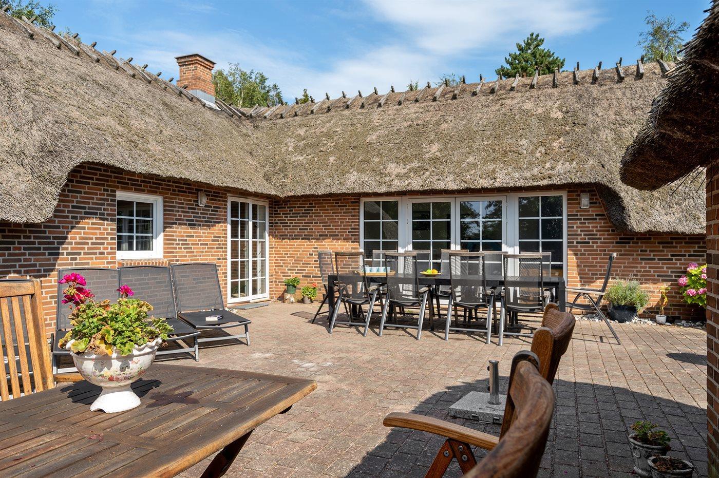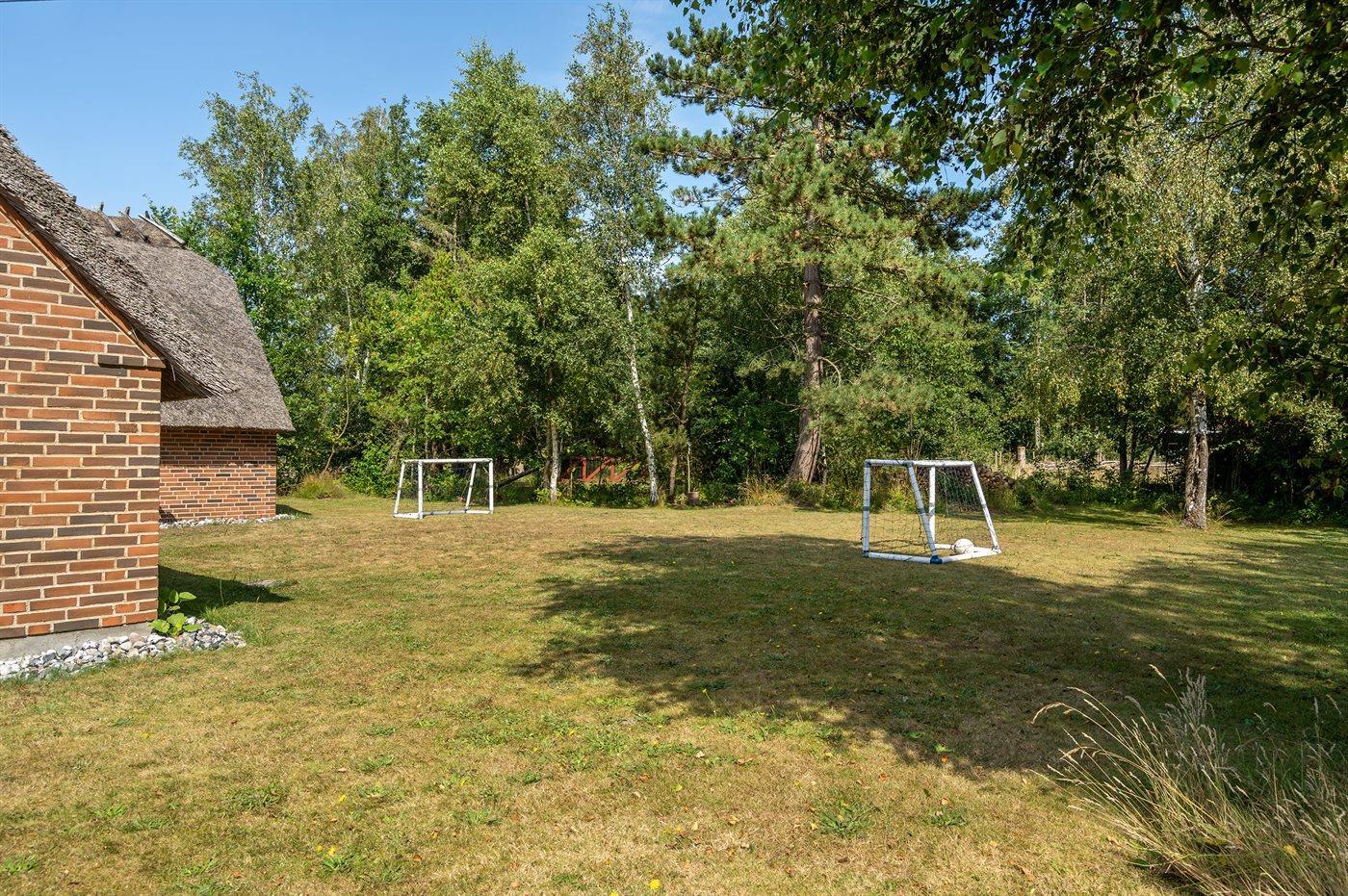 Ferieboligen er beliggende på en 2247 m² stor naturgrund. Der er 1300 m til havet. Nærmeste forretning er beliggende i en afstand af 1000 m. Der er en golfbane i en afstand af 4800 m. Til ferieboligen hører 65 m² lukket terrasse. Der er redskabsrum. Nedgravet trampolin (diameter 3,96) med sikkerhedsnet. Gynge. Fodboldmål. Parkering ved ferieboligen. Der er opsat ladestander med 11 kW ladeeffekt til opladning af elbil.