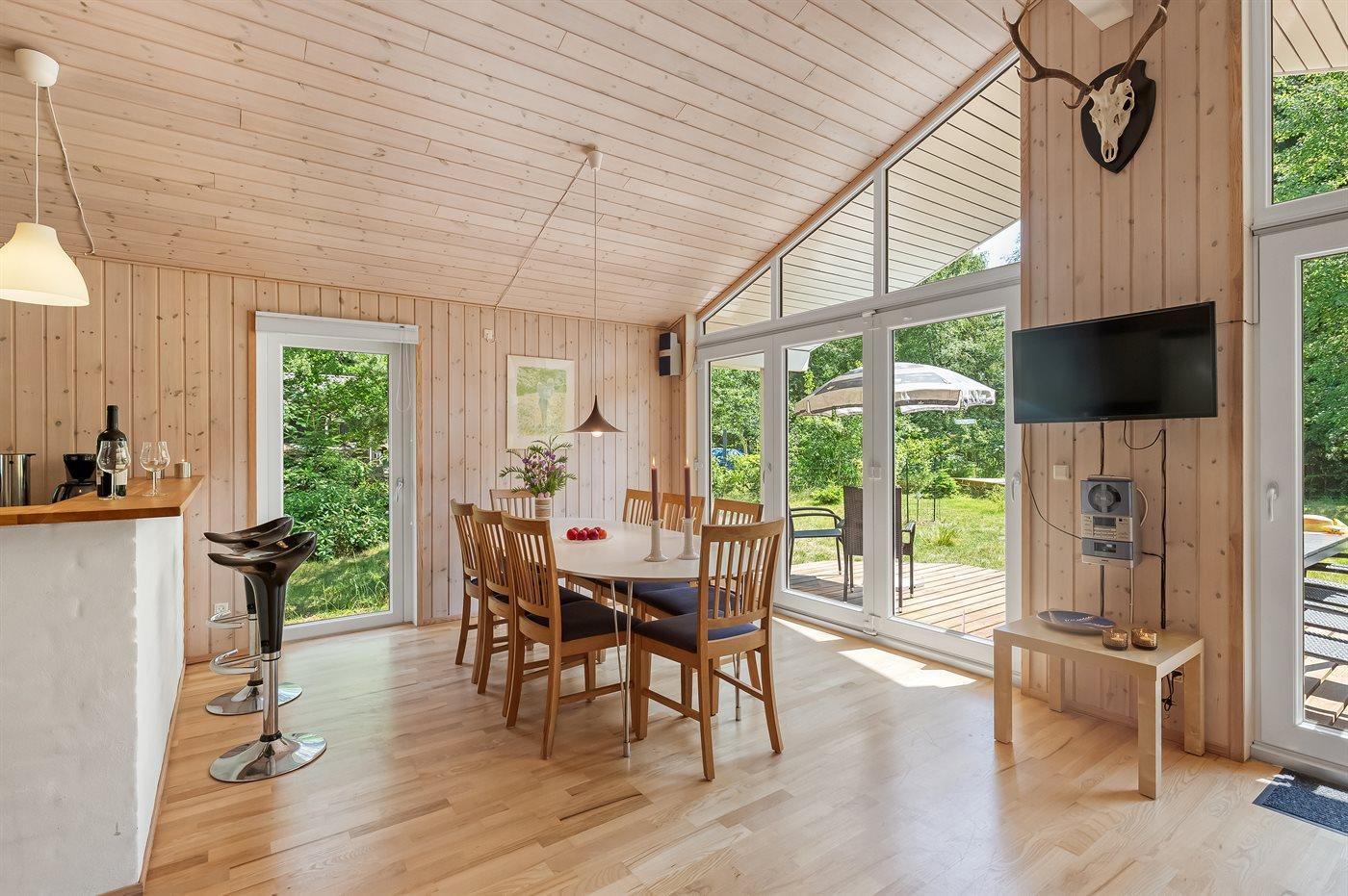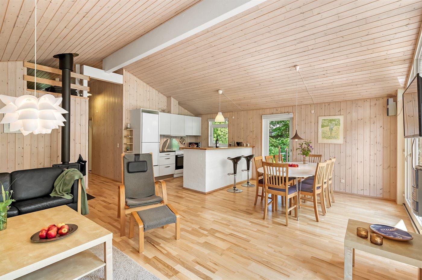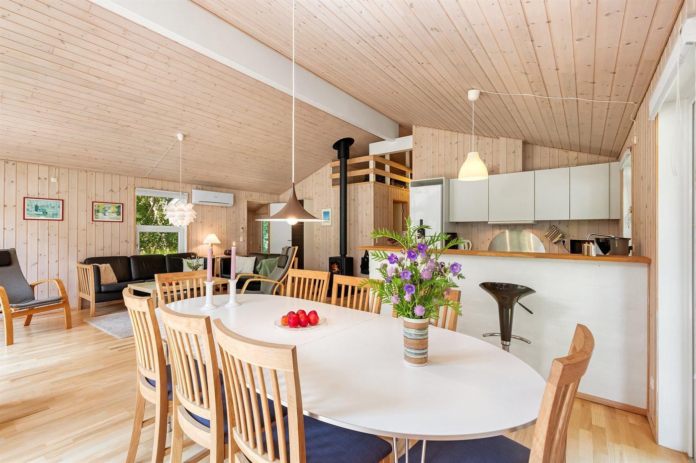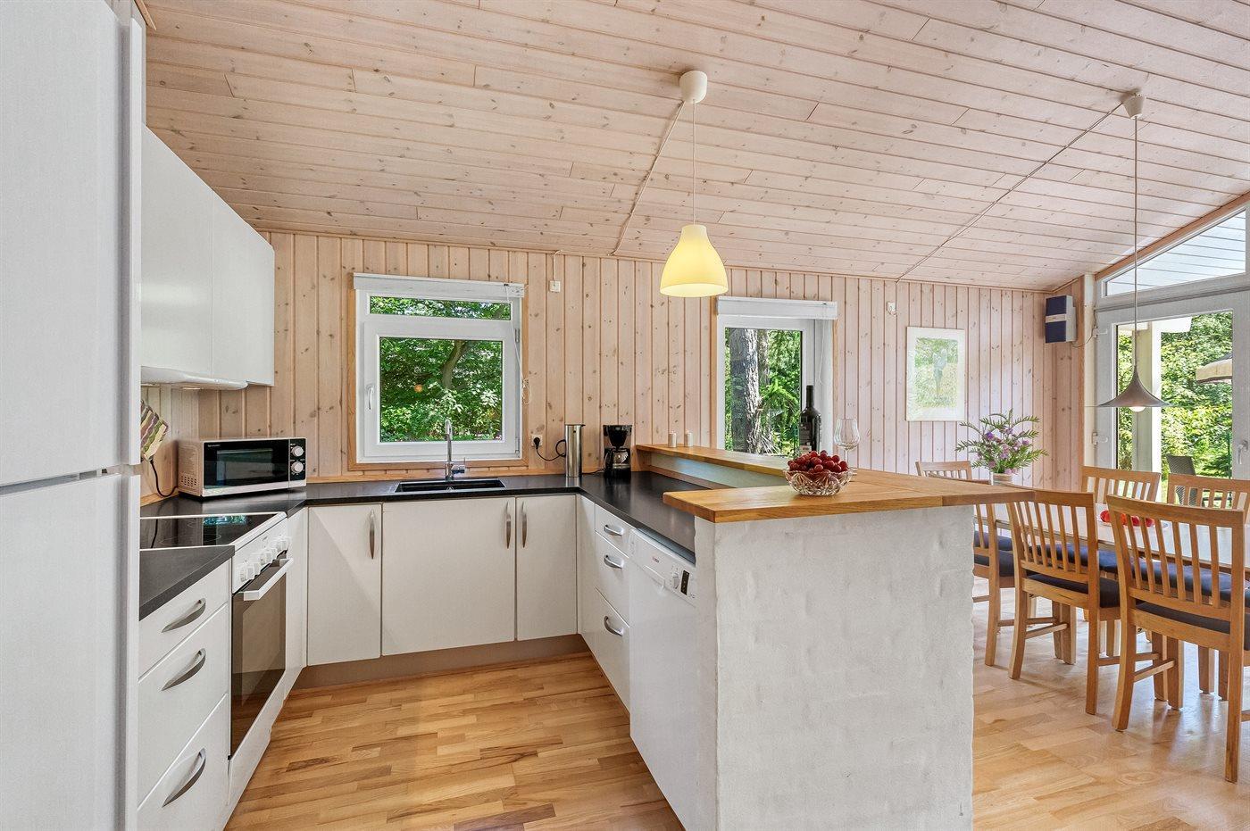 Skønt og hyggeligt indrettet sommerhus i træ, bygget i 2012, beliggende tæt ved vandet på en naturgrund omgivet af høje træer. Til huset hører en delvis overdækket terrasse med havemøbler. Indvendigt fremstår huset lyst og rummeligt med lofter til kip og gode lysindfald. Det åbne køkken, som er kombineret med spiseplads og opholdsstue, er bl.a. udstyret med opvaskemaskine, mikrobølgeovn, varmluftovn, komfur med keramiske kogeplader samt fryser. I opholdsstuen findes der ud over komfortable møbler, brændeovn, TV samt stereoanlæg med CD-afspiller. Sovepladserne fordeler sig på 2 værelser med dobbeltseng, 1 værelse med 2 enkeltsenge samt 2 sovepladser på hems. Husets badeværelse er indrettet med 2 pers. spa, adgang til sauna, bruseniche samt gulvvarme. Desuden gæstetoilet til rådighed. Af yderligere udstyr kan vaskemaskine og tørretumbler nævnes, samt muligheden for brug af gratis trådløs internetforbindelse (computer medbringes). Ligeledes er der installeret energibesparende varmepumpe i huset. Der er dels trægulve dels klinkegulve i huset. Et skønt sommerhus beliggende i et naturskønt område tæt på dejlig sandstrand ved Østersøen samt feriebyen Marielyst.