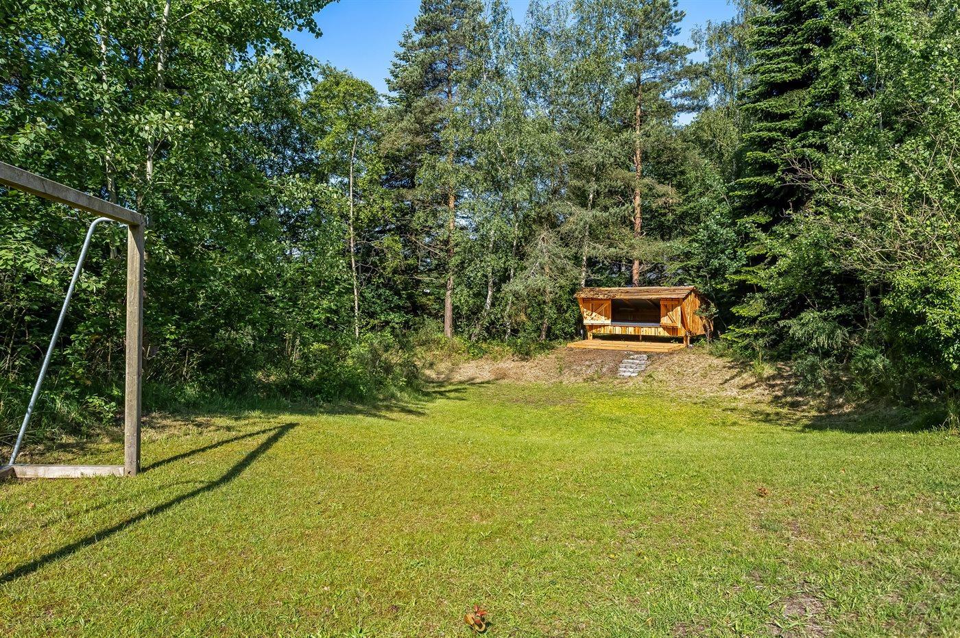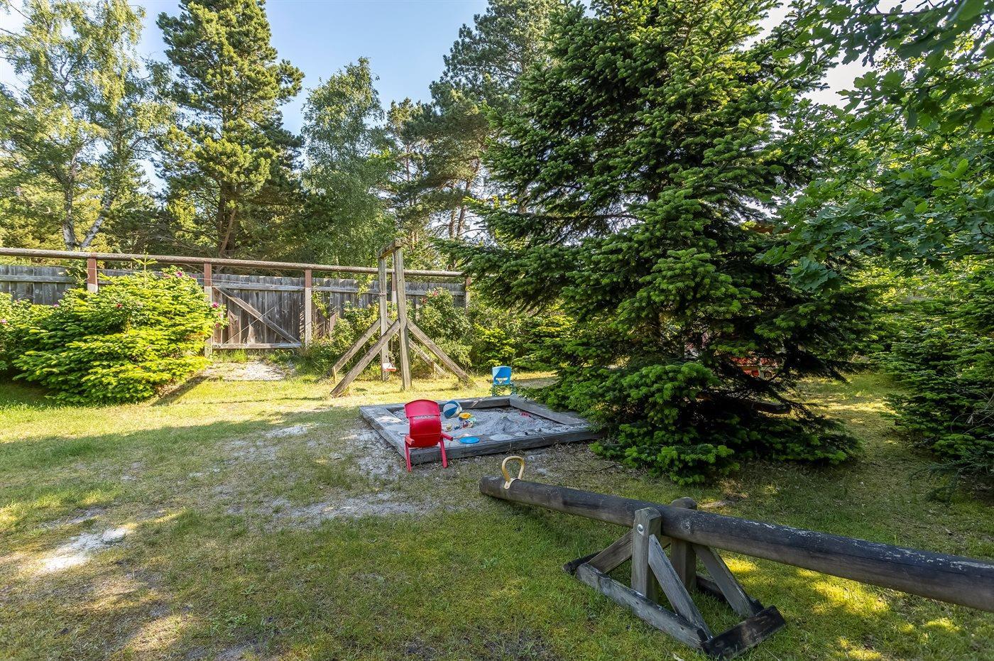 På terrassen er der plads til en hængekøje, ligesom der er en grill til rådighed. Til børnene er der gynge, sandkasse samt legetårn med rutchebane.