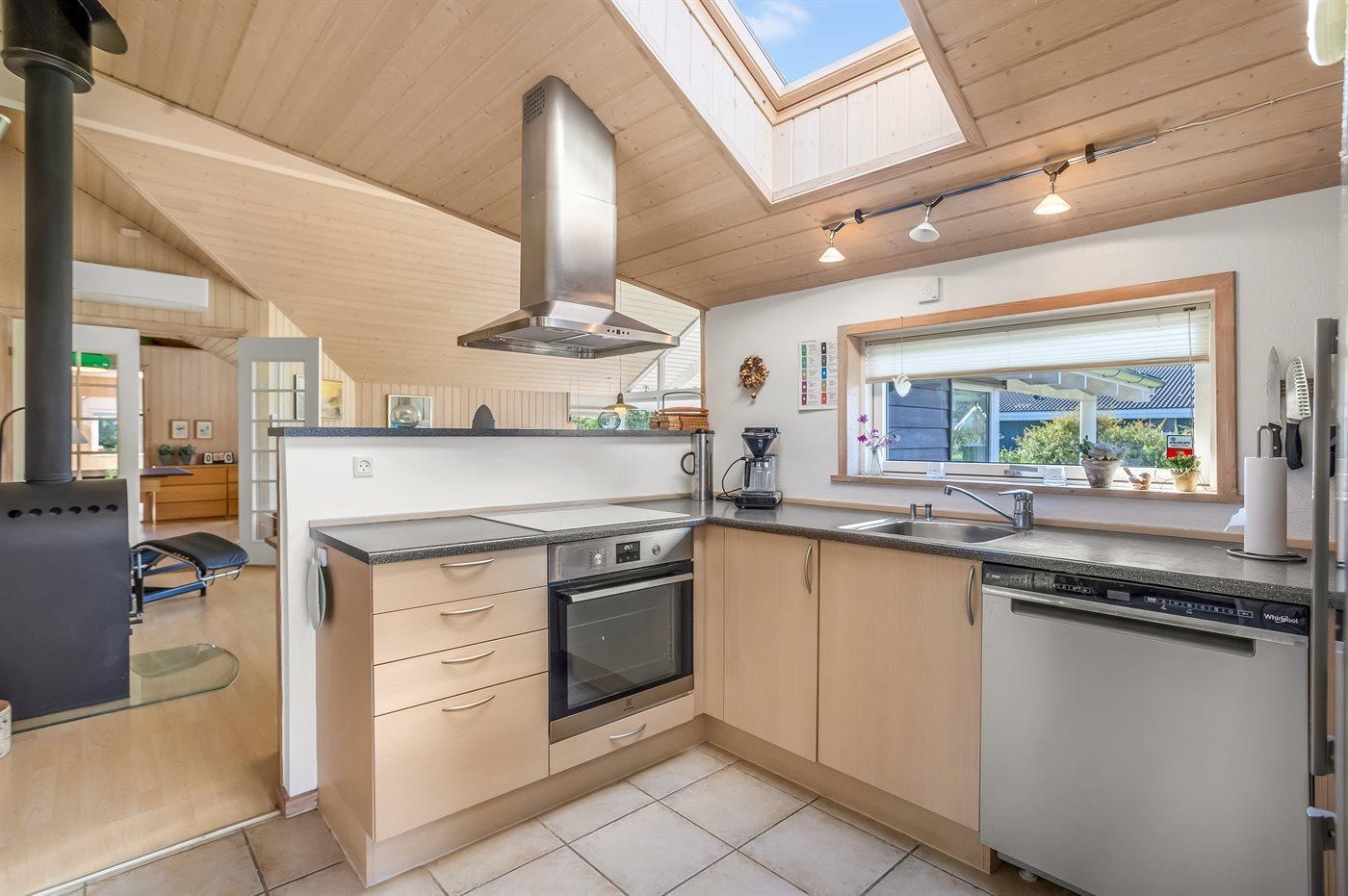 Køkkenet er udstyret med 2 køleskabe. Der er 4 keramiske kogeplader, varmluftovn, mikrobølgeovn samt opvaskemaskine Der er gulvvarme i køkkenet.