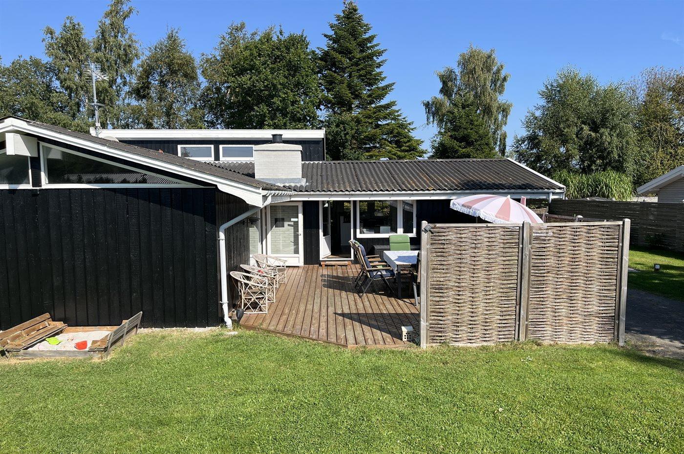 Fra swimmingpool-afdelingen er der adgang til delvist afskærmet sydvendt terrasse, hvor I kan slænge jer i terrassemøblerne og solsengene. I den 1000 m² store have finder I også fodboldmål. Haven er indrettet med flere træterrasser.