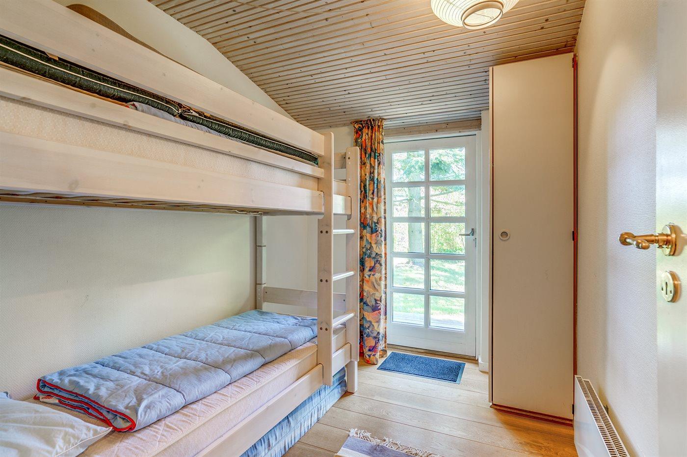 Der er i alt 3 soveværelser. Sovepladserne fordeler sig på: 2 sovepladser i dobbeltseng. 2 sovepladser i enkeltsenge. 2 sovepladser i køjeseng.