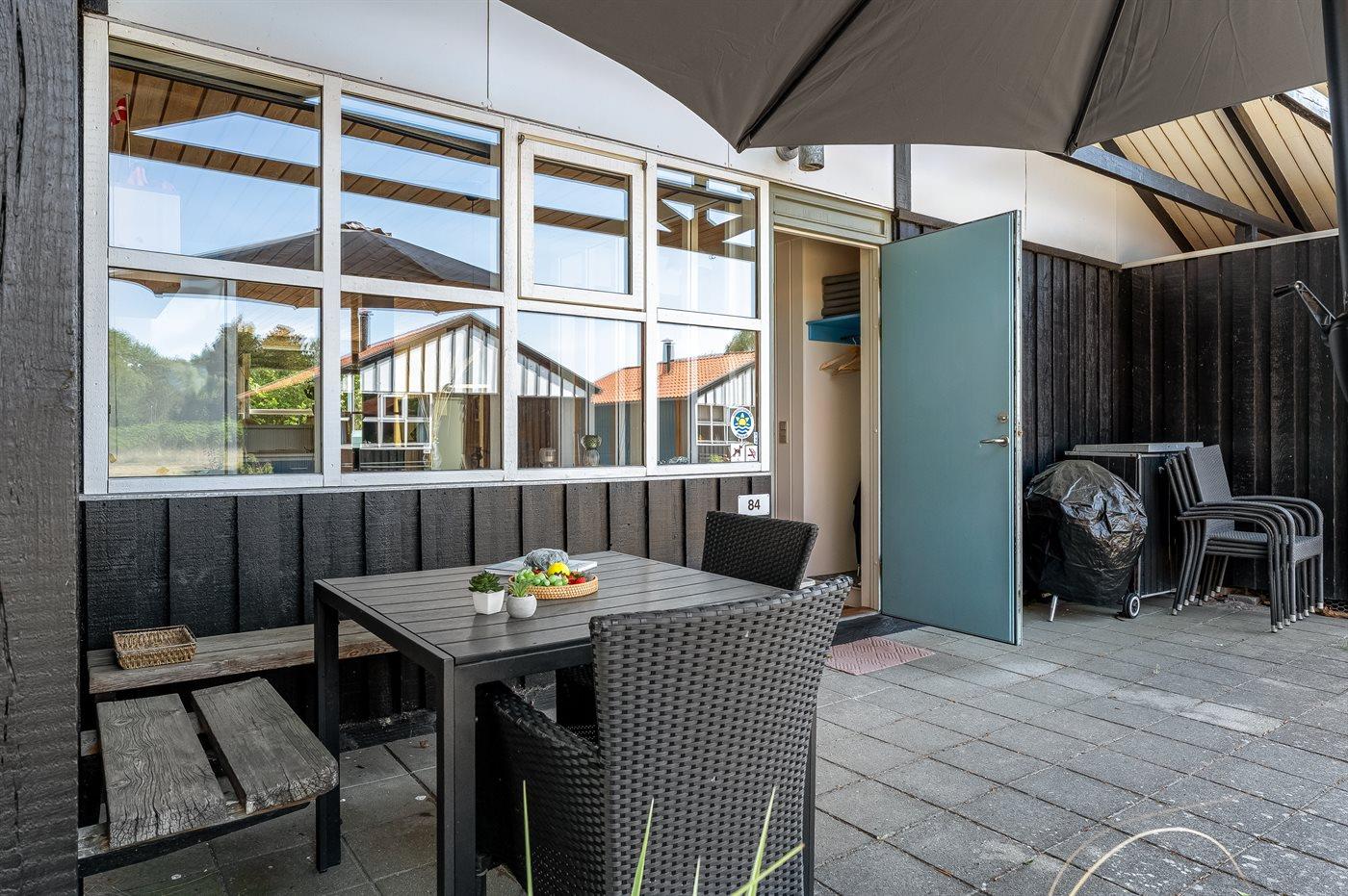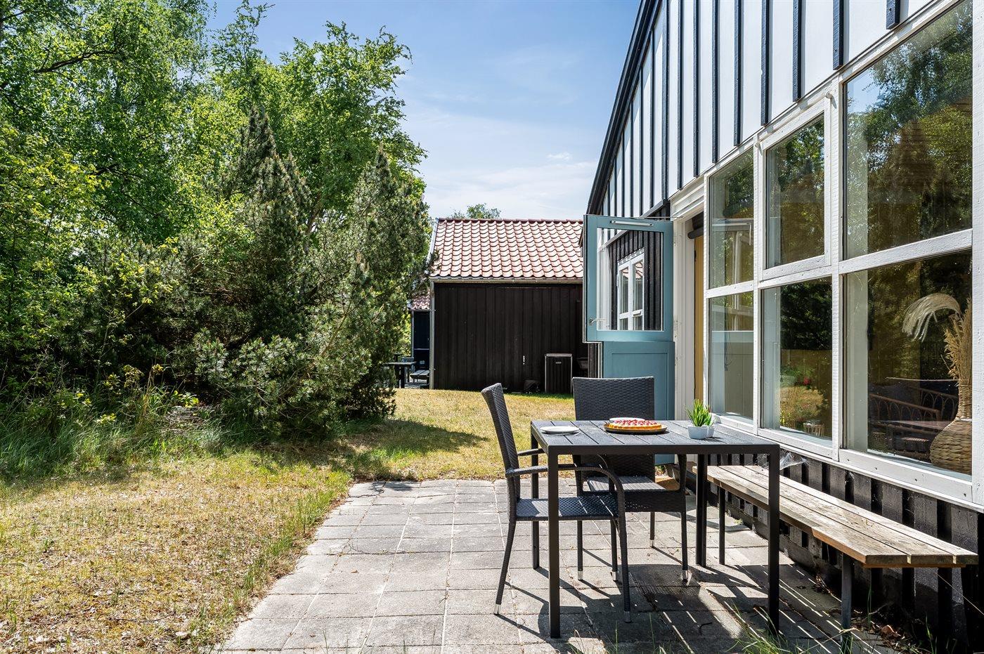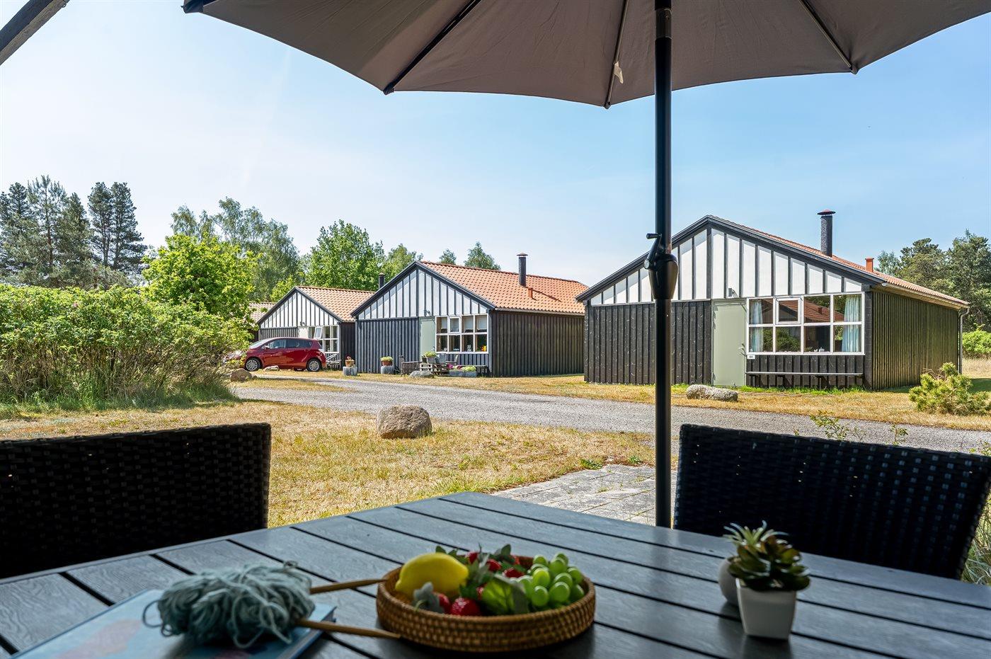 Ferieboligen er beliggende på en 350 m² stor naturgrund. Der er 300 m til havet. Nærmeste forretning er beliggende i en afstand af 150 m. Til ferieboligen hører 10 m² terrasseareal. Desuden er der 10 m² overdækket terrasse. Grill til rådighed.
