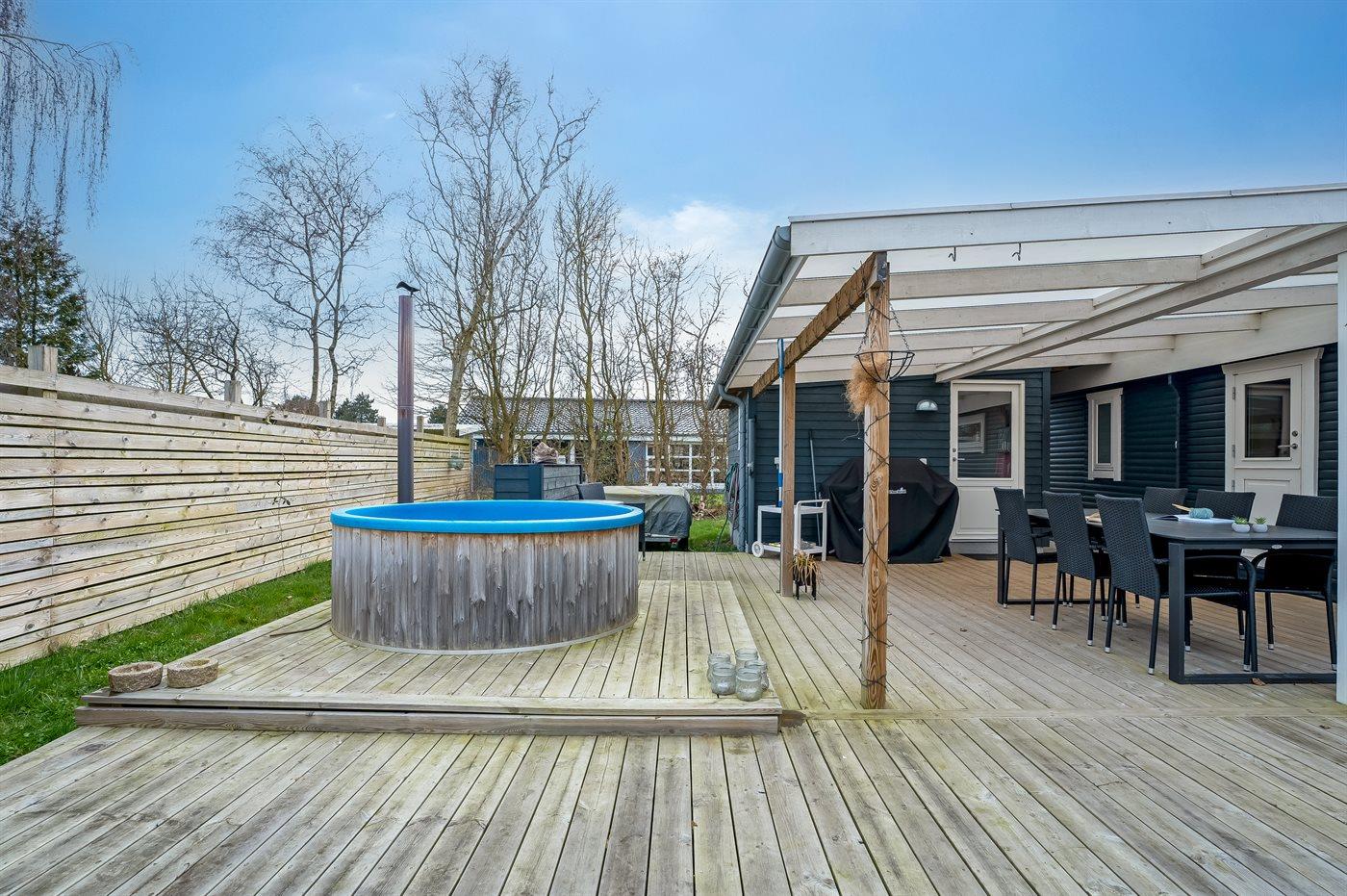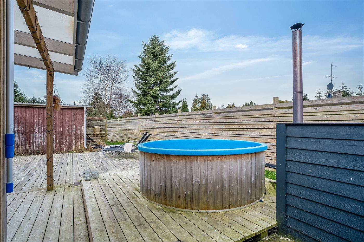 Der er mulighed for afslapning i det udendørs vildmarkskar til 6 personer.