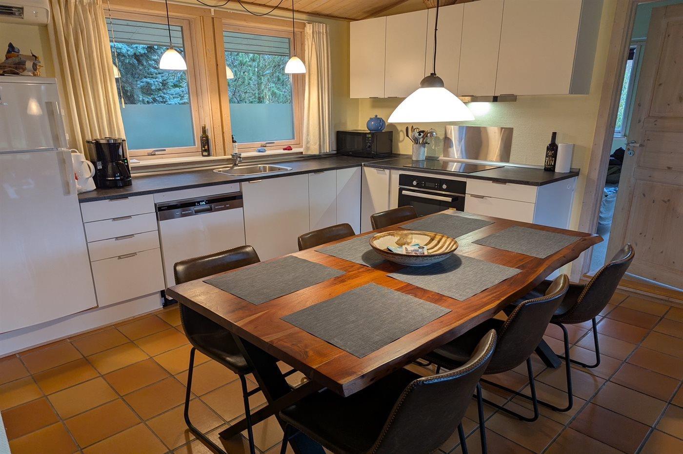 Køkkenet er udstyret med 1 køleskab. Der er 4 keramiske kogeplader, varmluftovn, mikrobølgeovn samt opvaskemaskine.