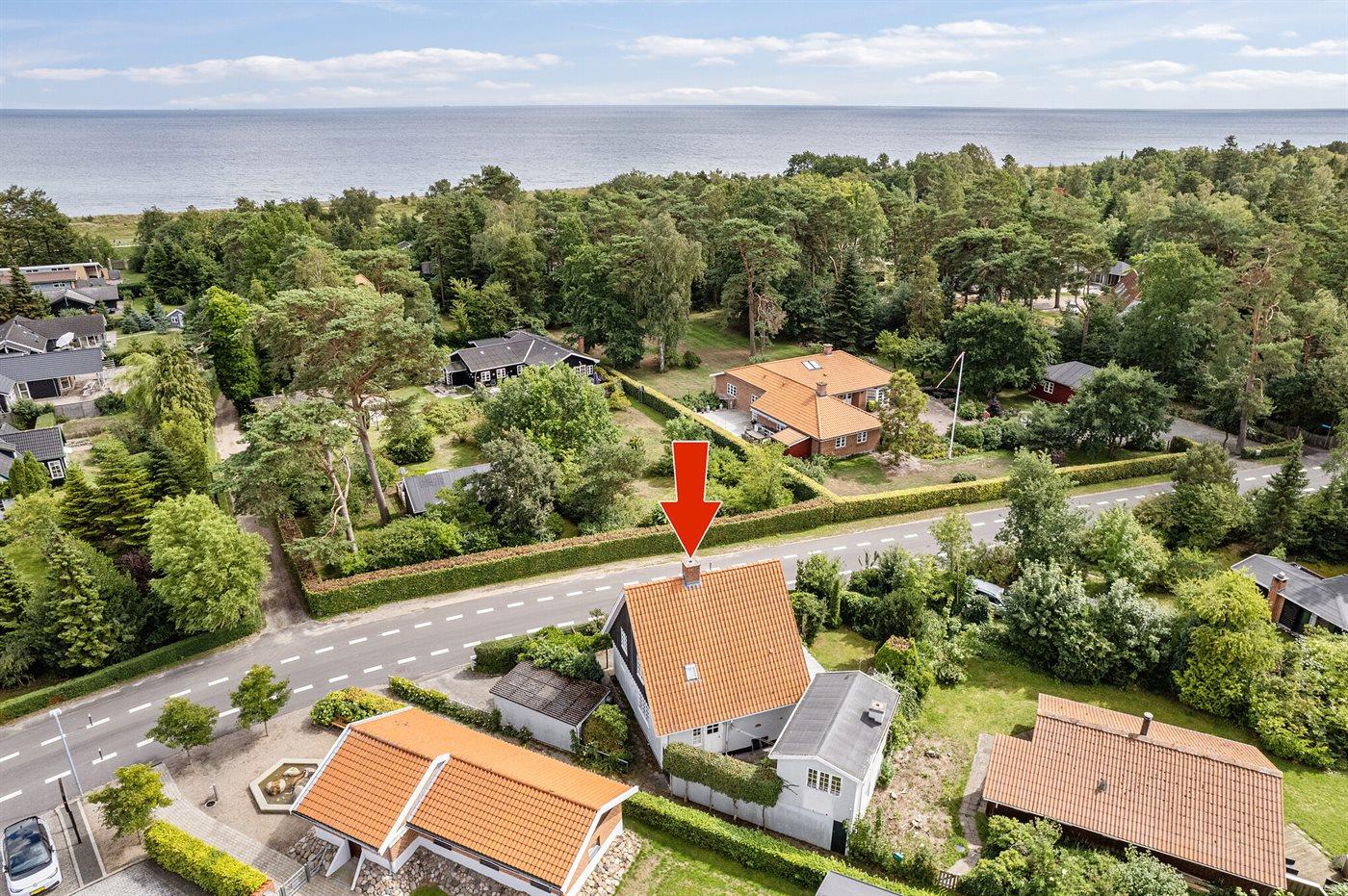 Ferieboligen er beliggende på en 635 m² stor havegrund. Der er 275 m til havet. Der er en badebro i nærheden. Nærmeste forretning er beliggende i en afstand af 375 m. Der er en golfbane i en afstand af 1200 m. Til ferieboligen hører åbent terrasseareal. Desuden er der overdækket terrasse. Der ligger en legeplads i en afstand af 250 m. Der er garage til rådighed. Der er installeret stik til opladning af elbil. Parkering ved ferieboligen.