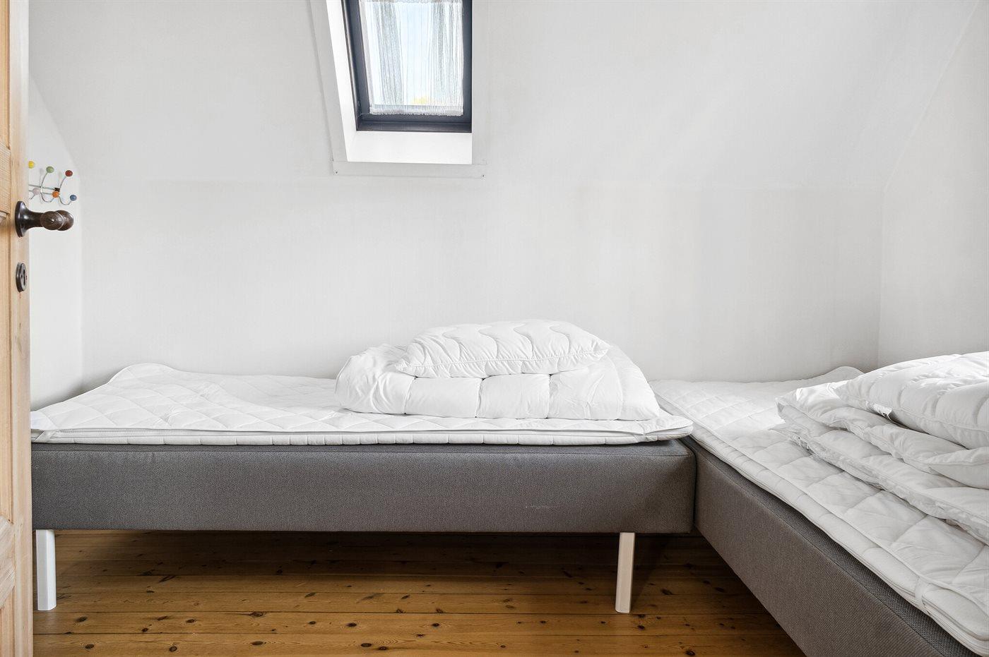Der er i alt 3 soveværelser. Sovepladserne fordeler sig på: 4 sovepladser i enkeltsenge.2 sovepladser i elevationssenge.