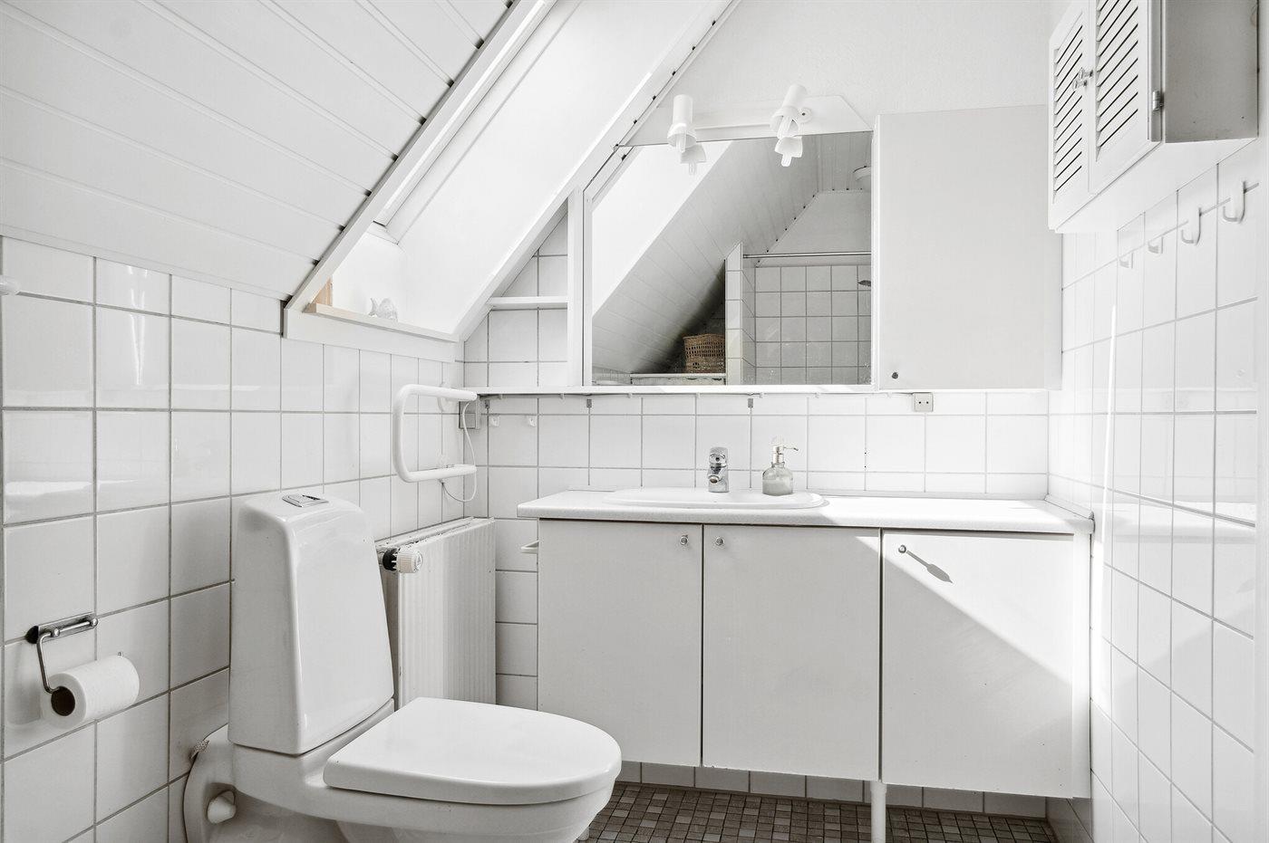 Der er 1 badeværelse med bruseniche og 2 toiletter, heraf 1 gæstetoilet.