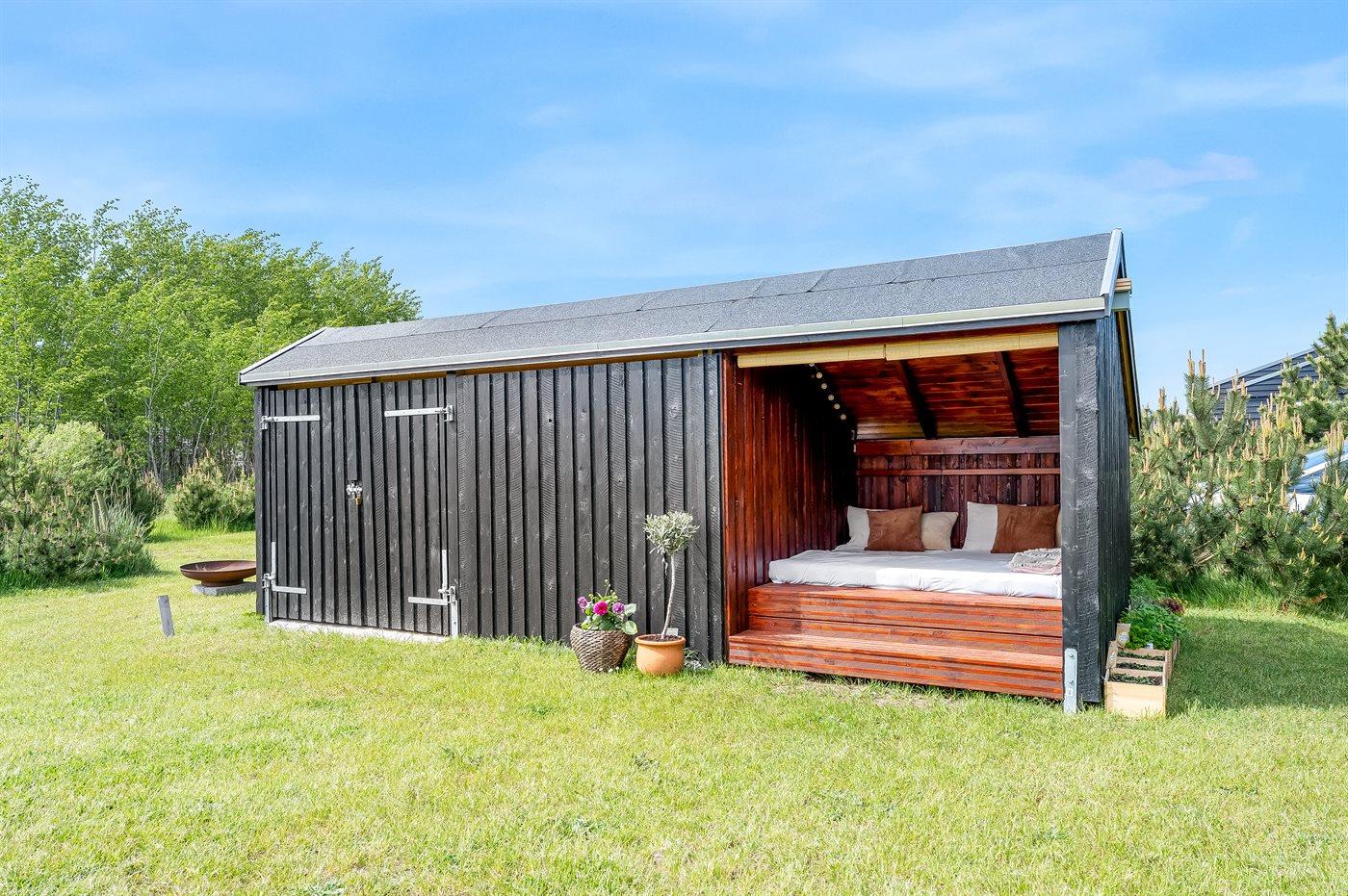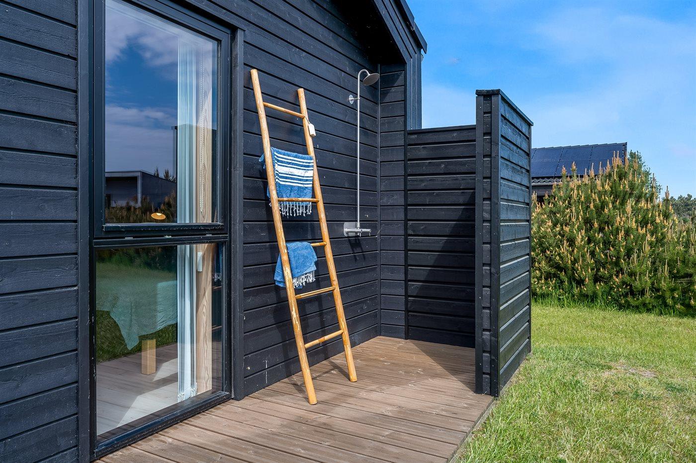 Ferieboligen er beliggende på en 1255 m² stor havegrund. Der er 900 m til havet. Nærmeste forretning er beliggende i en afstand af 1100 m. Der er en golfbane i en afstand af 500 m. Til ferieboligen hører åbent terrasseareal. Desuden er der overdækket terrasse. Der ligger en legeplads i en afstand af 1500 m. Udendørs bruser. Grill til rådighed. Der er installeret stik til opladning af elbil. Parkering ved ferieboligen.