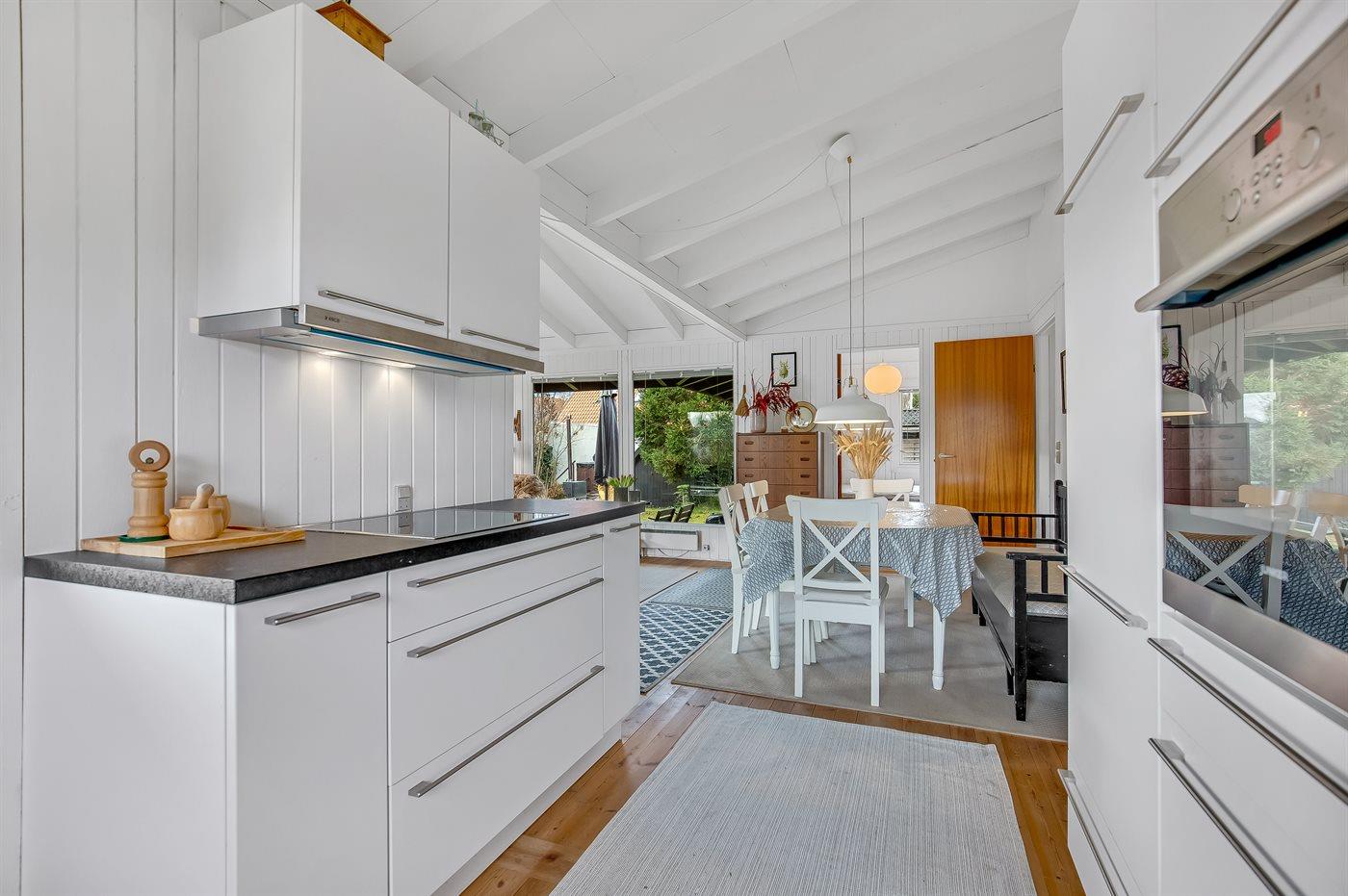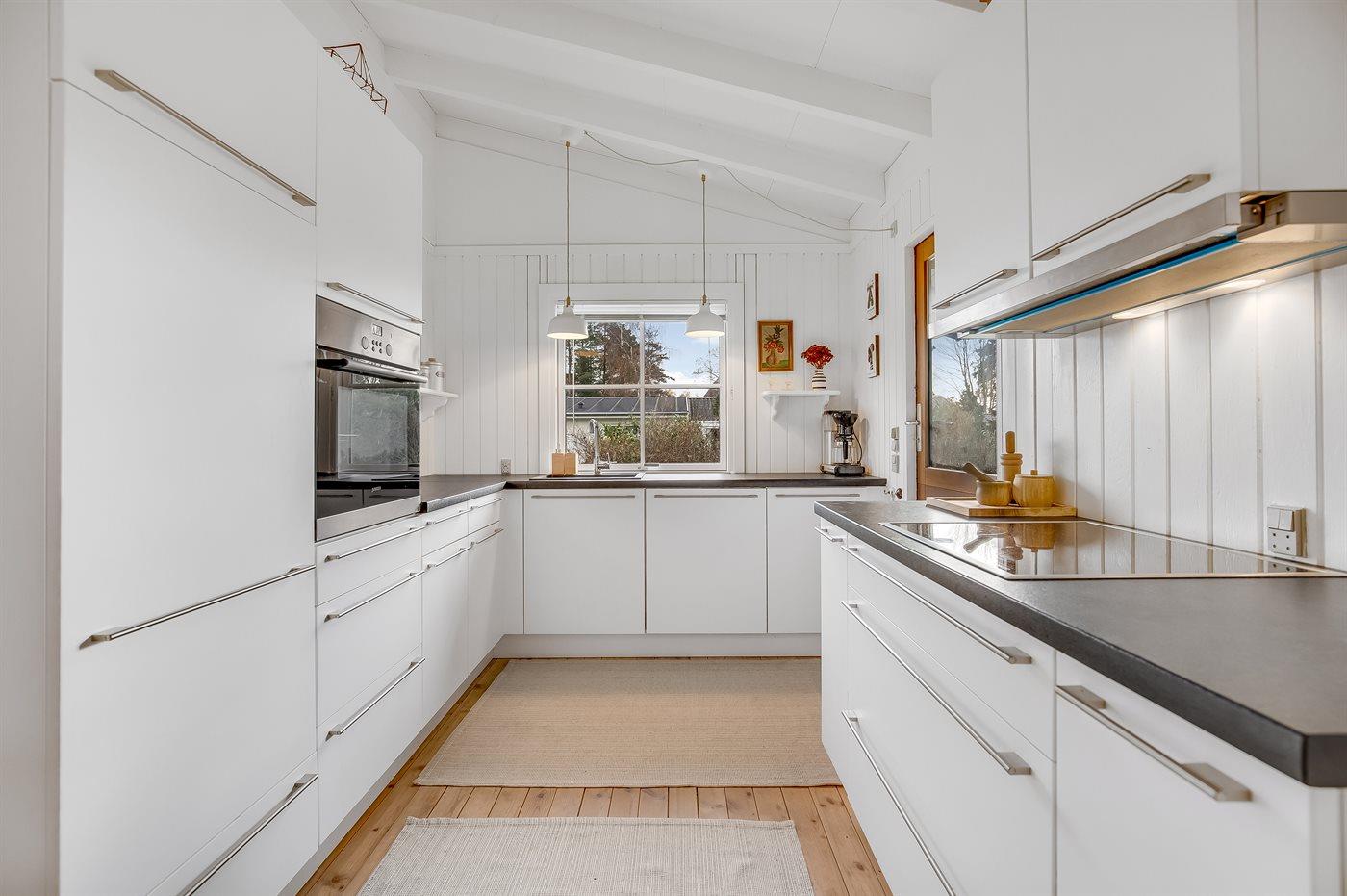 Køkkenet er udstyret med 1 køleskab. Der er 4 keramiske kogeplader, varmluftovn, mikrobølgeovn samt opvaskemaskine.