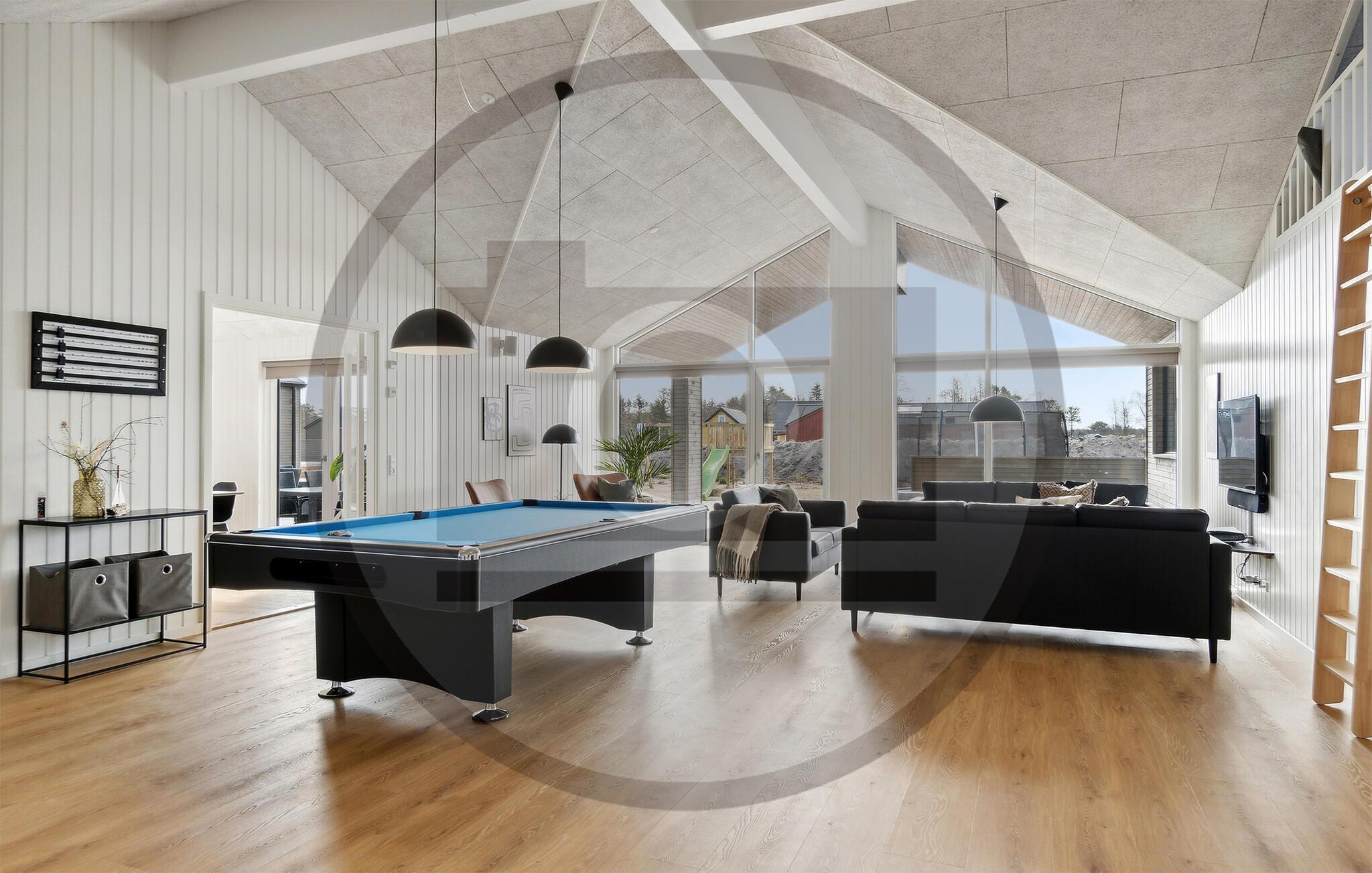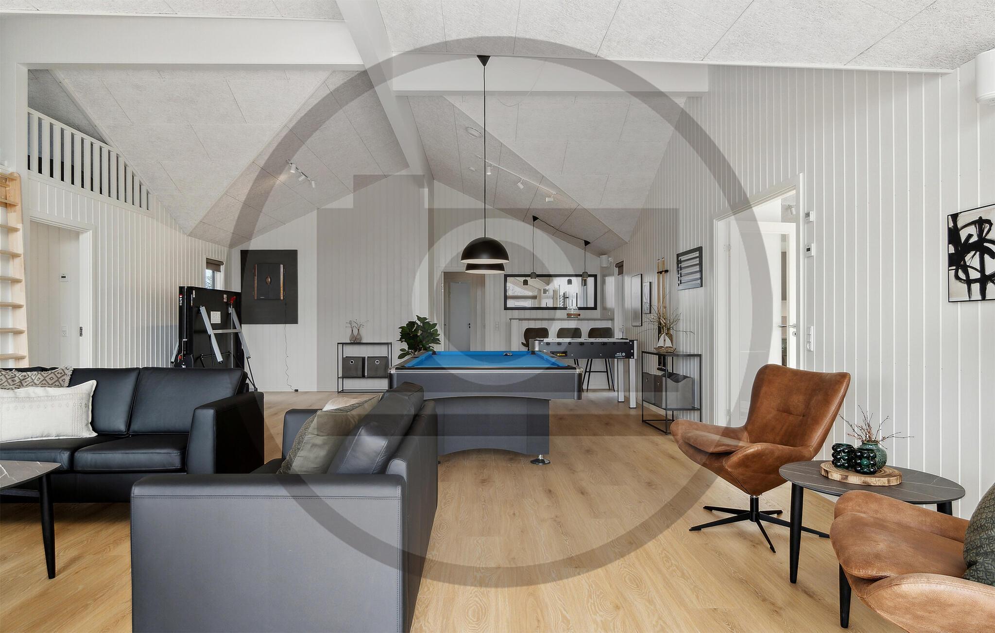 Dette rummelige feriehus er ideelt til større grupper eller familiesammenkomster og byder på en lang række ekstra faciliteter til alle aldersgrupper. Her kan I fylde dagene med hyggelige madlavningsprojekter og give jer god tid til samtaler rundt om spisebordet. Efter en lang dag i den friske havluft kan I fordybe jer i en god bog eller finde brætspillene frem og være fælles om en hyggelig aktivitet i stuen. I kan også spille bordfodbold, bordtennis, dart eller billard. I saunaen kan alle flade godt ud efter en lang gåtur.