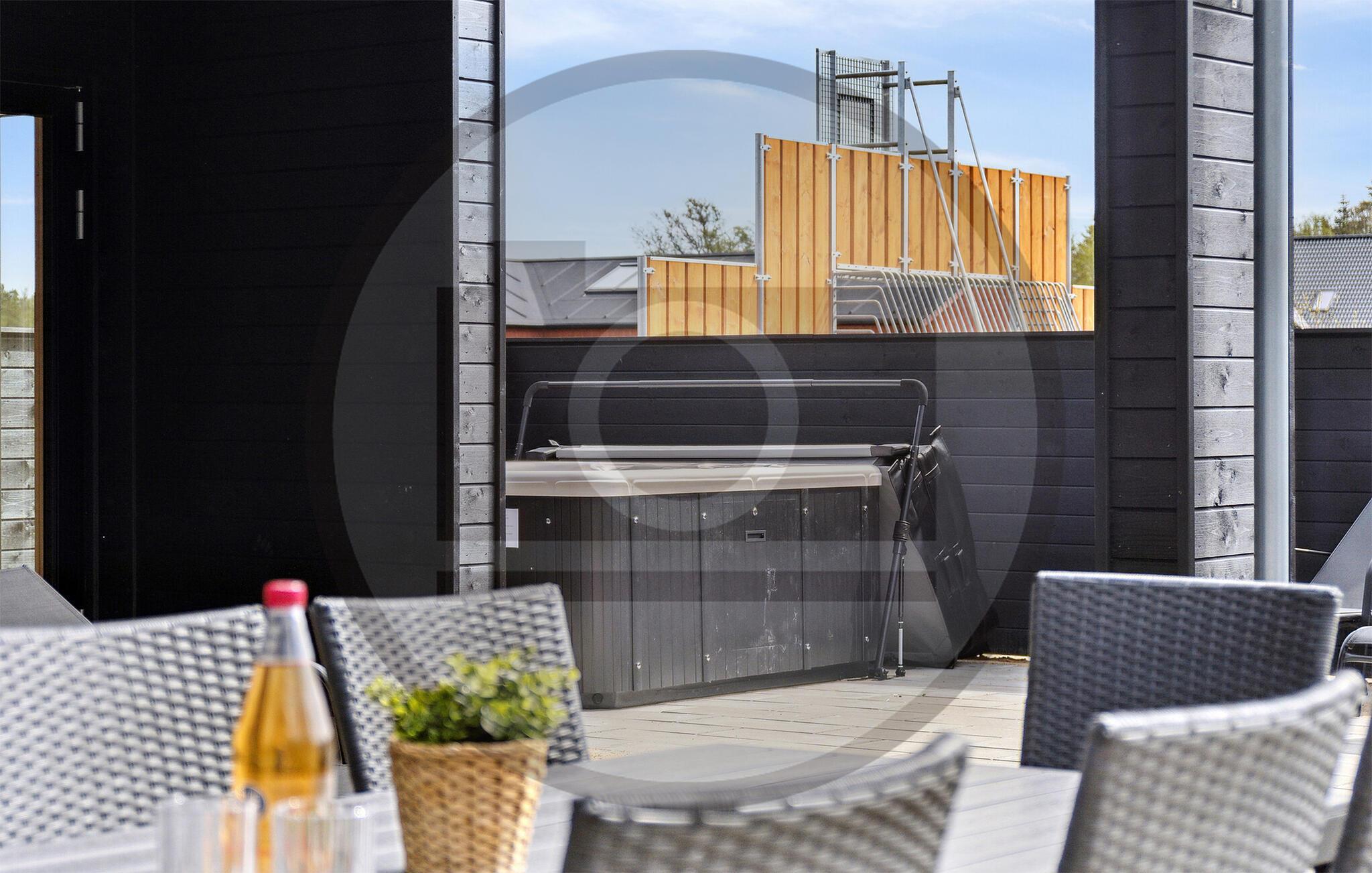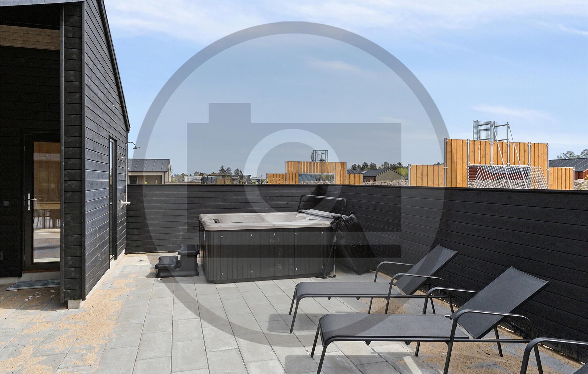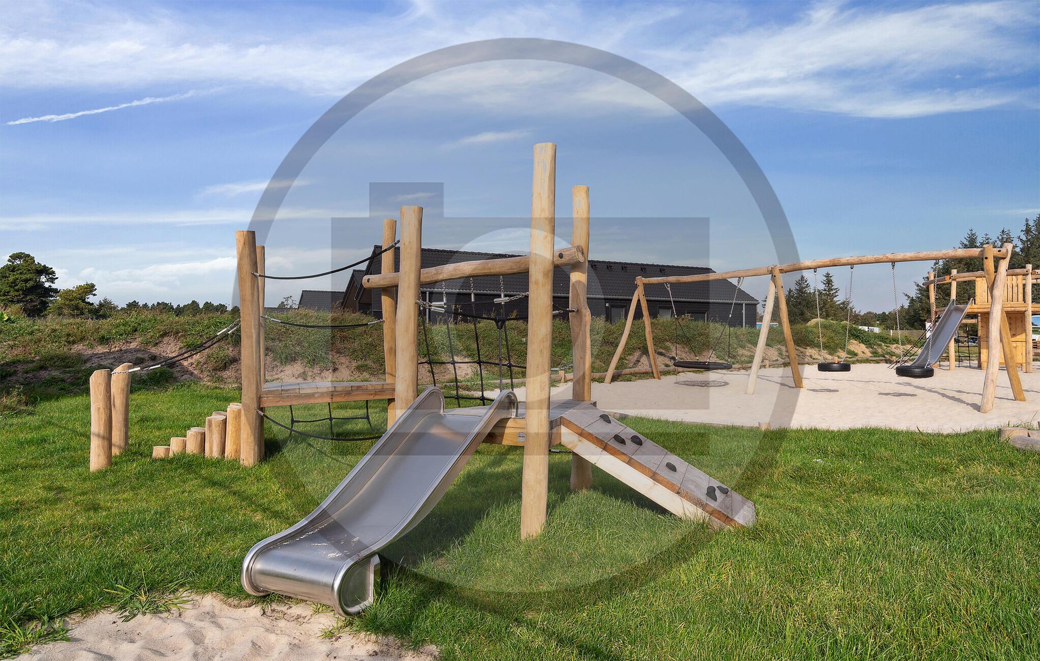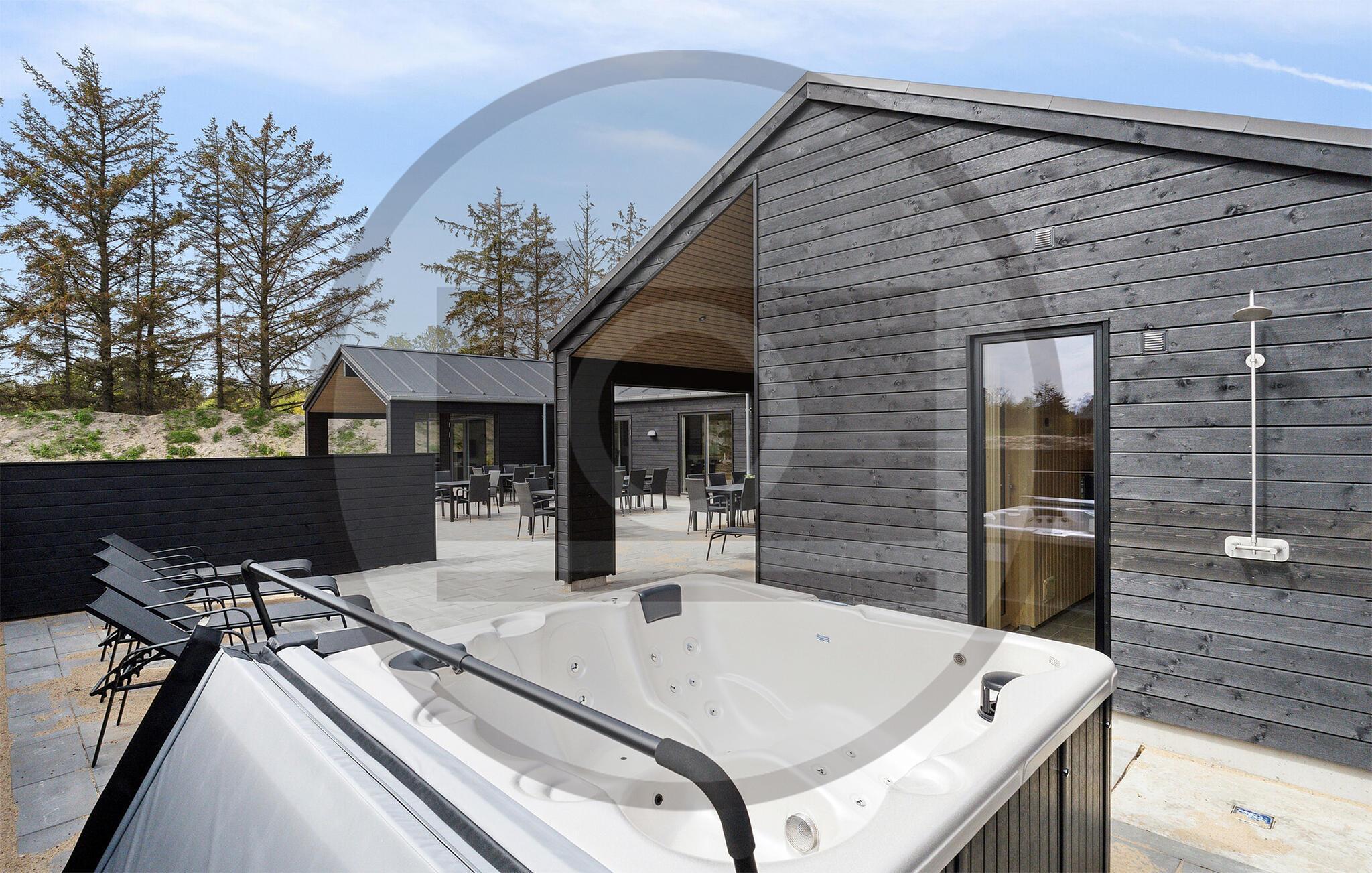 Også udendørsområdet er udstyret med attraktive aktivitetsmuligheder. Slap af i spabadet og tilbered lækre retter på grillen. Snup et spil basketball eller fodbold, mens de mindste har det sjovt på trampolinen og legepladsen.