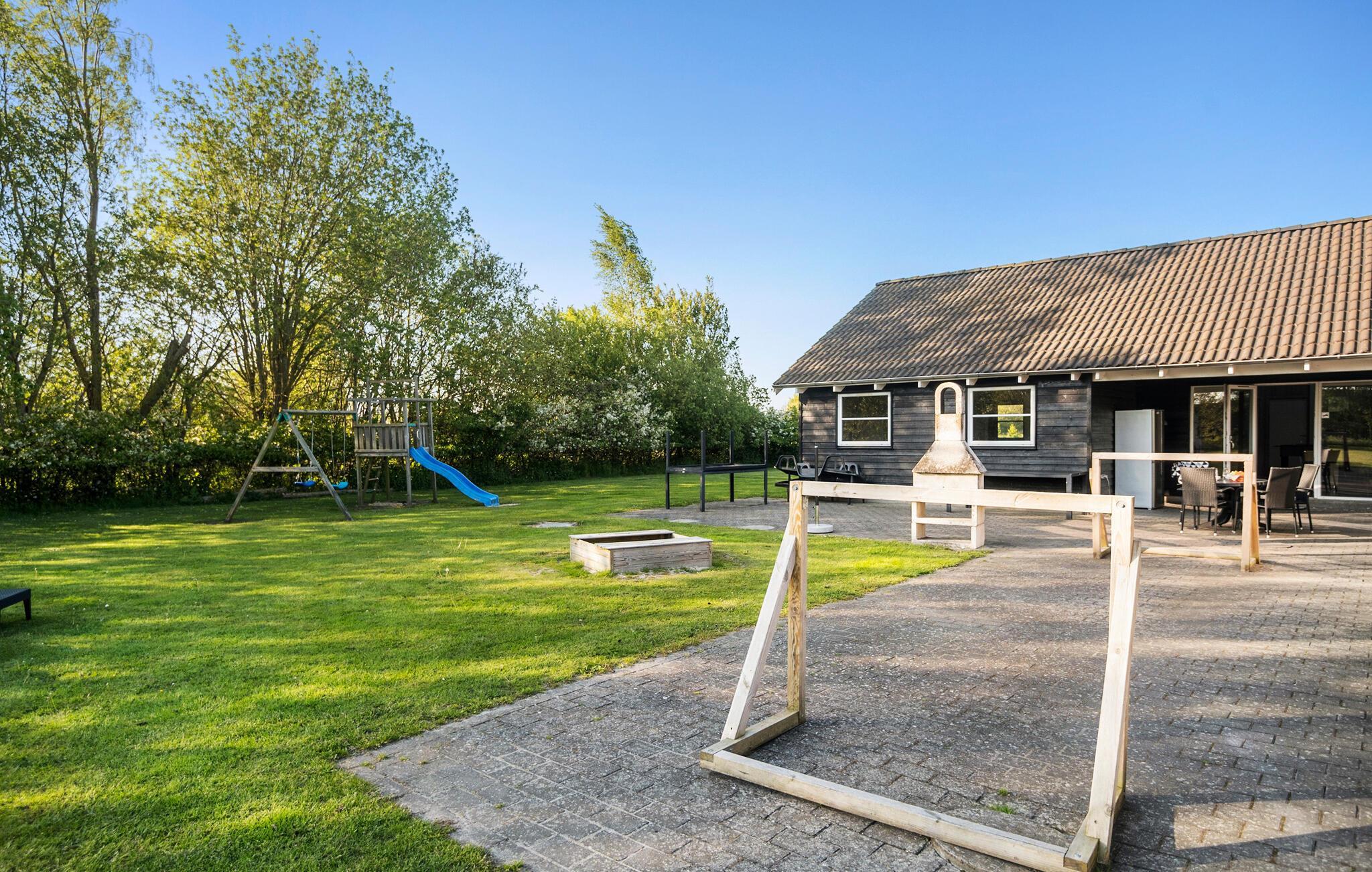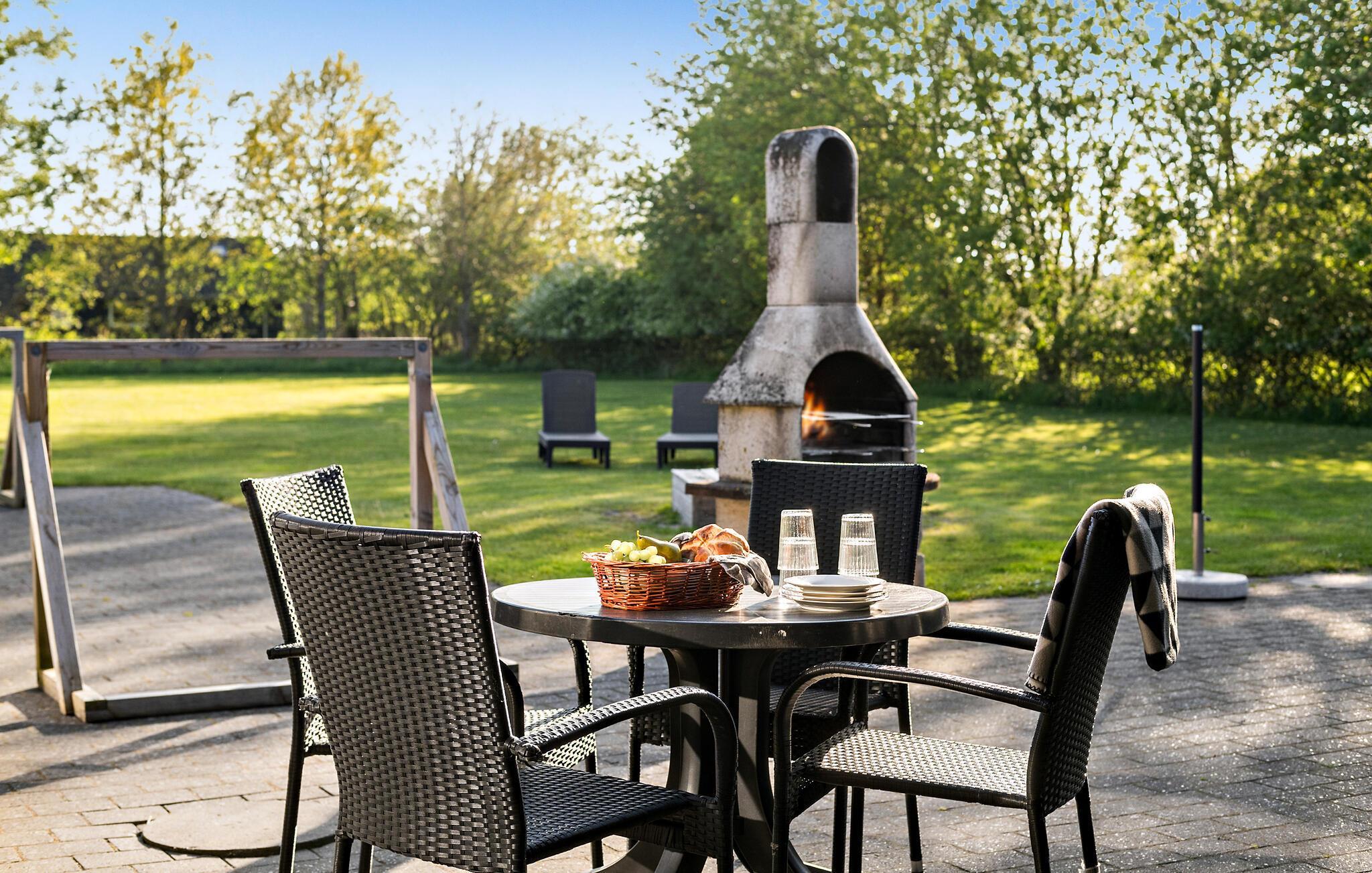 Huset ligger på en stor grund med masser af legeredskaber, som børnene kan boltre sig med, når vejret er godt. De voksne kan tage den lidt mere med ro på terrassen med en kop kaffe eller en kølig drink i solen, inden der fyres op i grillen og tilberedes en lækker aftensmad i det fri under den lune sol.