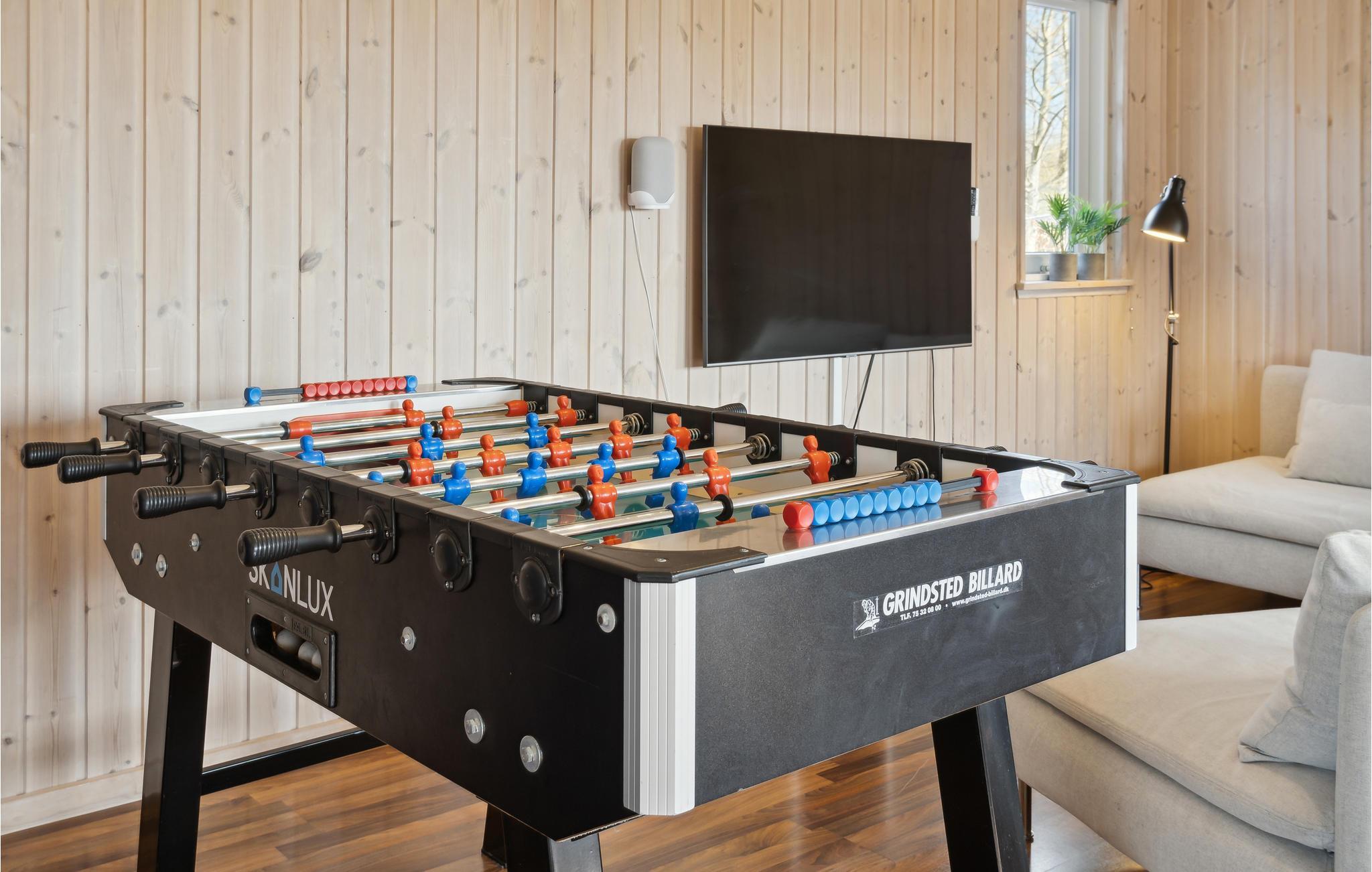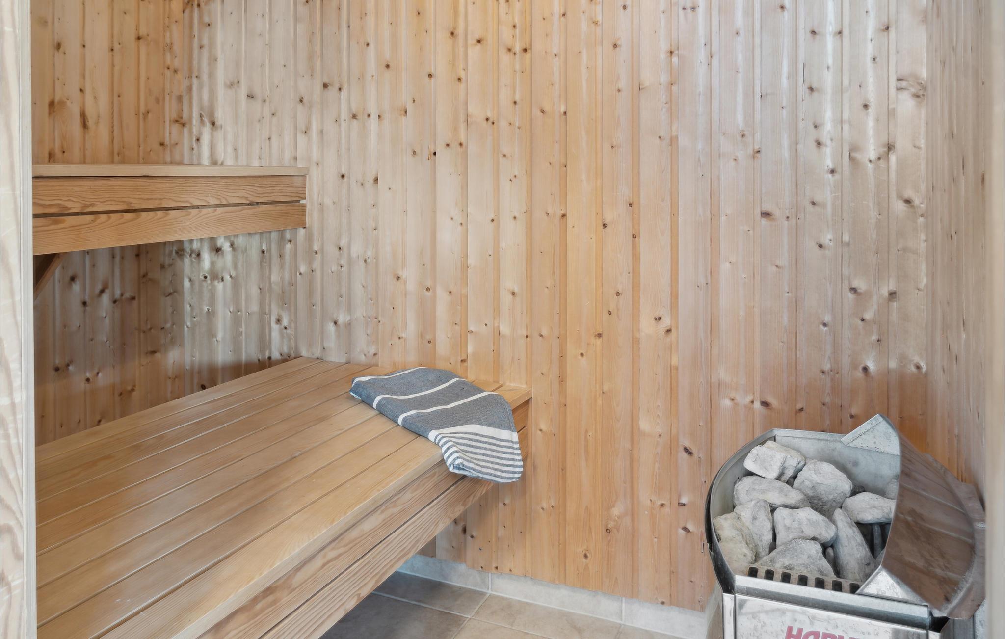 Fantastisk sommerhus i træ med bl.a. swimmingpool og udespa, der ligger på en stor naturgrund med god plads til både at slappe af, lege og spille bold. Til huset hører en stor og til dels overdækket terrasse med komfortable havemøbler. I huset er også en skøn poolafdeling med gulvvarme, swimmingpool vandrutsjebane, spa til seks personer, sauna og badeværelse med bruseniche. I kan også vælge at hoppe en tur i udespaen, der kan benyttes uanset årstid. Det moderne og veludstyrede køkken ligger åbent mod opholds-/spisestuen og her kan fremtrylles skønne retter året rundt. I den smagfuldt møblerede opholdsstue er der brændeovn, stereoanlæg med cd-afspiller, dvd-afspiller og fladskærms-TV tilsluttet fællesantenne. Huset rummer syv soveværelser hver med to enkeltsenge. Desuden fire sovepladser på husets hems. I aktivitetsrummet er der billard- og bordtennisbord, bordfodbold, airhockey og dart, kan man dyste på tværs af generationer. Til de mindste feriegæster findes der to barnesenge og to barnestole samt legetårn, gynge og sandkasse i haven. Flotte, mørke trægulve med gulvvarme i alle rum. Et virkeligt pragtfuldt sommerhus til en aktiv ferie. Marielyst har alt, hvad I kan ønske jer af en ferieby; et utal af aktivitetsmuligheder for hele familien, seværdigheder - både kulturelle og underholdende, et stort udvalg af butikker med dagligvarer, tøj, brugskunst osv., mange gode spisesteder og et livligt natteliv. Derudover er byen omgivet af dejlig strand, skov og et fuglereservat. Bemærk: Ingen udlejning til ungdomsgrupper.