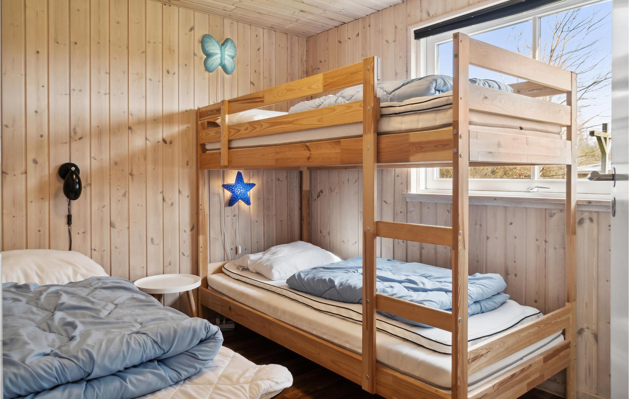 Soveværelse (nr. 1) - 1 Soveplads. (Enkeltseng(e)). 2 Sovepladser. (Etageseng(e)).