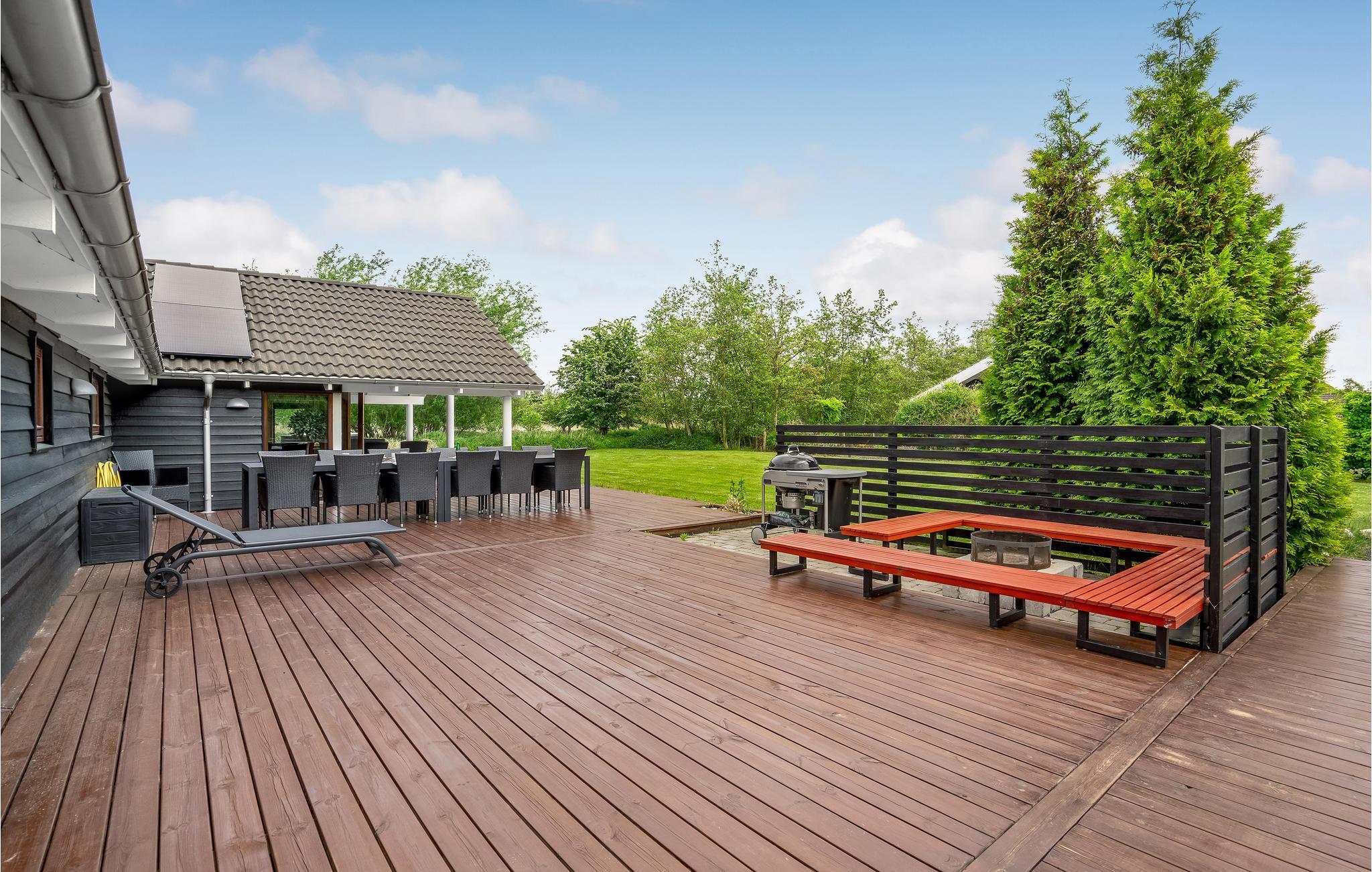 Glæd jer til en ferie på Falster, hvor I kan nyde den helt særlige flade natur og øens skønne byer. Dette indbydende hus består af køkken-alrum, aktivitetsrum og terrasse og rummelige forhold, så her har I god plads til både at samles og sprede jer. Børnene kan boltre sig i haven, mens I læser en god bog på terrassen eller tager et hvil. Hvis I vil gøre noget godt for jer selv efter en lang dag på farten, så er spabadet og saunaen to herlige steder at slappe af. I kan også sætte jer i vildmarksbadet og nyde et glas vin under stjernehimlen.