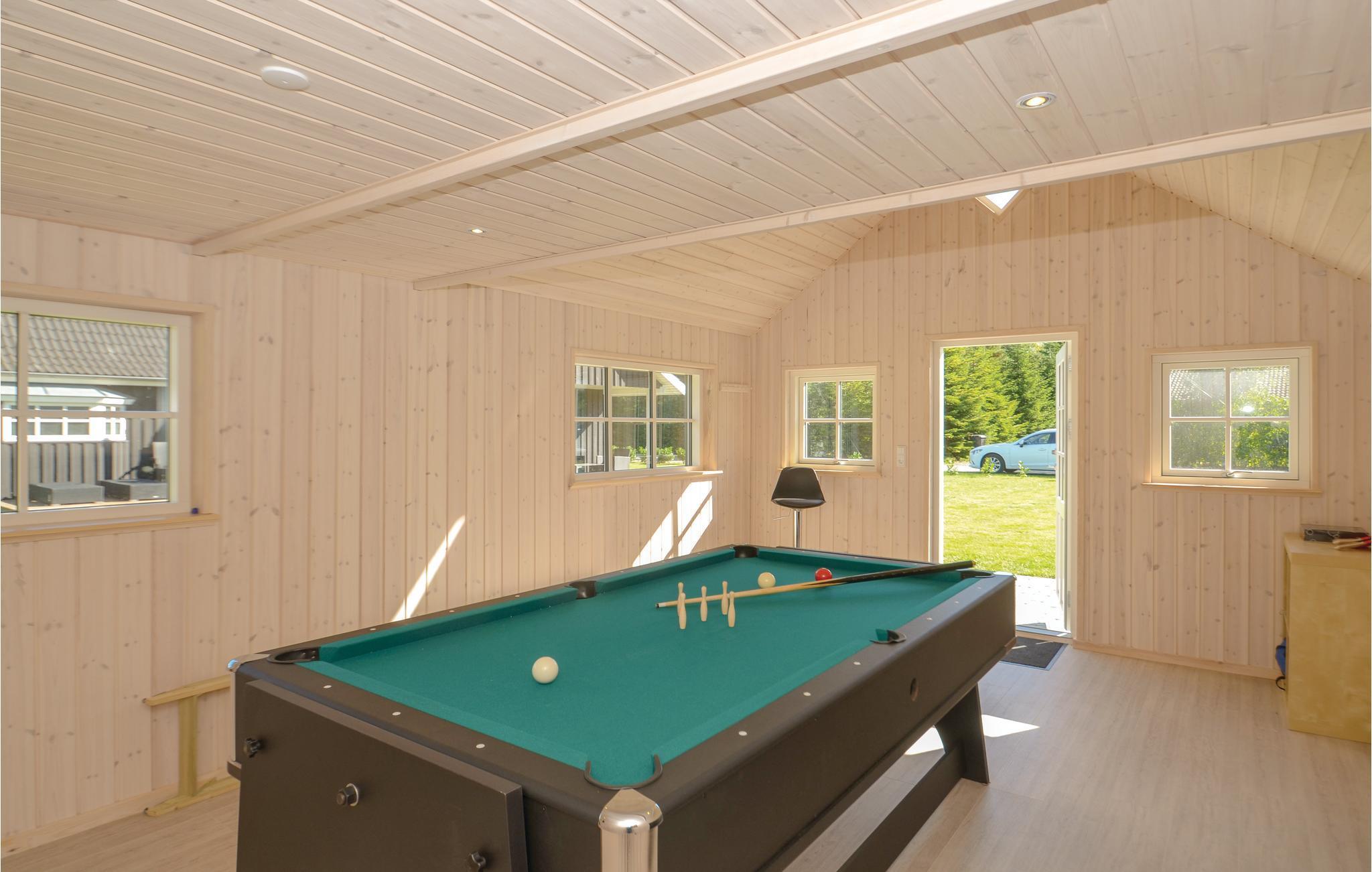 I et skønt feriehusområde i Marielyst ligger dette kvalitetshus med alt, hvad I kan drømme om af plads og udfoldelsesmuligheder. I hele huset er der lagt vægt på kvalitet, varme og atmosfære. Det er arkitektonisk spændende indrettet med bl.a. fritliggende loftbjælker. Køkken og spisestue hænger sammen og spisebordet er anbragt ved et vindue, så I kan sidde og nyde udsigten til haven, mens I spiser. Møblerne er holdt i et klassisk og tidløst design. I den tilhørende anneksbygning findes aktivitetsrummet med bl.a. billard, bordtennis og dart, hvor I kan hygge jer i timevis.