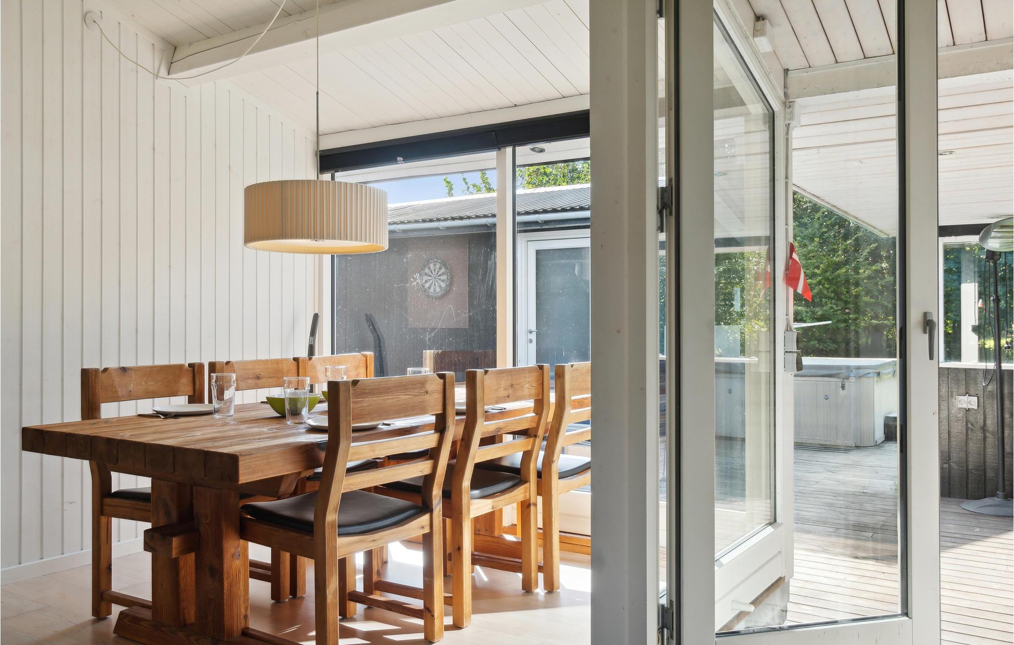 I et hyggeligt sommerhusområde ikke langt fra sandstrand og centrum af Marielyst, finder I dette sommerhus. Her skal den store overdækkede og åbne terrasse fremhæves, hvor udelivet rigtig kan nydes. Det udendørs spabad indbyder til behageligt ophold, uanset årstid. Huset er indrettet med en stor stue i kombination med køkkenet. Der er ligeledes et badeværelse samt et soveværelse med en dobbeltseng. Vaskemaskine og tørretumbler befinder et i skur. I forbindelse med terrassen, ligger det store anneks med yderligere to soveværelser, hvor børnene vil nyde at kunne være i fred for de voksne. På terrassen er der også solvogne samt en stor grill.