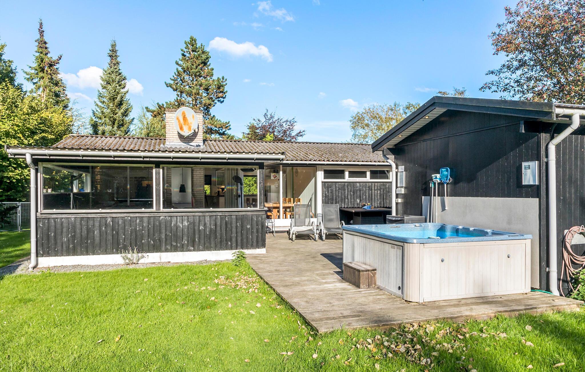 Hyggeligt sommerhus i Marielyst med stor terrasse, udendørs spabad og anneks tæt på stranden.