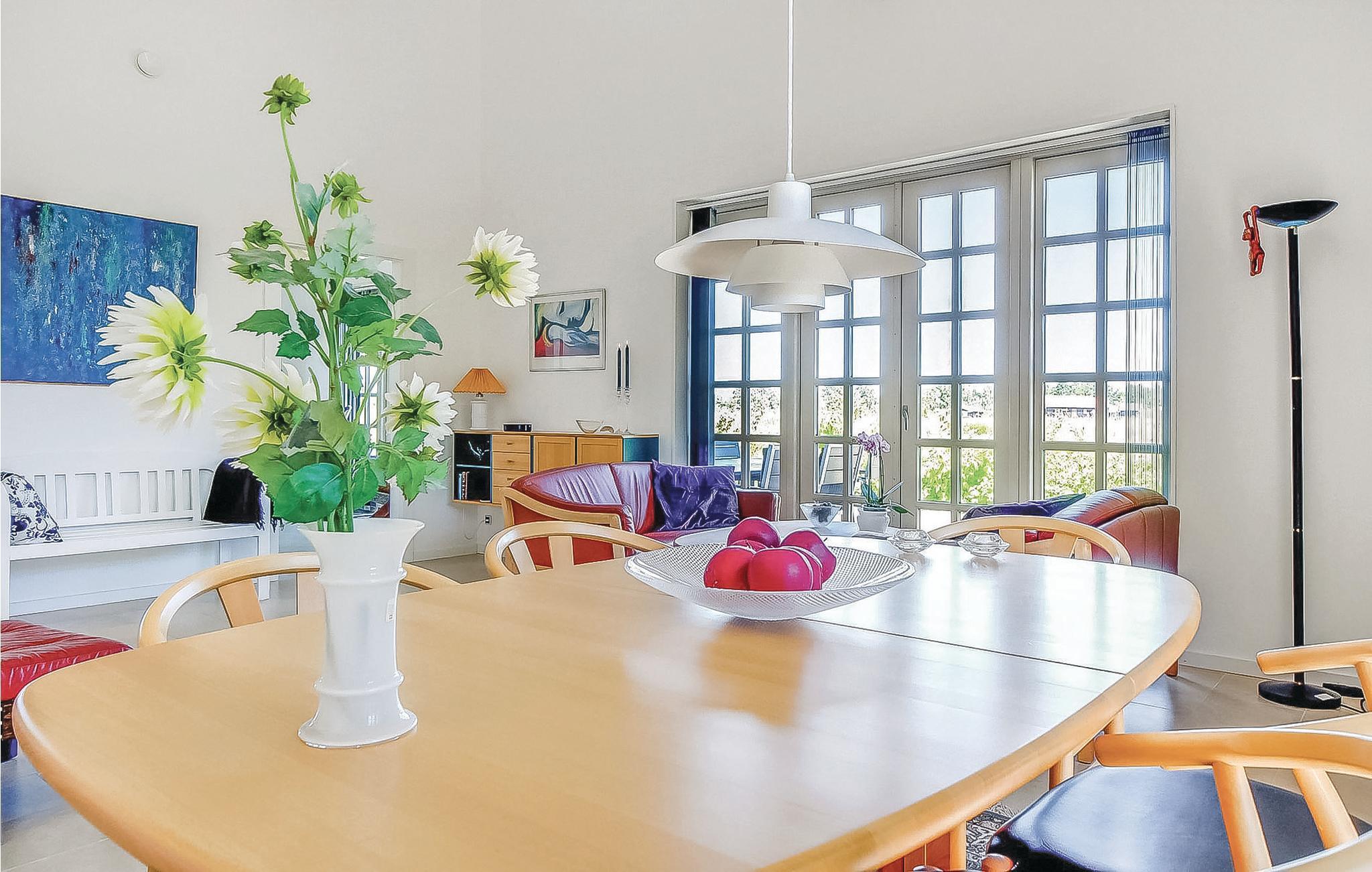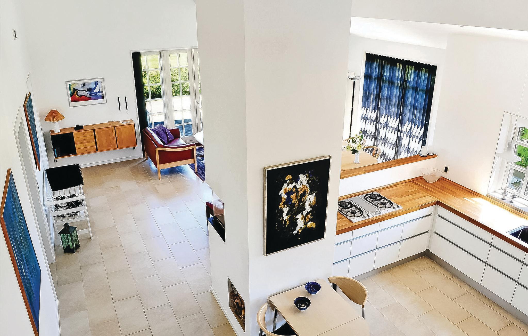 Pragtfuldt feriehus - arkitekttegnet og med flot udsigt over sø og naturskønt område. Alt er i bedste kvalitet og der er kræset for detaljerne. En flot muret pejs med brændeovn indsats placeret imellem stue og køkken spreder hygge i huset. Køkkenet ligger i åben forbindelse med den dejlige opholdsstue, hvor I kan nyde den smukke udsigt og hvorfra der er udgang til terrassen. Stort soveværelse med walk in closet. To gode soveværelser, hvoraf det ene har egen udgang til terrassen. Indbydende stort badeværelse med ægte jacuzzi og bruseniche. Stor hems med to indbyggede brikse, samt god plads til tenneager hygge. Der er gulvvarme i hele huset. Huset ligger på en flot og velanlagt grund med masser af plads på terrassen. Nyd den skønne udsigt over søen fra terrassen. I gåafstand af butikker, skønne spisesteder, den populære badestrand, golf og meget andet.